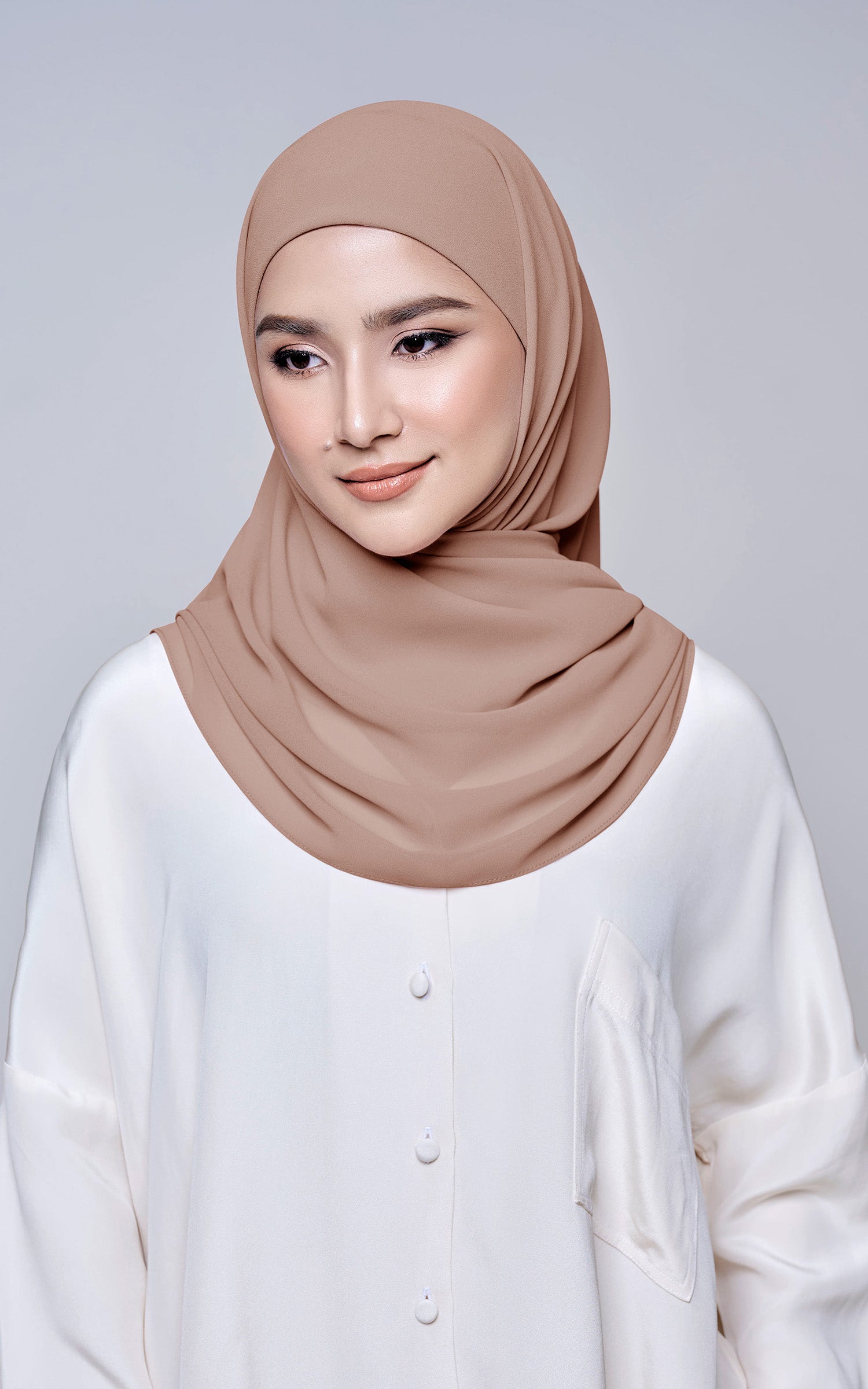 Althea is thoughtfully designed for hijab wearers who adore the structure of a square scarf but seek the speed of an instant. Crafted from Original Korean Chiffon, the scarf delivers a lightweight, breathable, and flowy feel that's perfect for all-day wear. The attached Cotton Viscose inner ensures a secure, comfortable fit. Whether you're heading out for daily errands, office meetings, or special occasions, Althea offers an effortlessly refined look with minimal effort. The material is easy to shape, making it suitable for all face shapes and styling preferences.