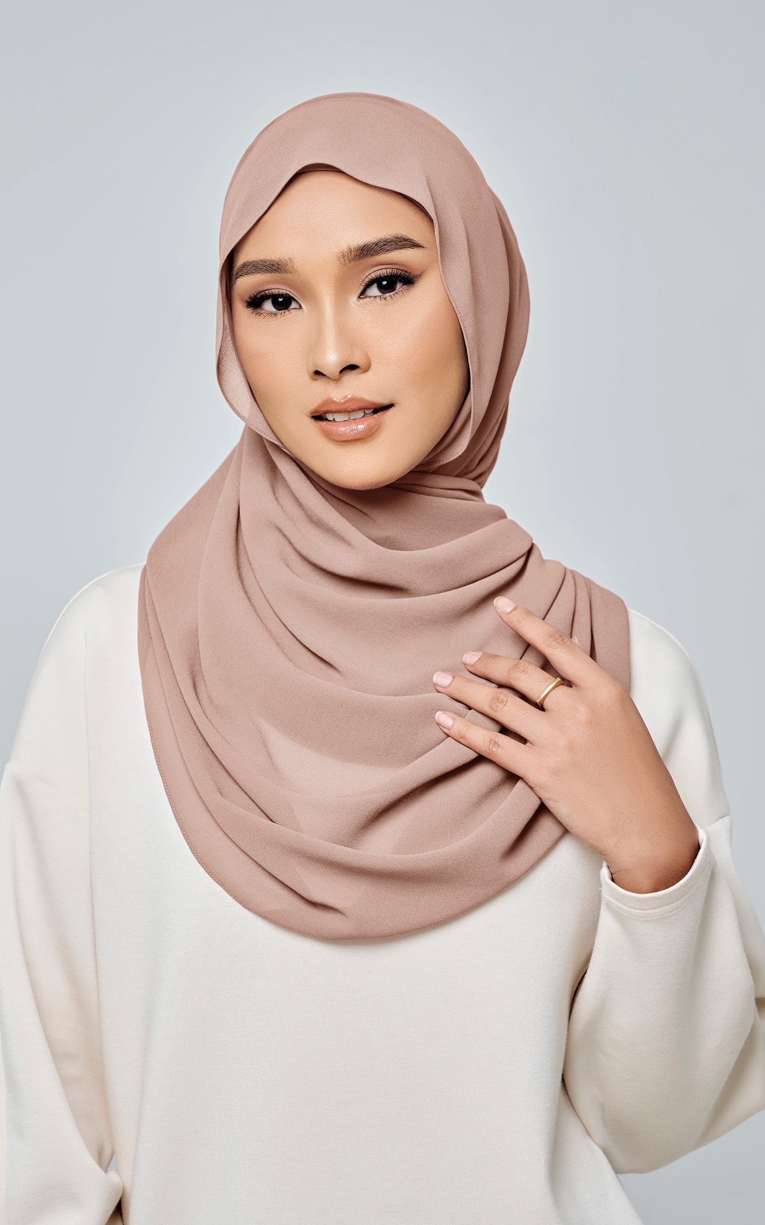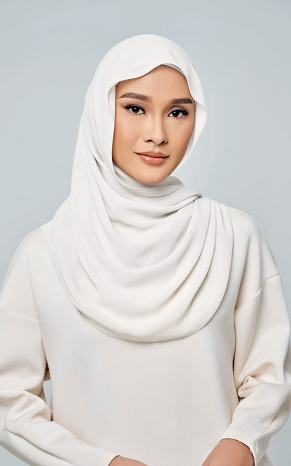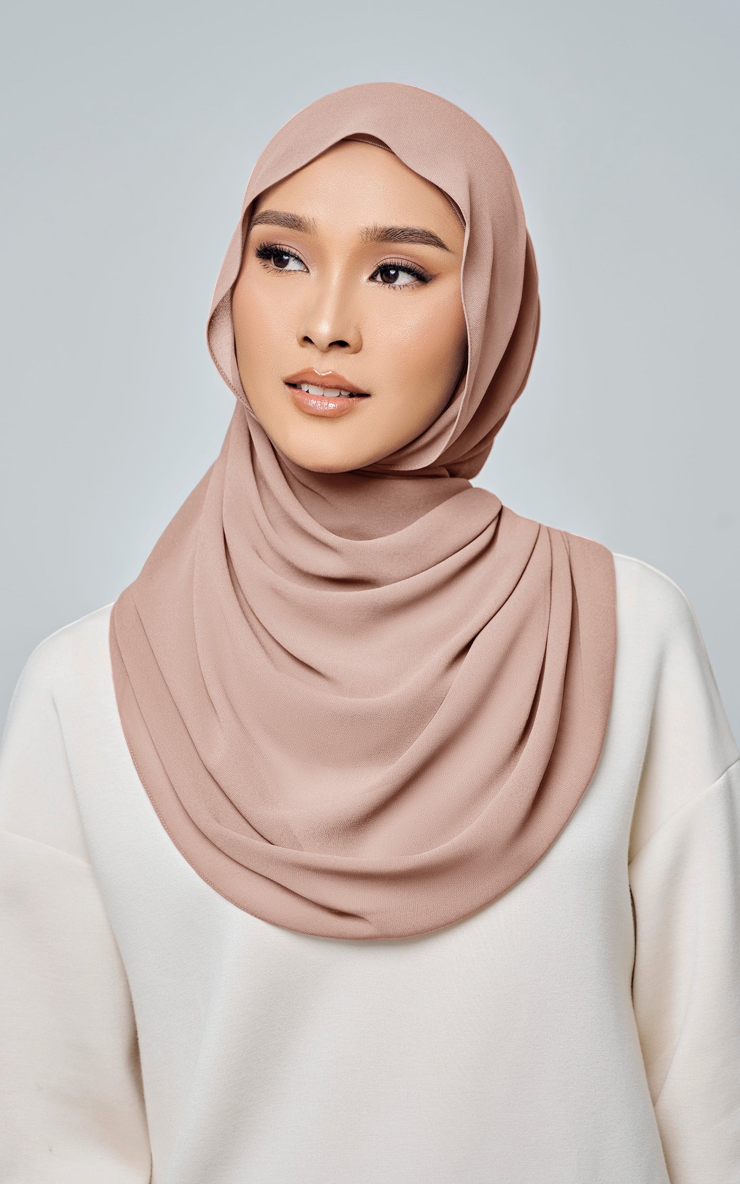 Crafted from High Quality Pearl Chiffon, Dafne maintains its signature lightweight, flowy drape that moves beautifully with you. The attached inner, made from soft and breathable Cotton Viscose, now comes with a wider and more supportive tie-back band. This new design reduces pressure around the ears, giving you a gentler, more comfortable fit even after long hours of wear. The improved inner also caters perfectly to all face shapes and sizes, offering a smooth and refined silhouette.