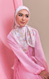 Made from the luxurious Luxe Matte Satin, Blooming Essence captures the heart of this partnership in the most intricate way. The design is filled with Lush’s signature touches like signature bath bombs, fresh fruits, and fragrant flowers celebrating the natural beauty that inspires their creations. Hidden among the motifs is a watermelon, carrying a dual significance: a nod to Lush’s fresh ingredients and a powerful symbol of solidarity with Palestine, a cause close to both Lush and Alhumaira. The soft pink ribbon woven throughout represents courage, resilience, and the fight against breast cancer in conjunction with Pinktober. Look closely and you will also find a little cabinet, reminiscent of Lush’s iconic stores, an apothecary-style presentation that reflects the artisanal craft and ethical values at the heart of Lush. Every element has meaning, making Blooming Essence not just a scarf, but a story beautifully worn.