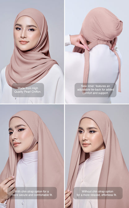 The newly improved inner is crafted from stretchable Cotton Viscose and features a tie-back design that allows you to adjust the fit according to your comfort. This enhanced inner provides a more secure, supportive feel making Althea as easy to wear as other Alhumaira instant hijabs, while maintaining the elegance of a square silhouette.
