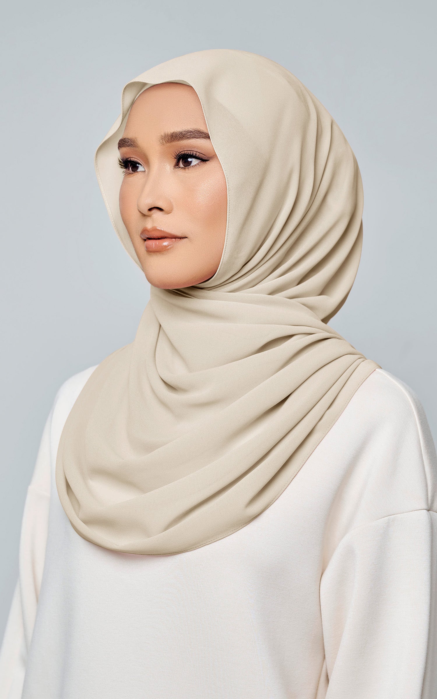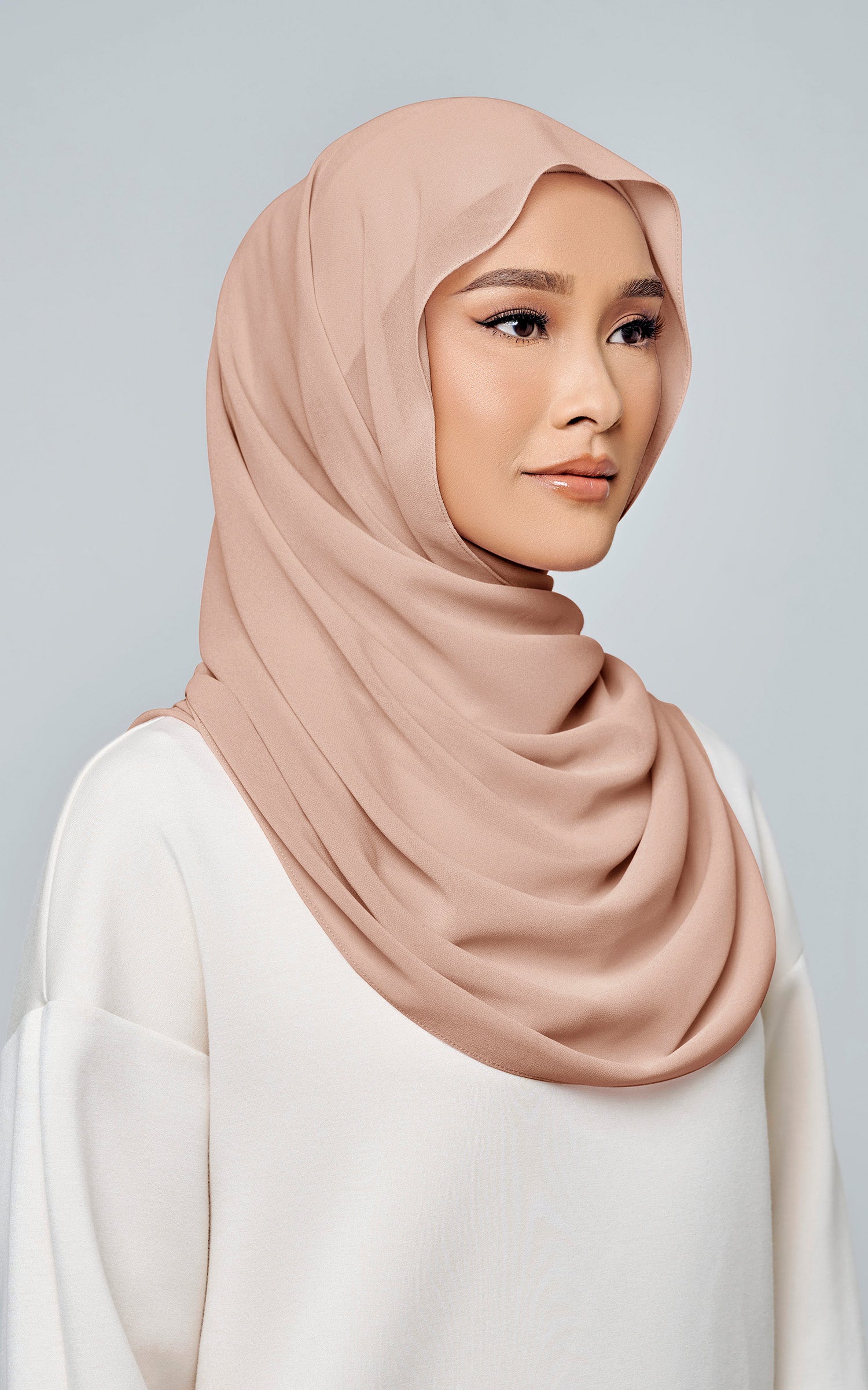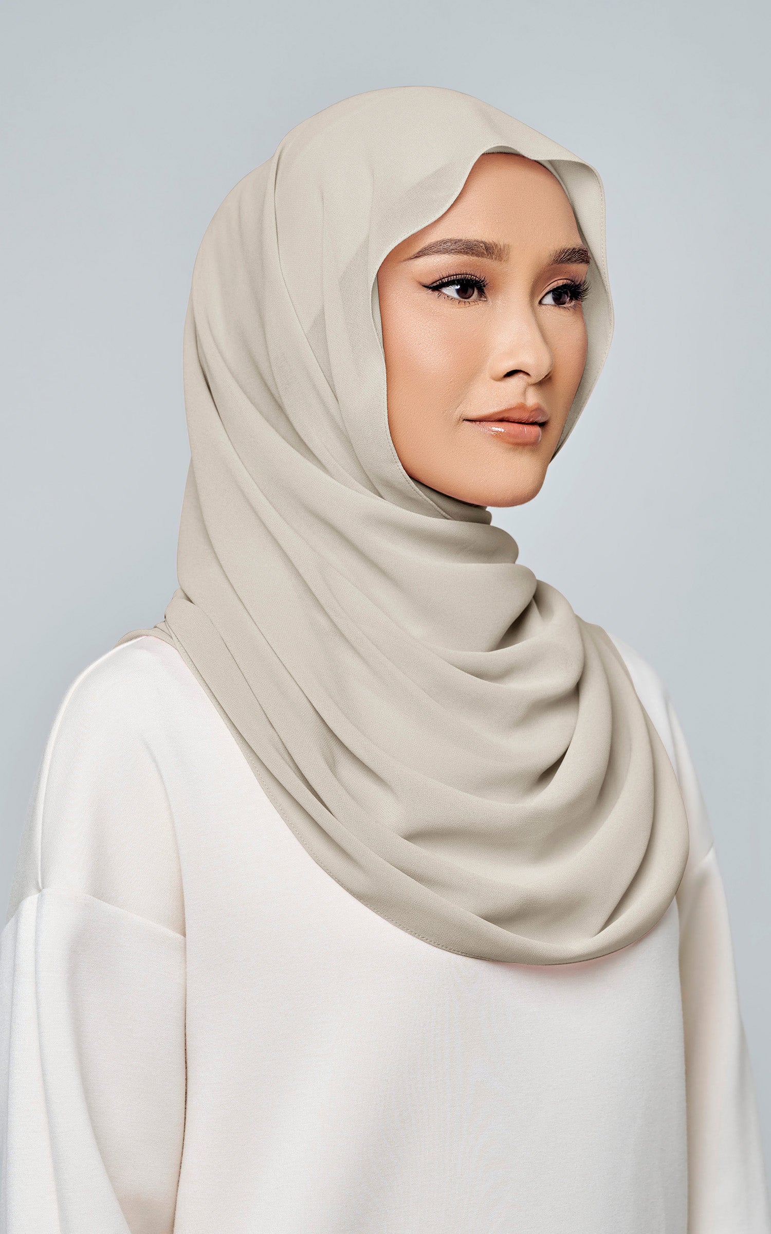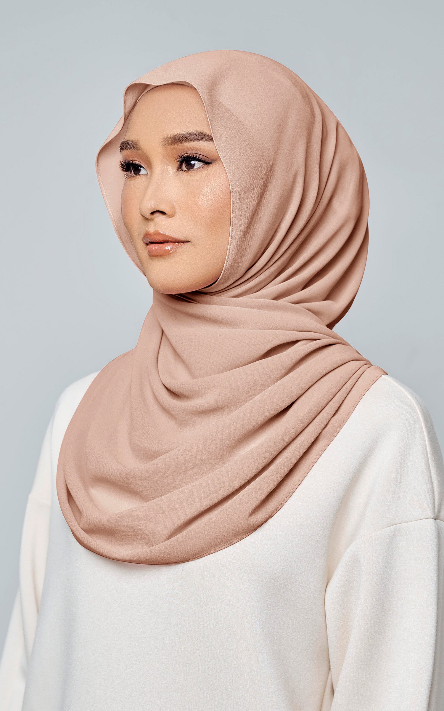 The Dafne instant shawl combines convenience and style in one essential hijab. Crafted from high quality pearl chiffon, Dafne offers a lightweight, breathable feel that’s perfect for all-day wear. Its Cotton Viscose inner is not only gentle on the skin but also spacious, with a secure band to keep everything in place. With an adaptable awning that can be worn loosely or styled neatly, Dafne is incredibly easy to wear and complements both casual and professional outfits effortlessly.