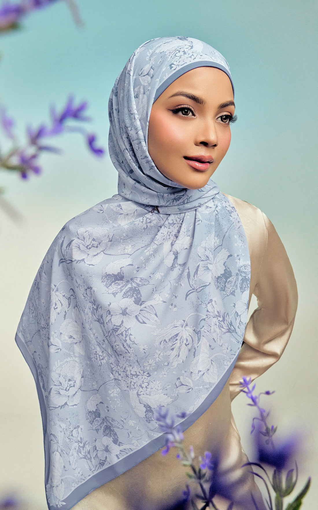 Darlene Everbloom is an instant shawl hijab made from High Quality Pearl Chiffon with a matching Cotton Viscose inner for effortless, comfortable wear. Inspired by English garden flowers, the design features delicate, small-scale floral motifs that remain beautifully visible when draped. Finished with a snugfit awning and a palette of soft, pastel hues, Darlene