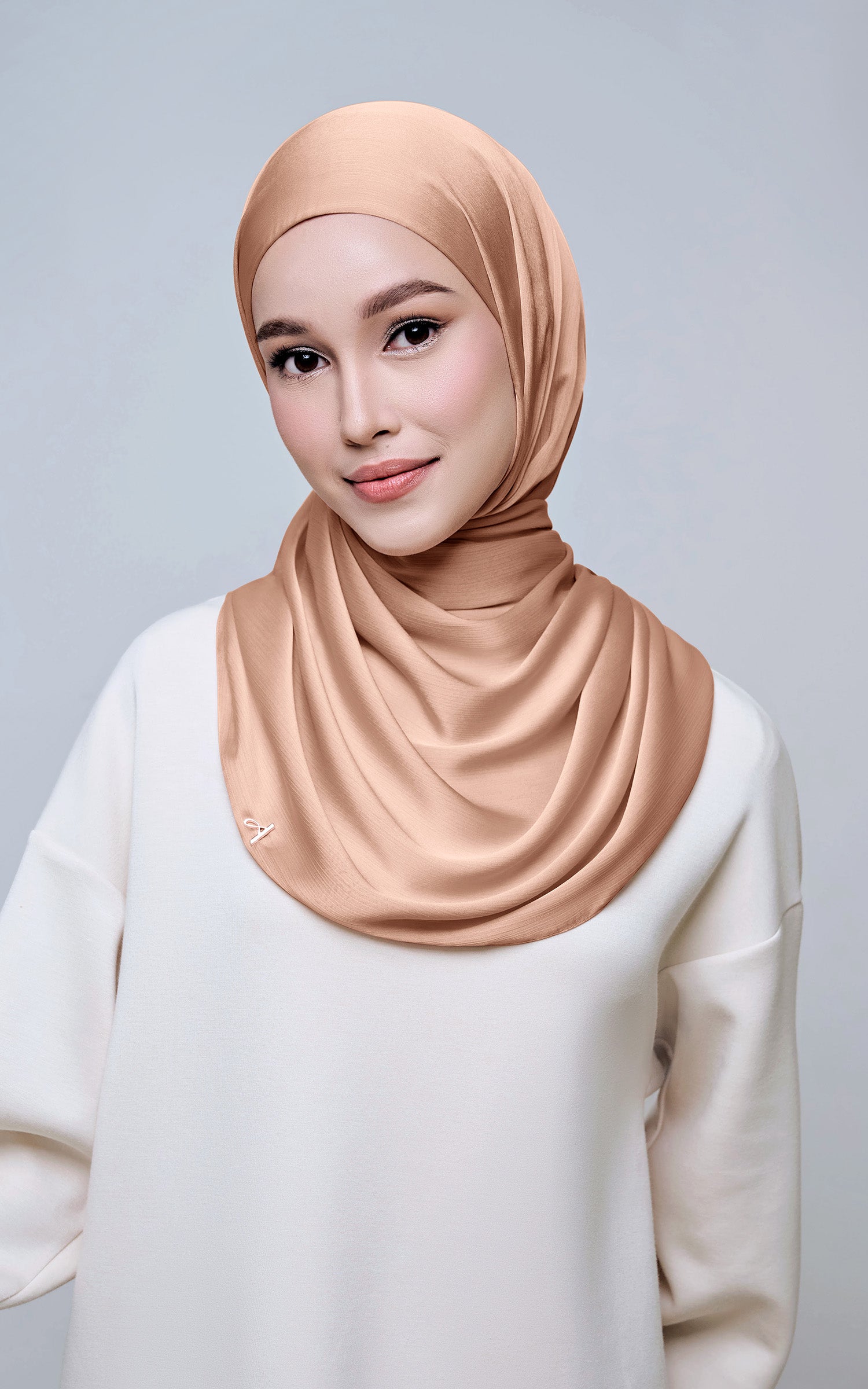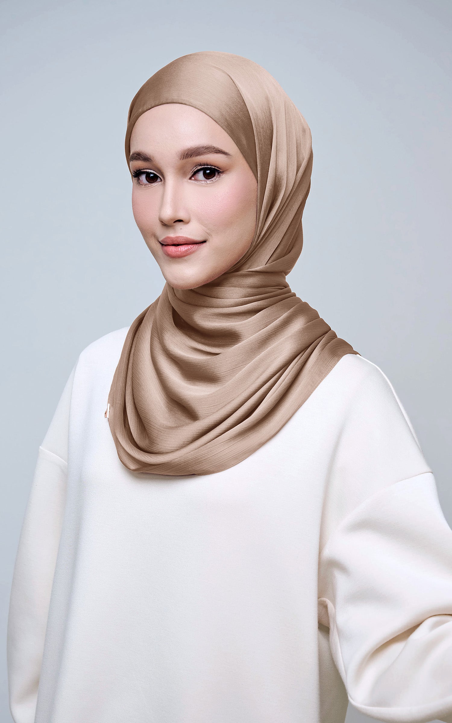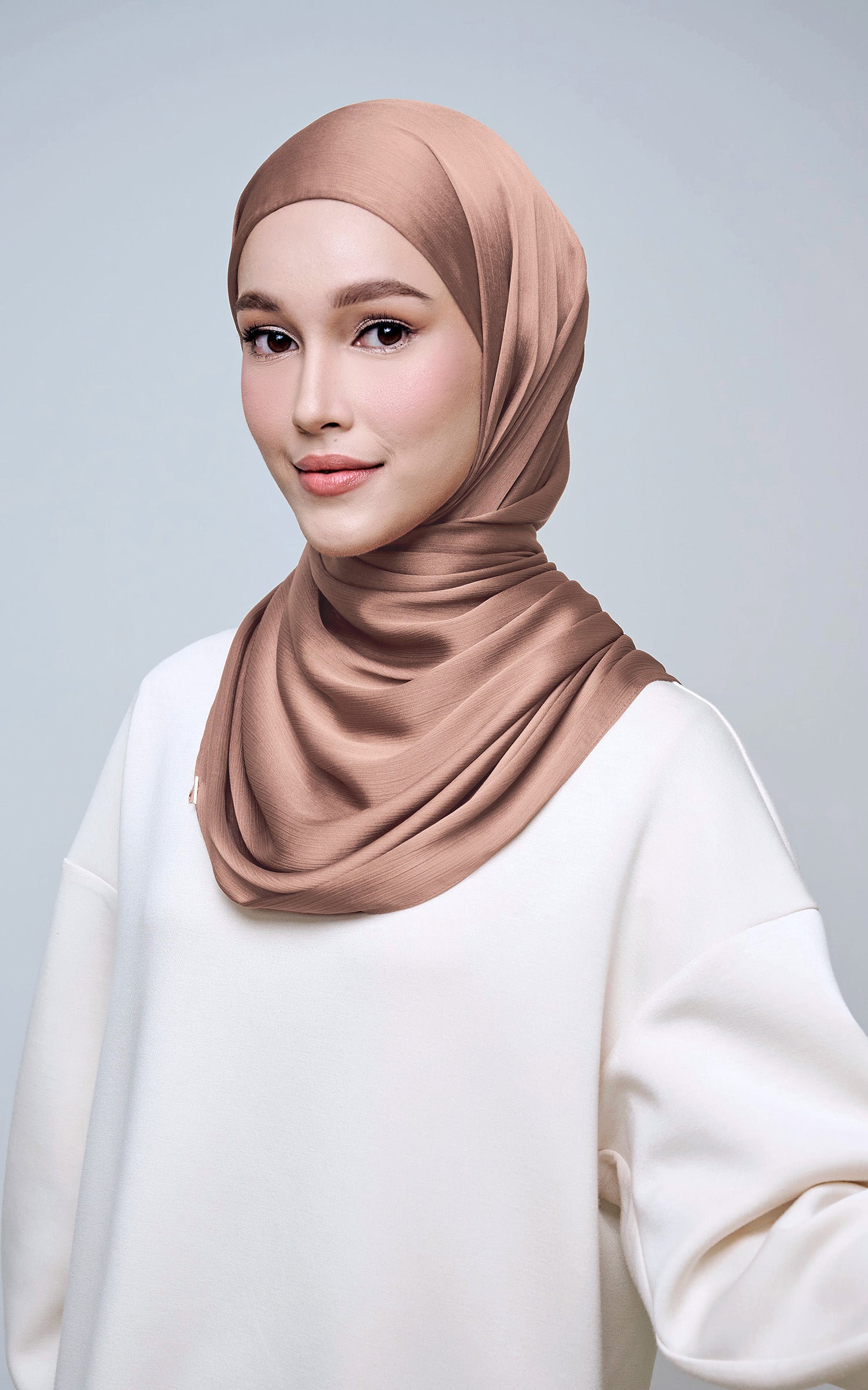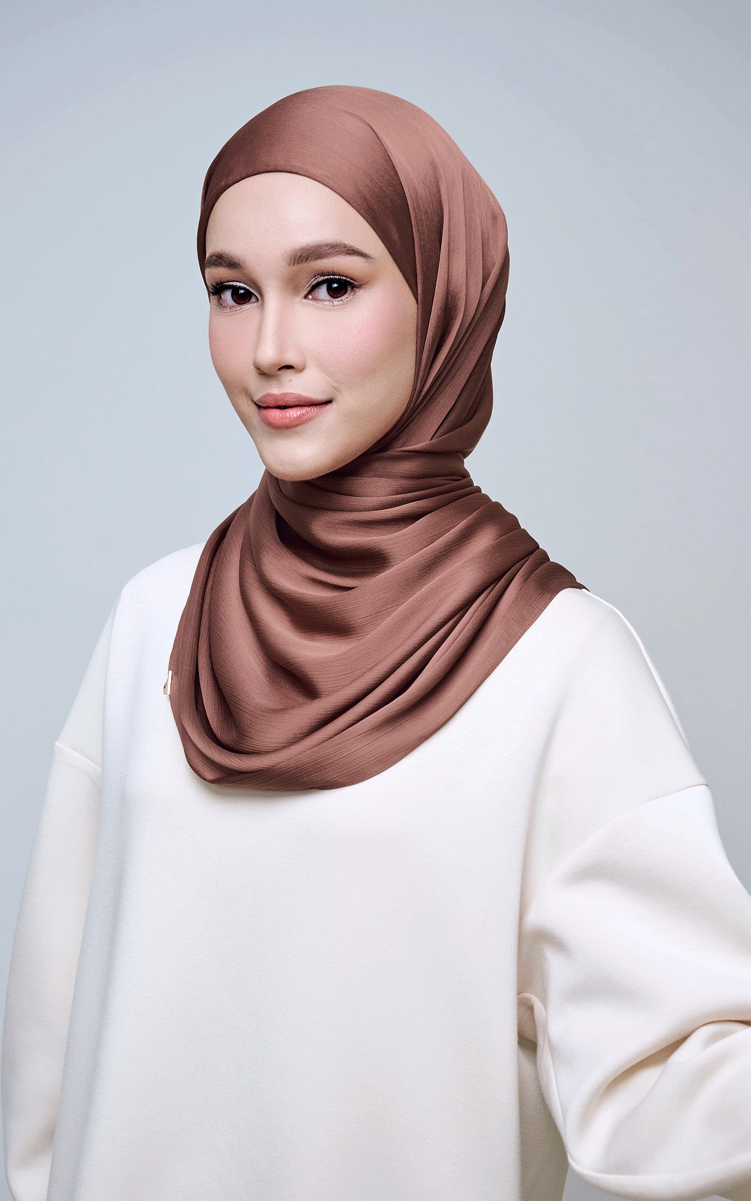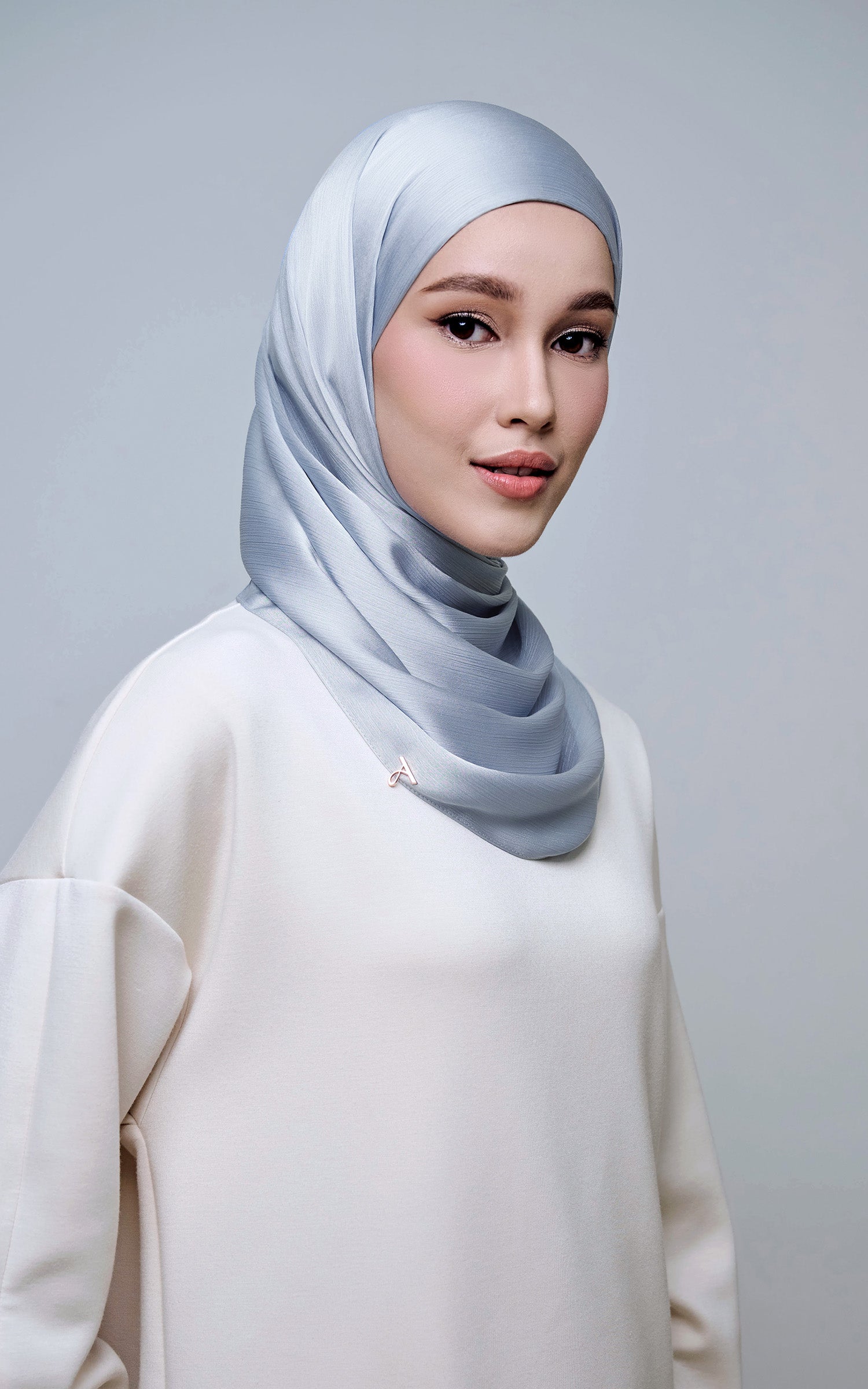 Maysa is crafted from Premium Satin Yoryu, a flowy textured satin that features a soft shimmer to enhance your look. It comes with a built-in tie-back inner in the same colour as the shawl, eliminating the need for colour matching or extra layers. While it’s not as lightweight as our Darla collection, its slightly heavier weight gives it a beautiful drape that stays in place and adds a graceful flow to your styling. With its generous length, Maysa allows you to create a variety of shawl looks effortlessly. Its material becomes fully opaque when folded, making it both practical and sophisticated.