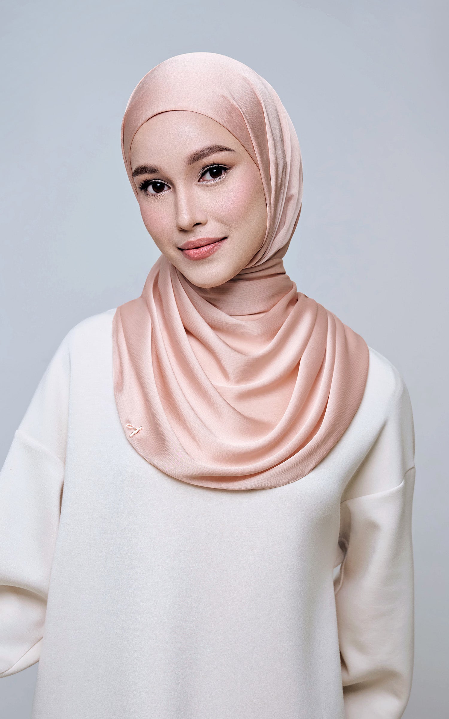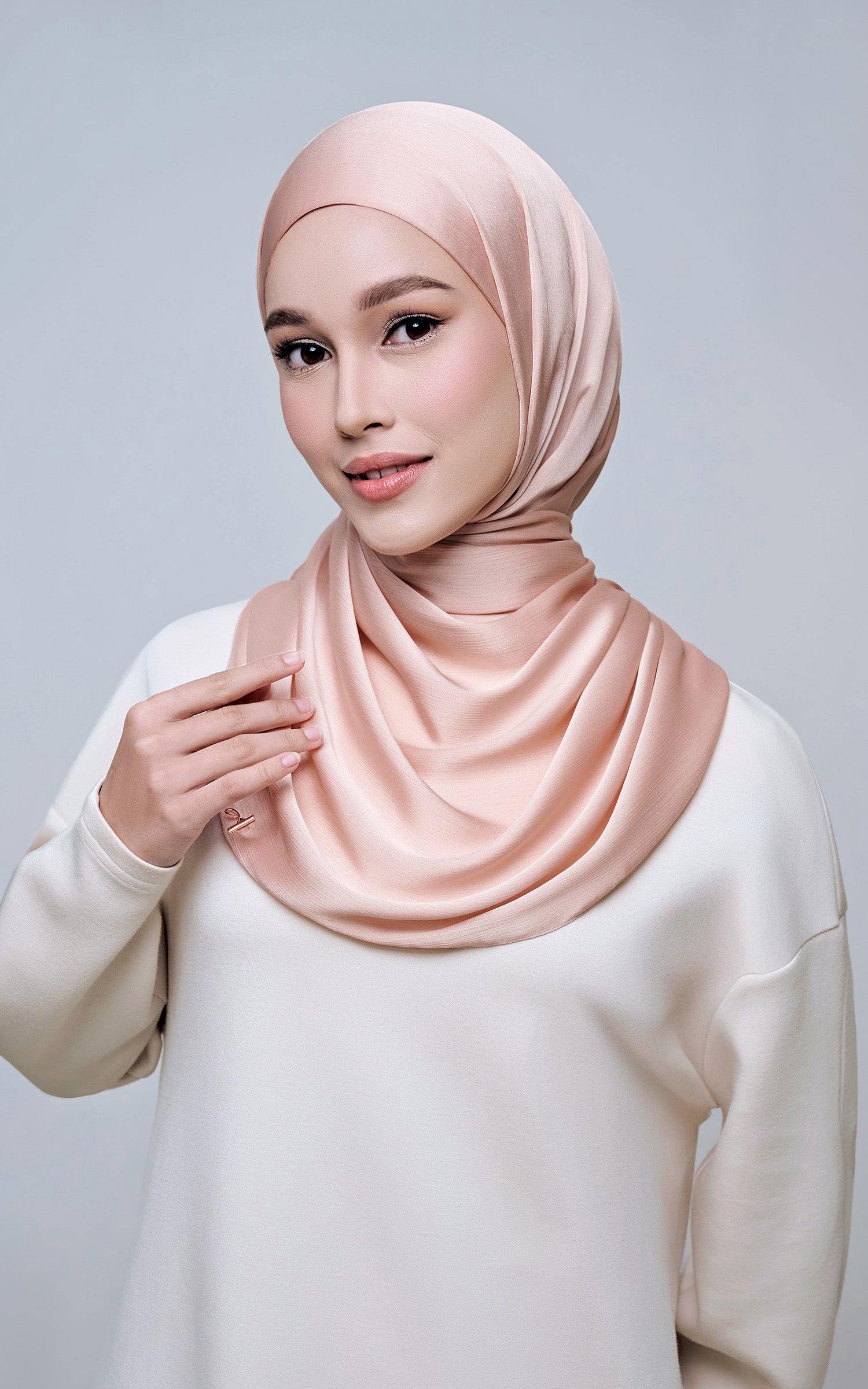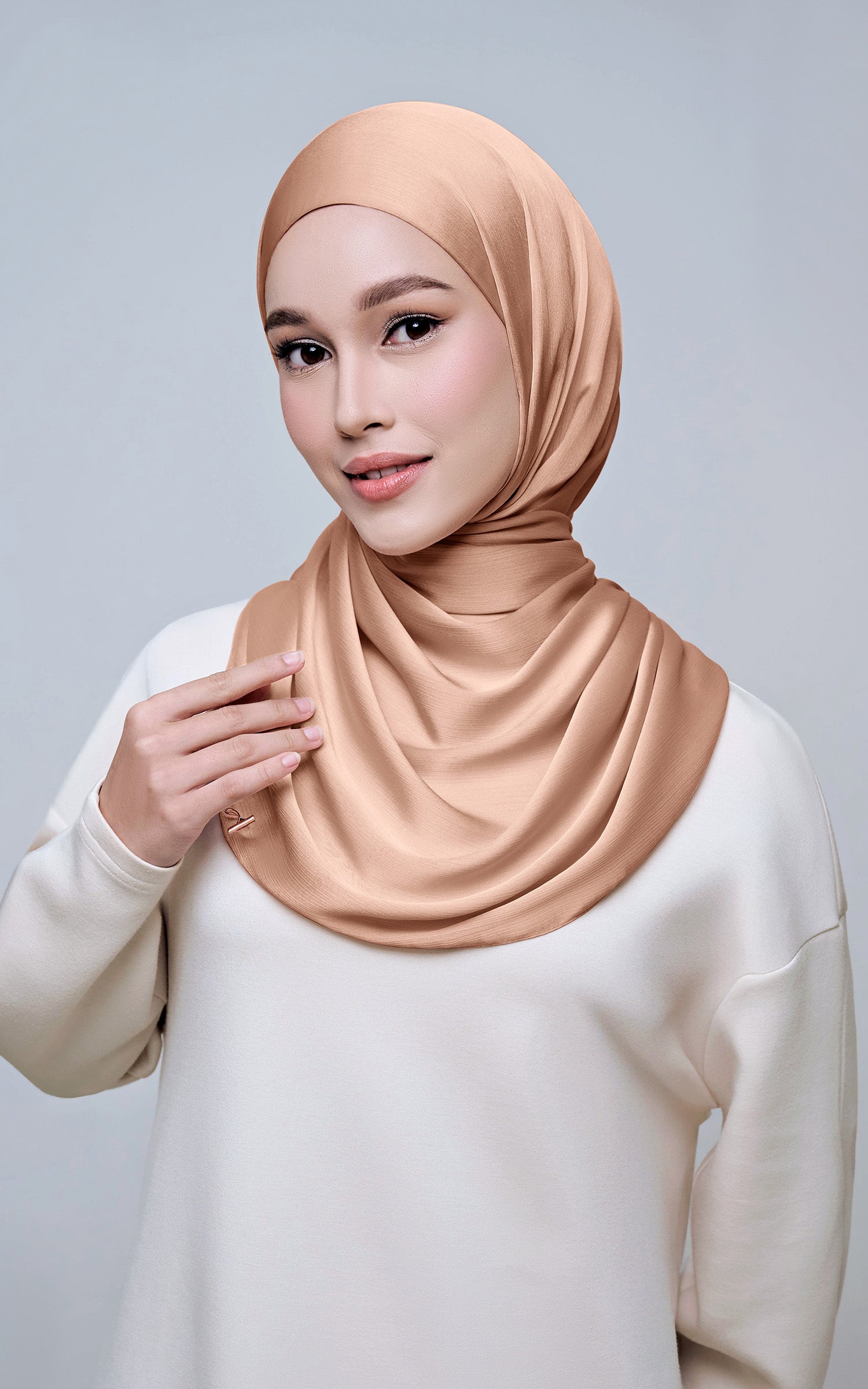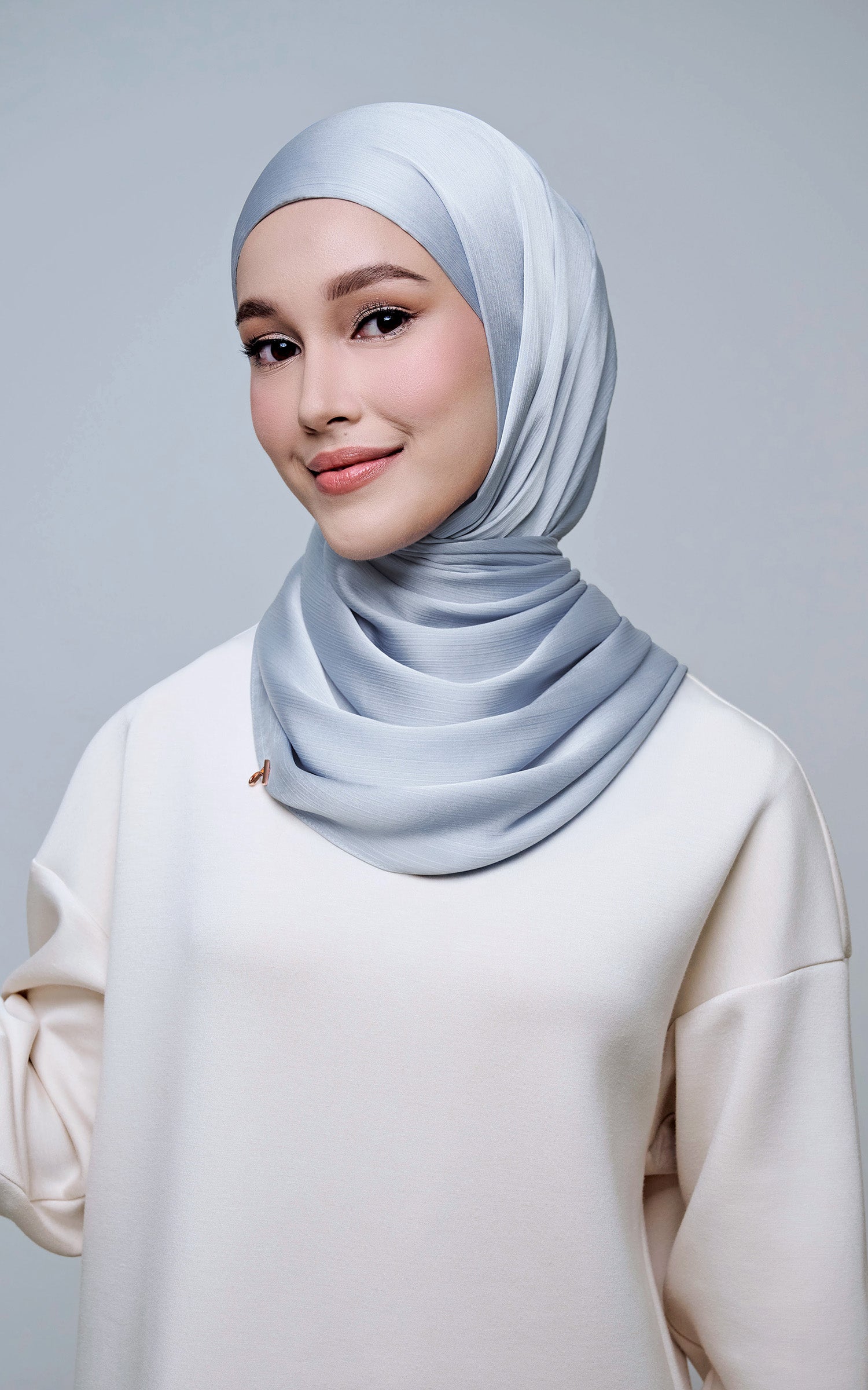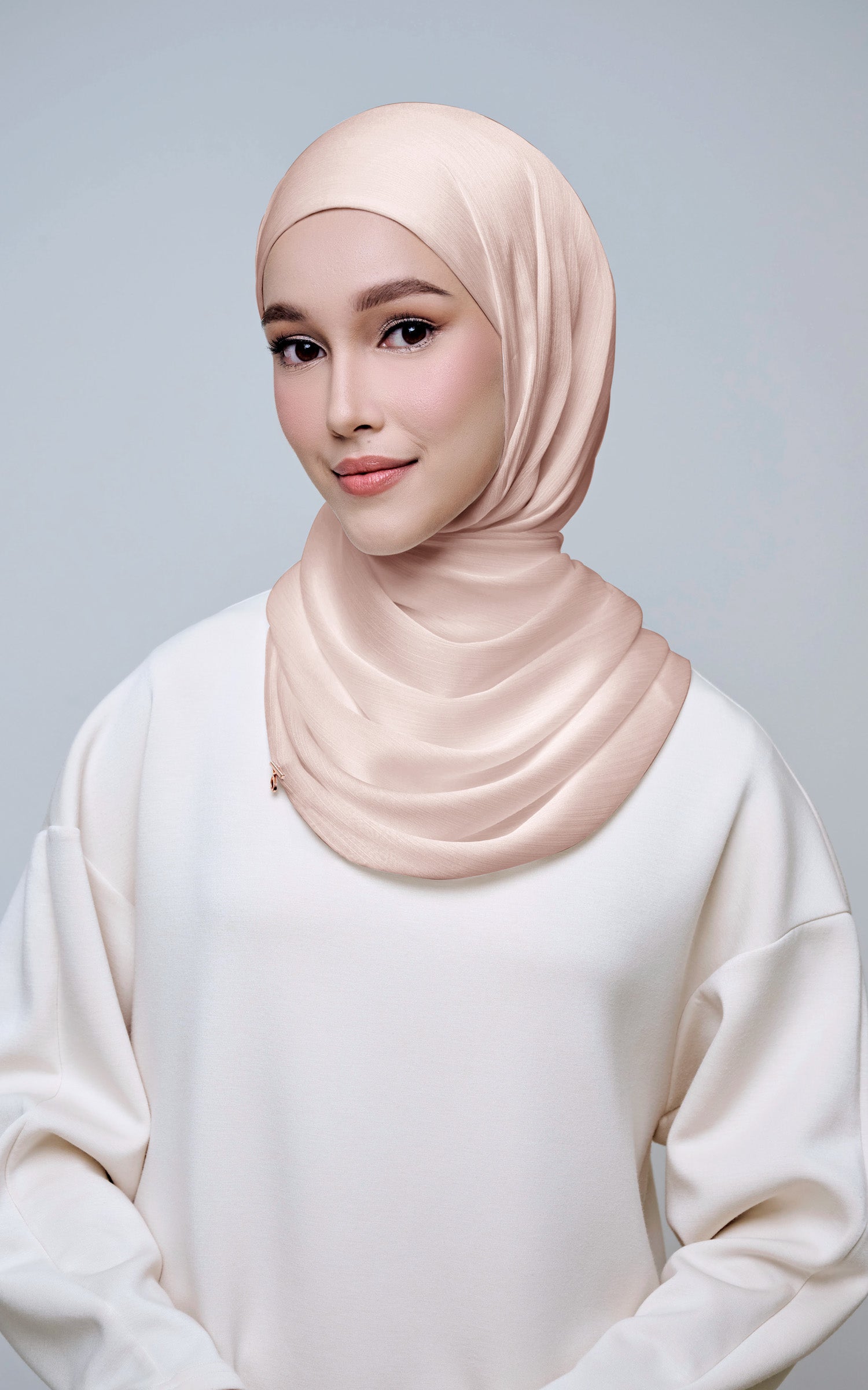 Maysa is crafted from Premium Satin Yoryu, a flowy textured satin that features a soft shimmer to enhance your look. It comes with a built-in tie-back inner in the same colour as the shawl, eliminating the need for colour matching or extra layers. While it’s not as lightweight as our Darla collection, its slightly heavier weight gives it a beautiful drape that stays in place and adds a graceful flow to your styling. With its generous length, Maysa allows you to create a variety of shawl looks effortlessly. Its material becomes fully opaque when folded, making it both practical and sophisticated.