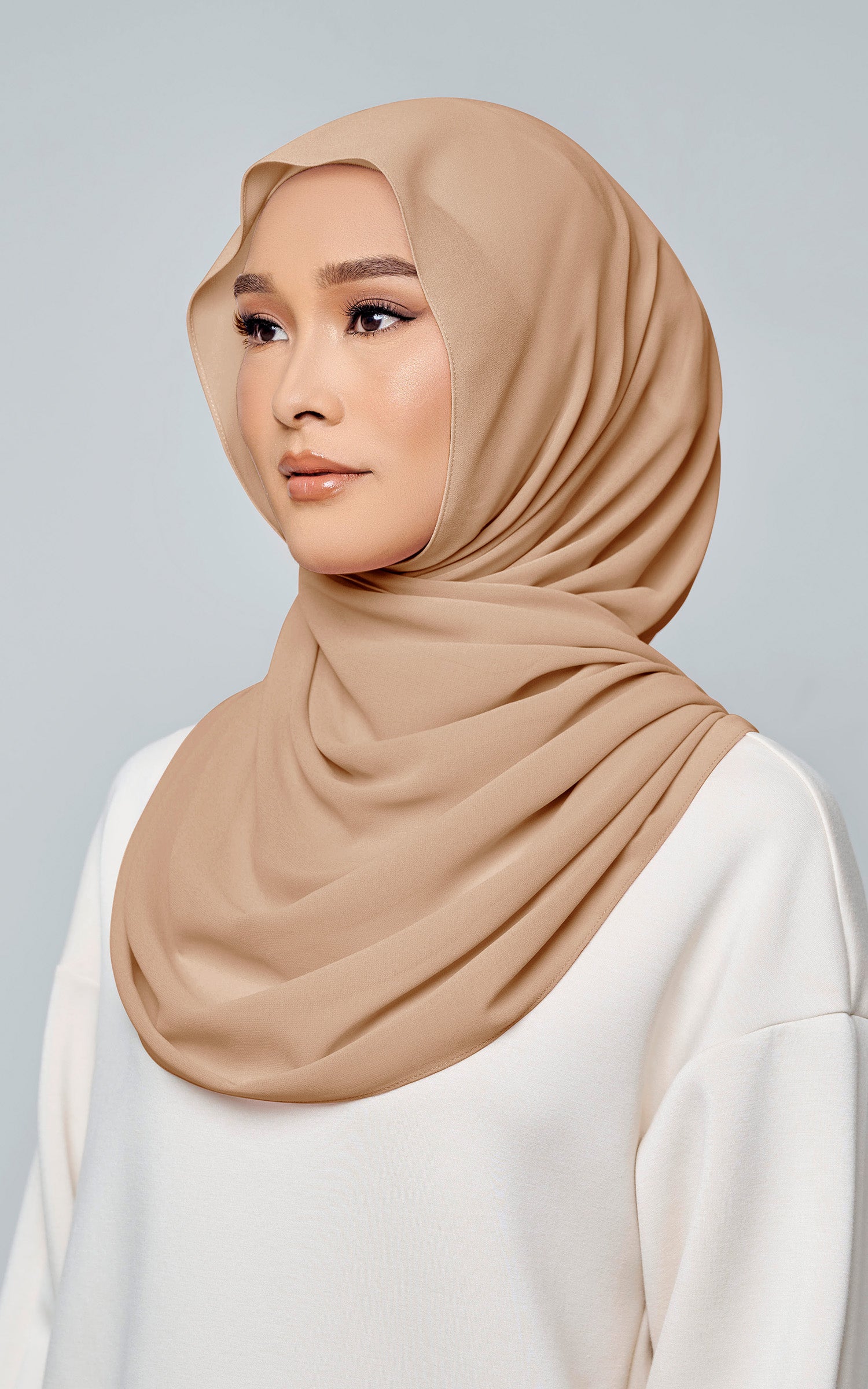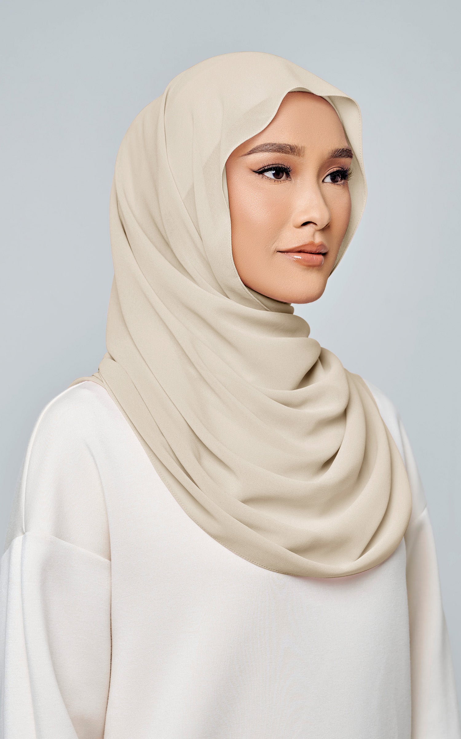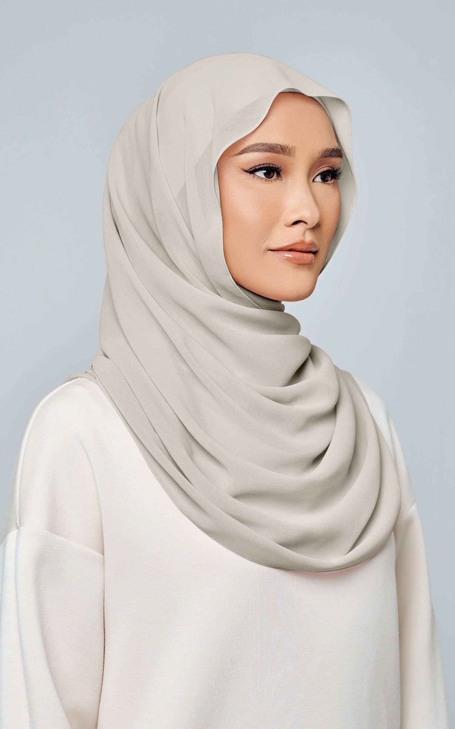 The Dafne instant shawl combines convenience and style in one essential hijab. Crafted from high quality pearl chiffon, Dafne offers a lightweight, breathable feel that’s perfect for all-day wear. Its Cotton Viscose inner is not only gentle on the skin but also spacious, with a secure band to keep everything in place. With an adaptable awning that can be worn loosely or styled neatly, Dafne is incredibly easy to wear and complements both casual and professional outfits effortlessly.