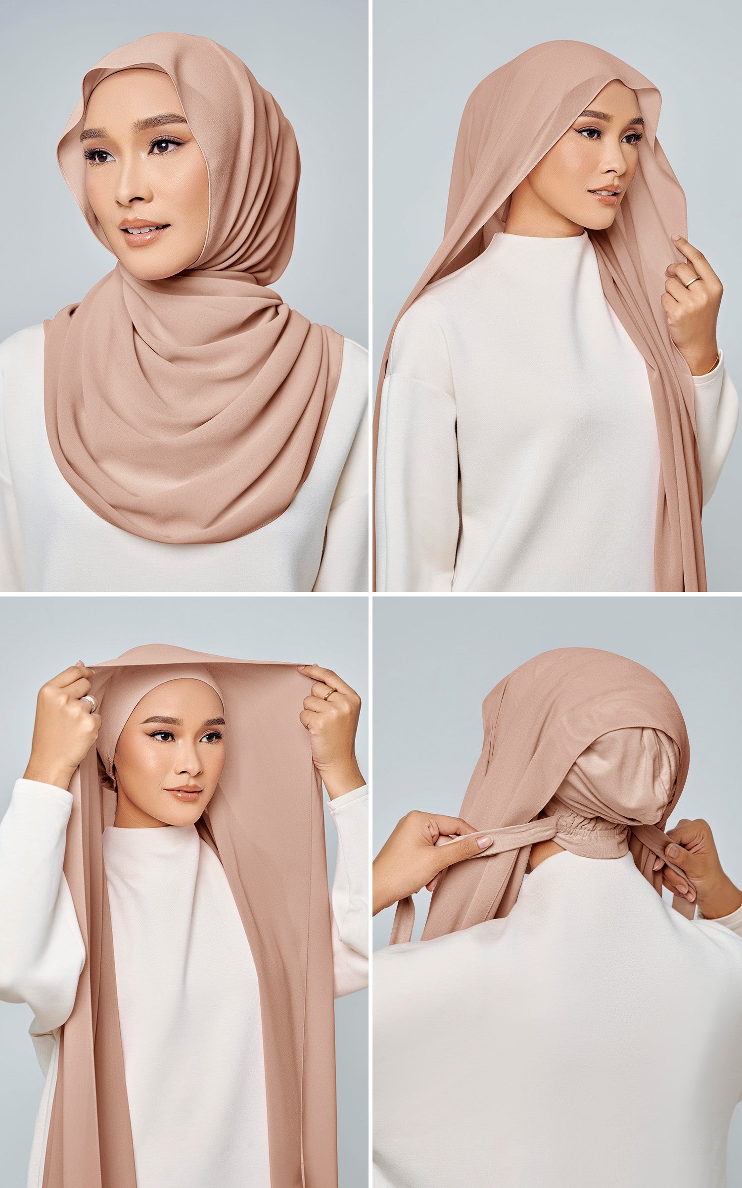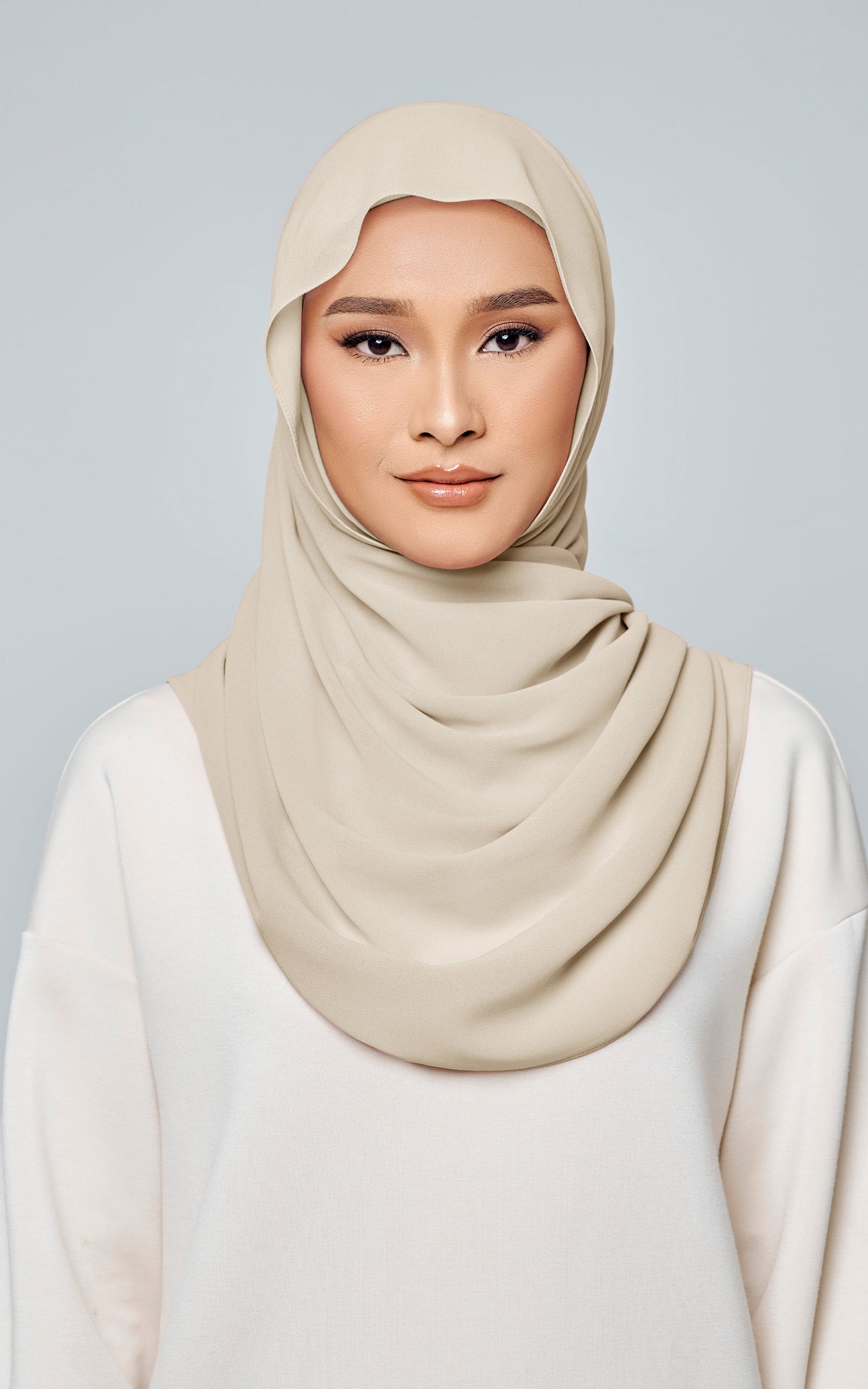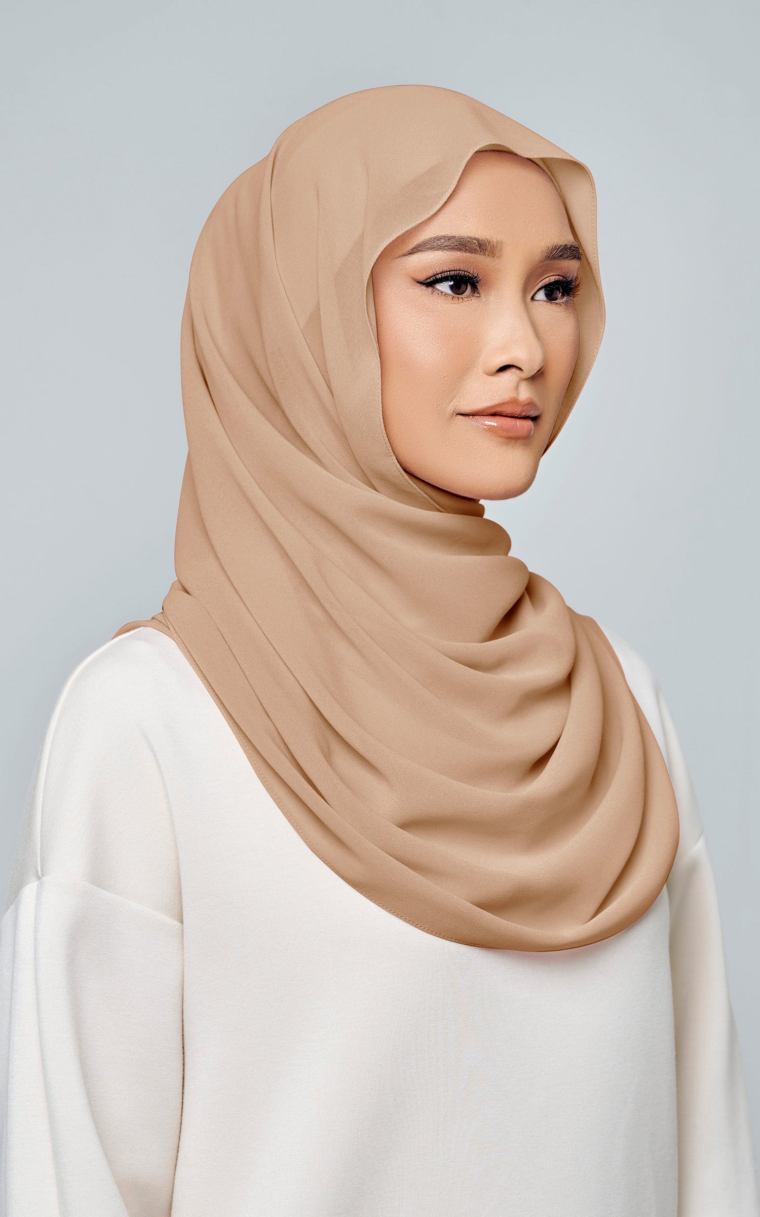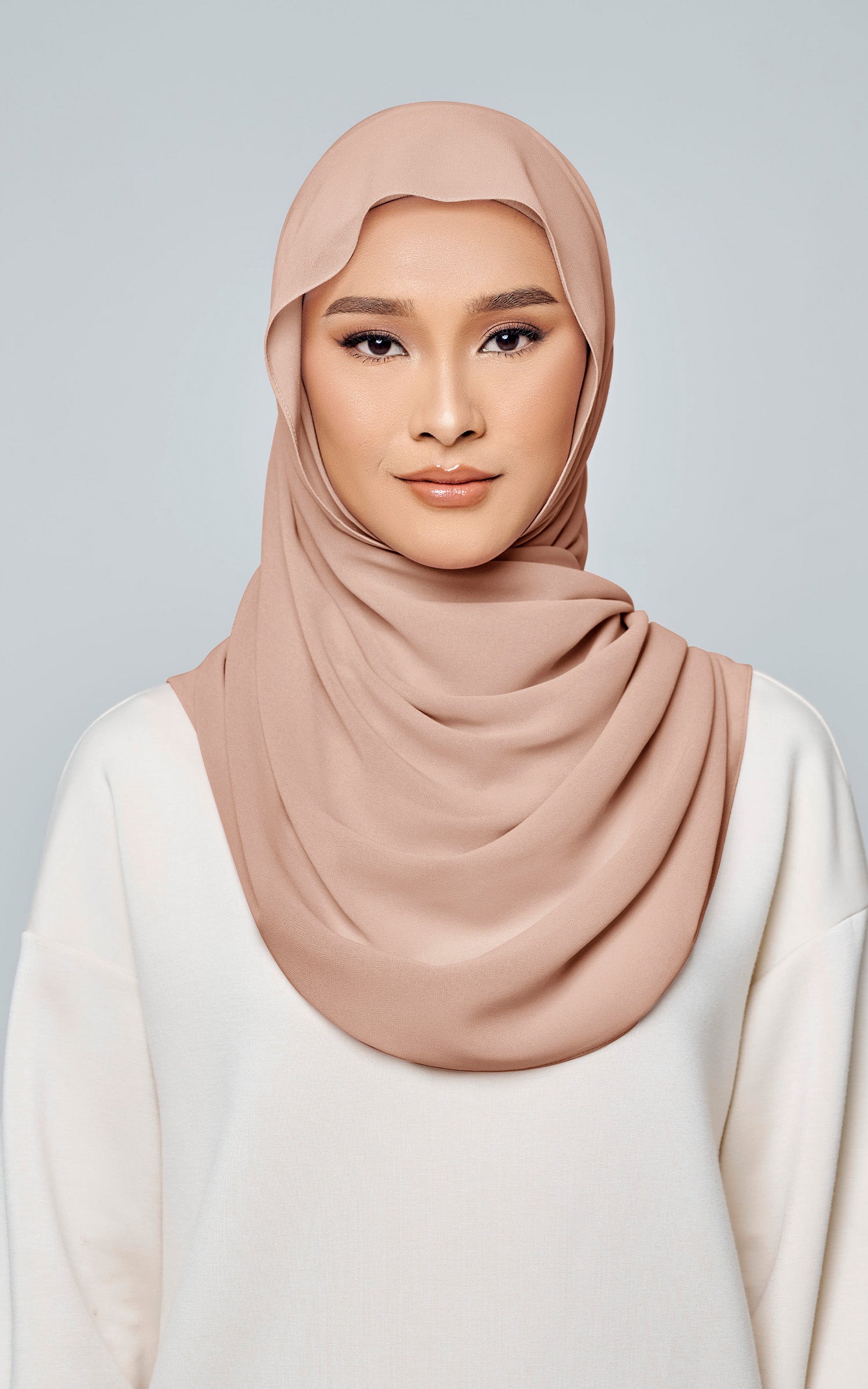 The Dafne instant shawl combines convenience and style in one essential hijab. Crafted from high quality pearl chiffon, Dafne offers a lightweight, breathable feel that’s perfect for all-day wear. Its Cotton Viscose inner is not only gentle on the skin but also spacious, with a secure band to keep everything in place. With an adaptable awning that can be worn loosely or styled neatly, Dafne is incredibly easy to wear and complements both casual and professional outfits effortlessly.