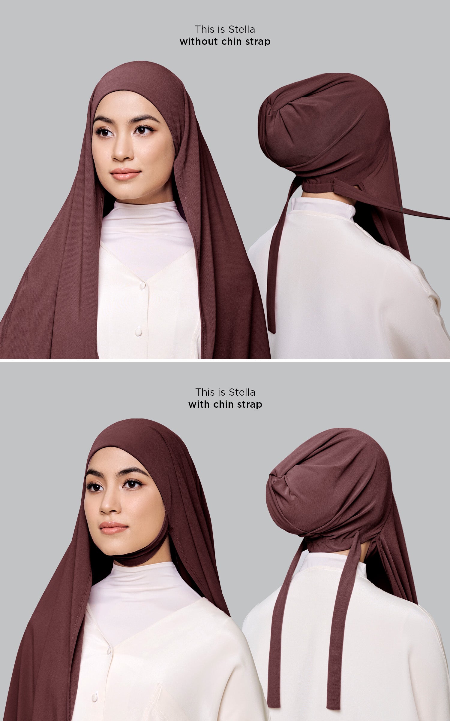 Stella is making a comeback, our best-selling instant hijab made from Rosy Twill Crepe, a fabric loved for its wrinkle resistance, durability, and luxurious drape. Designed with comfort in mind, Stella comes with an attached inner in a matching color and an adjustable back band for a perfect fit. Now, we’re giving you even more options. Choose with a chin strap for extra security or without for a sleek, effortless look.
