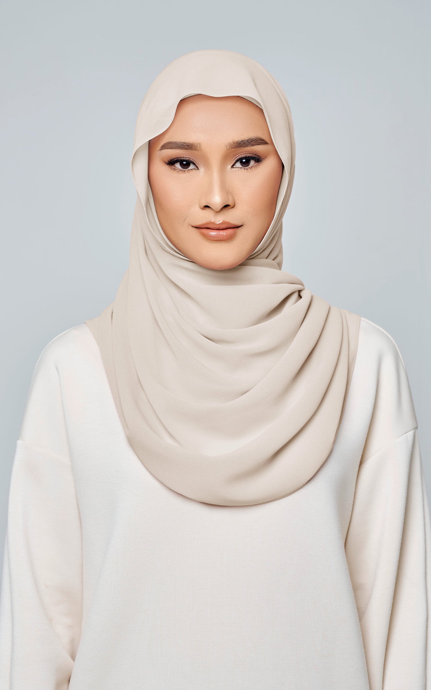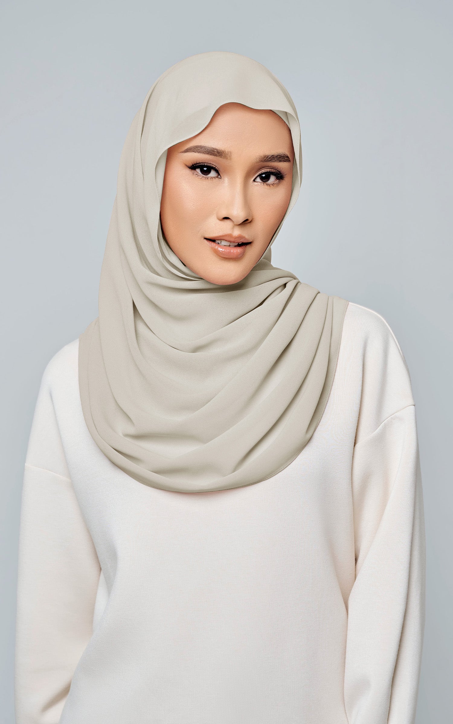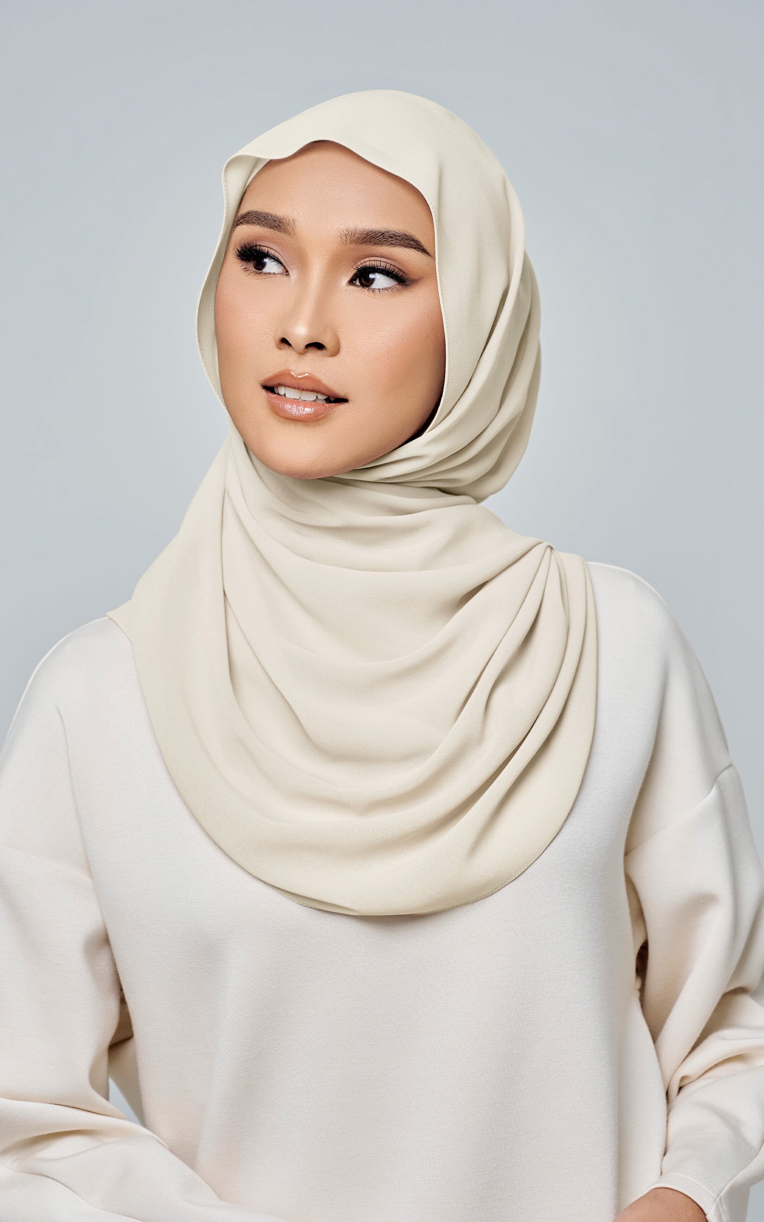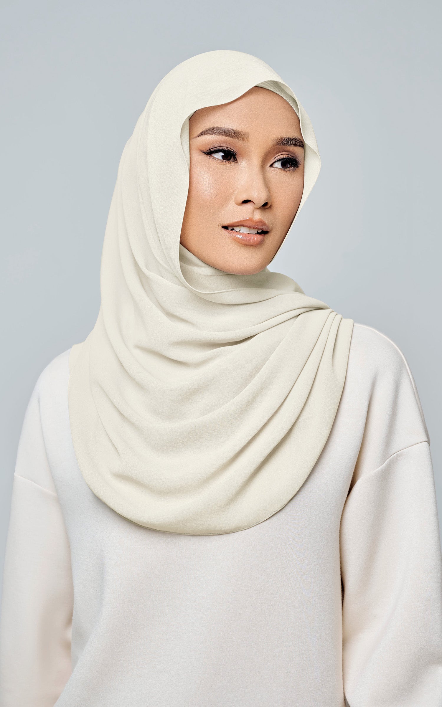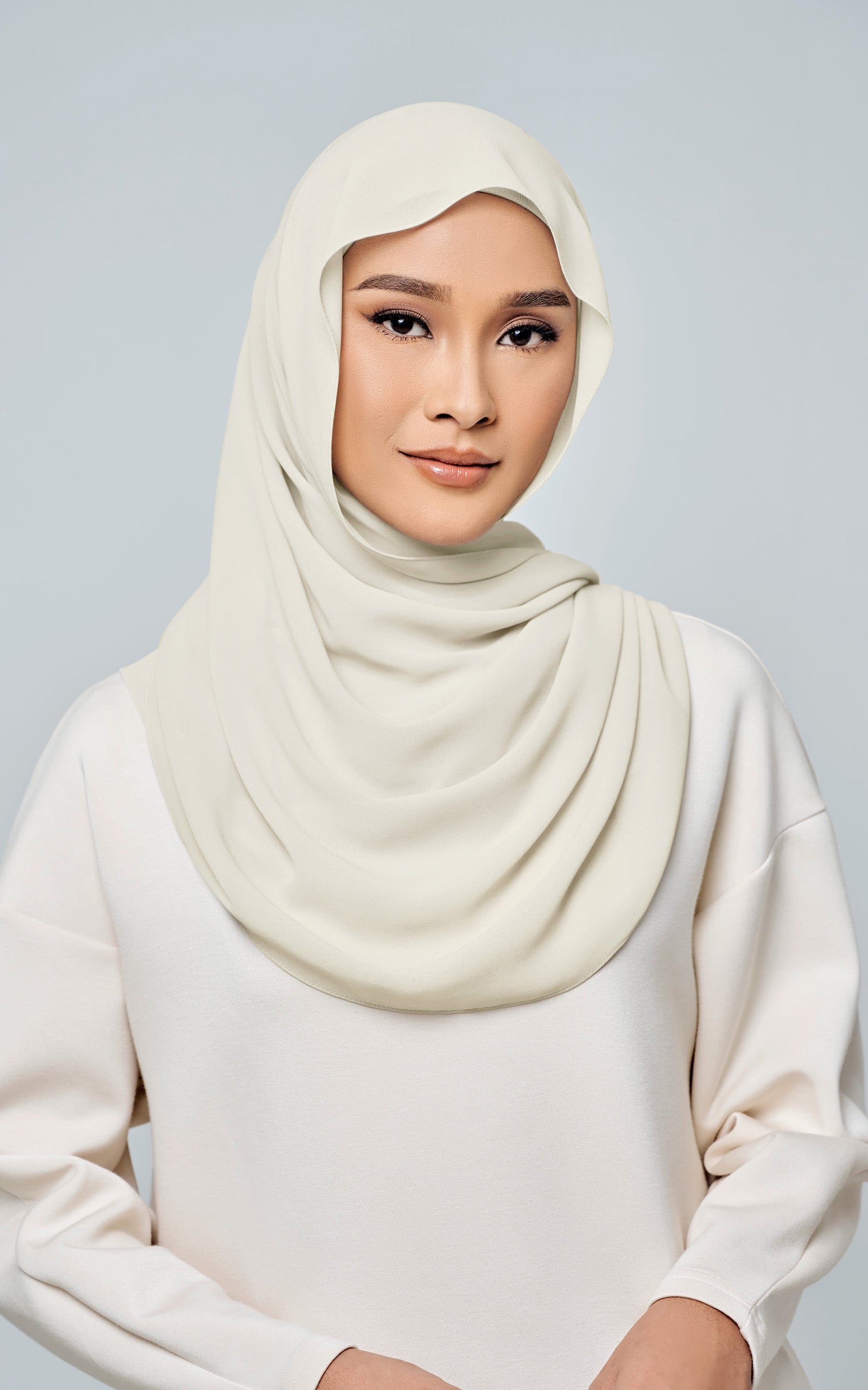 Crafted from High Quality Pearl Chiffon, Dafne maintains its signature lightweight, flowy drape that moves beautifully with you. The attached inner, made from soft and breathable Cotton Viscose, now features a new design without the band under the ears giving you a gentler, more comfortable fit even after long hours of wear. The improved inner fit also caters perfectly to all face shapes and sizes, ensuring a smooth and elegant look.