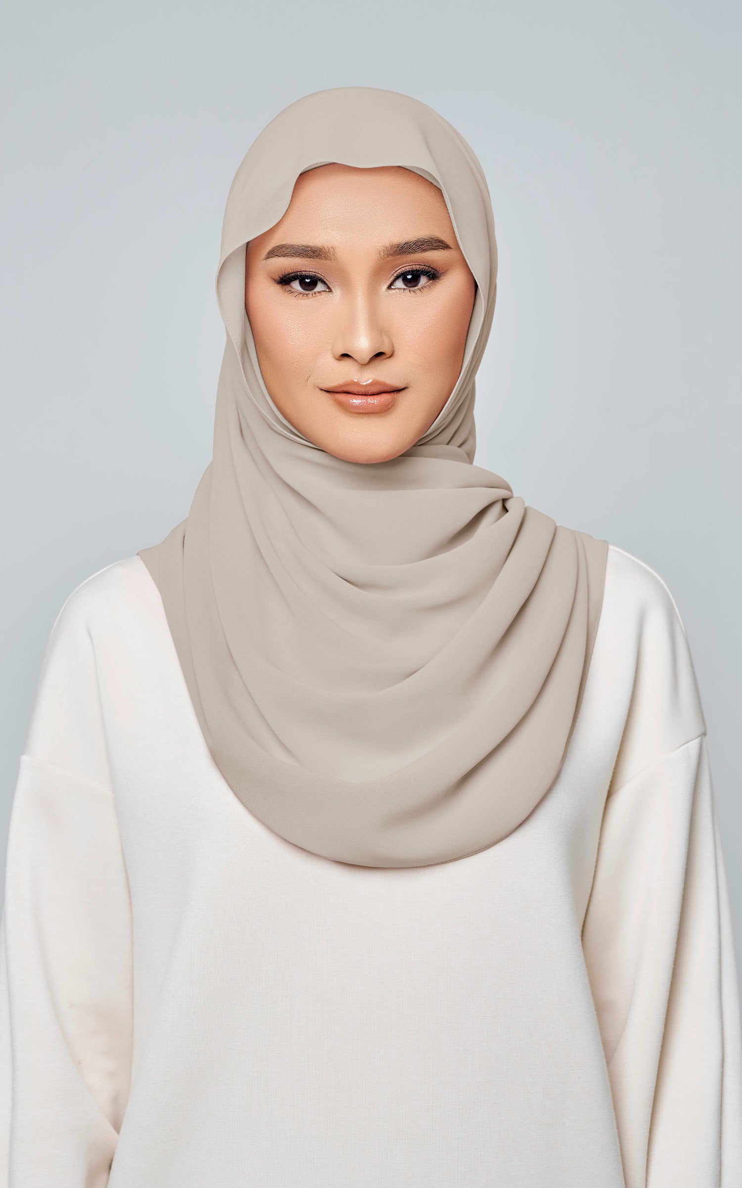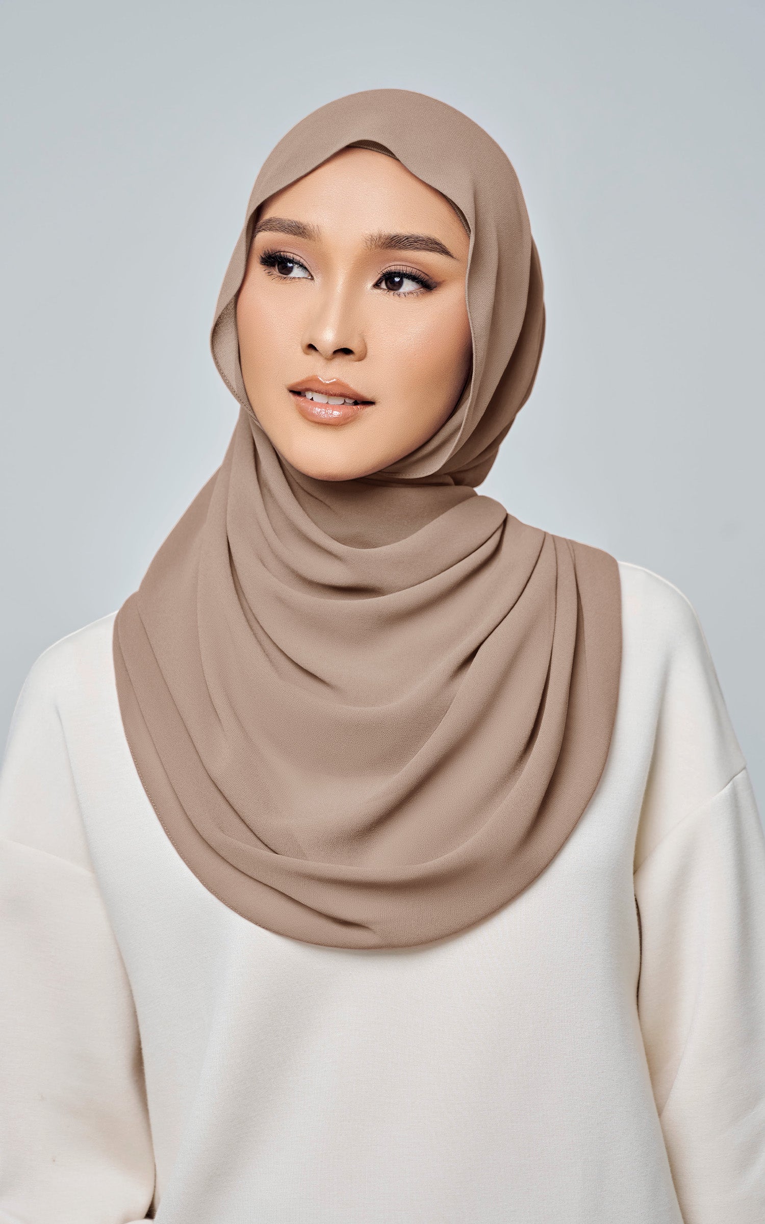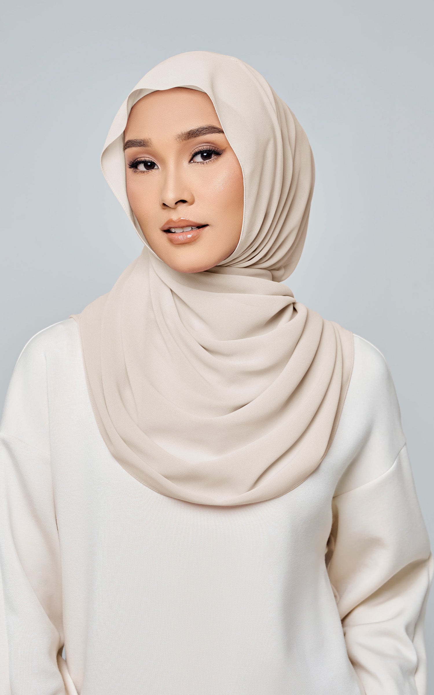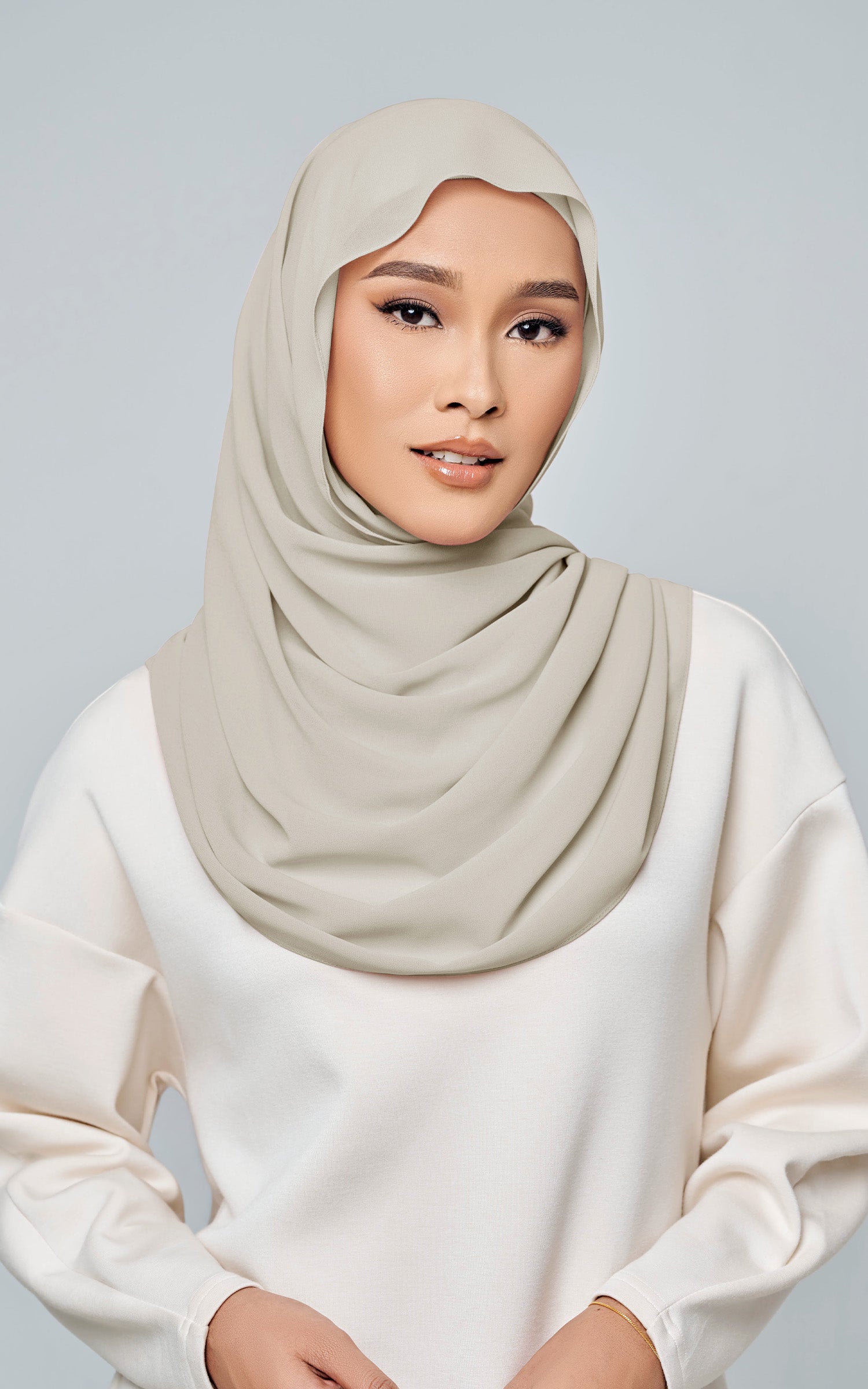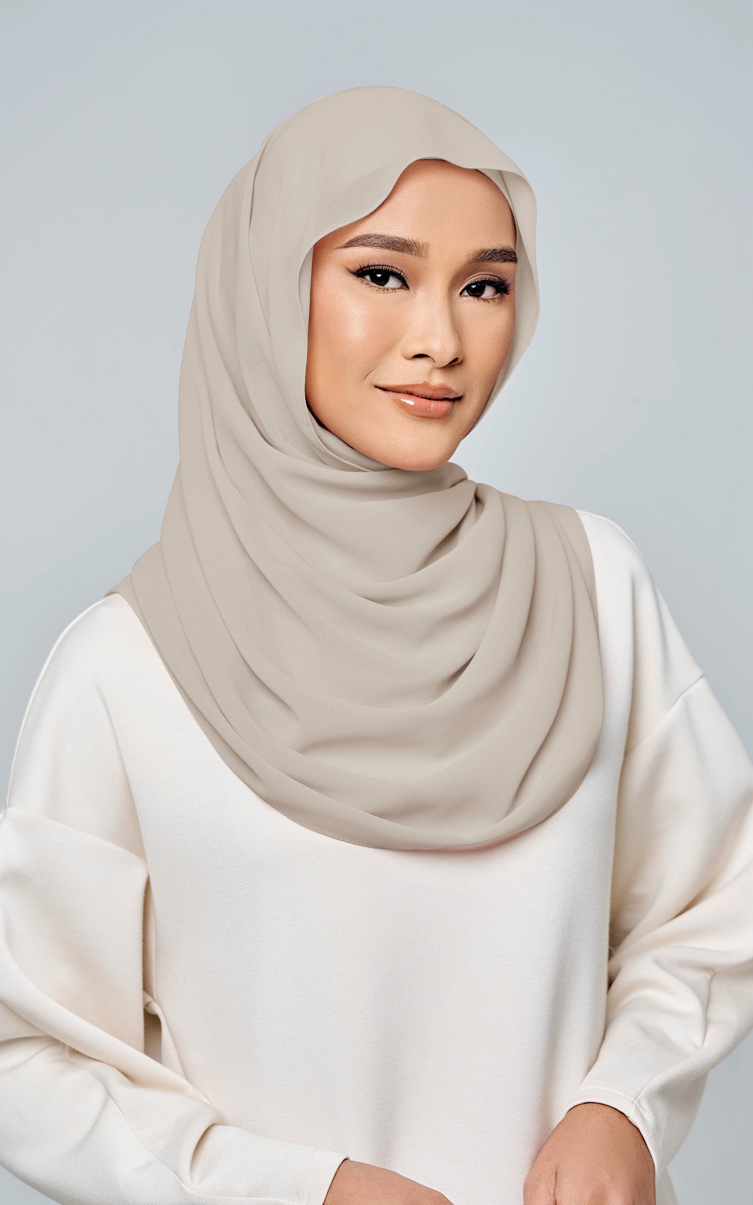 Crafted from High Quality Pearl Chiffon, Dafne maintains its signature lightweight, flowy drape that moves beautifully with you. The attached inner, made from soft and breathable Cotton Viscose, now features a new design without the band under the ears giving you a gentler, more comfortable fit even after long hours of wear. The improved inner fit also caters perfectly to all face shapes and sizes, ensuring a smooth and elegant look.