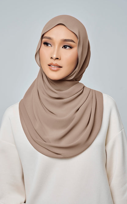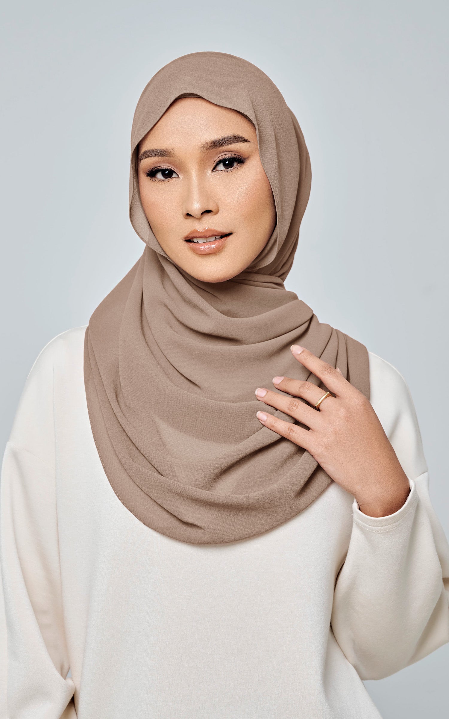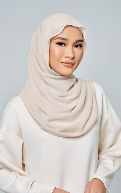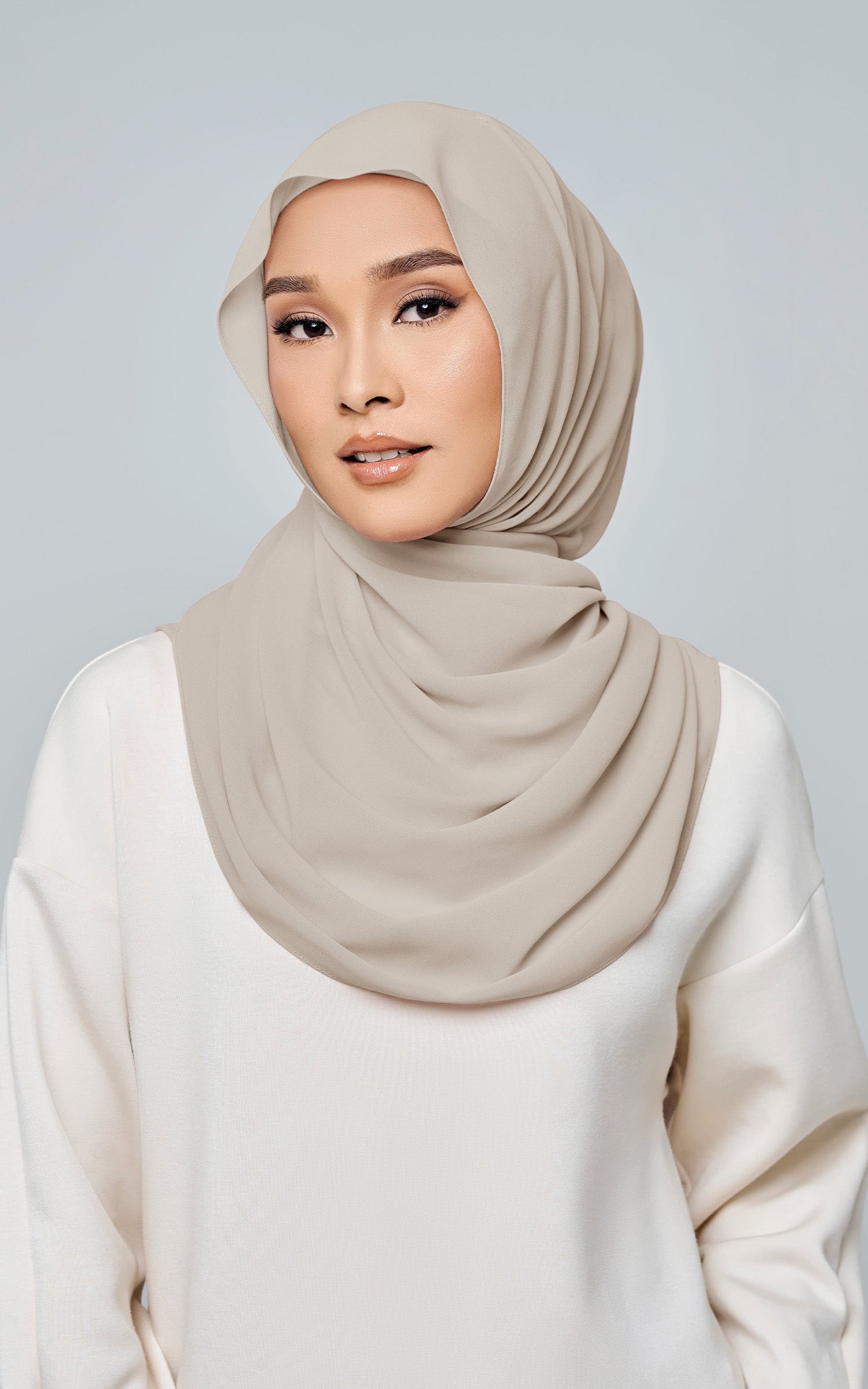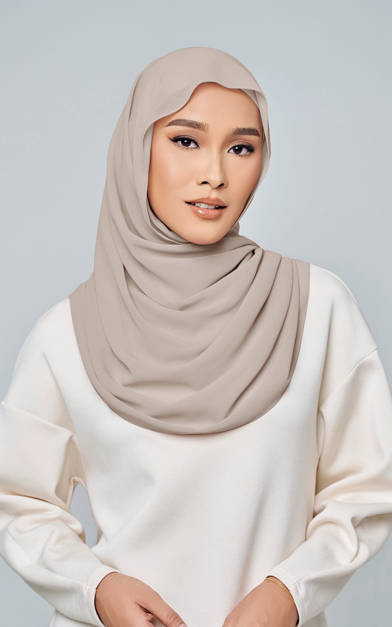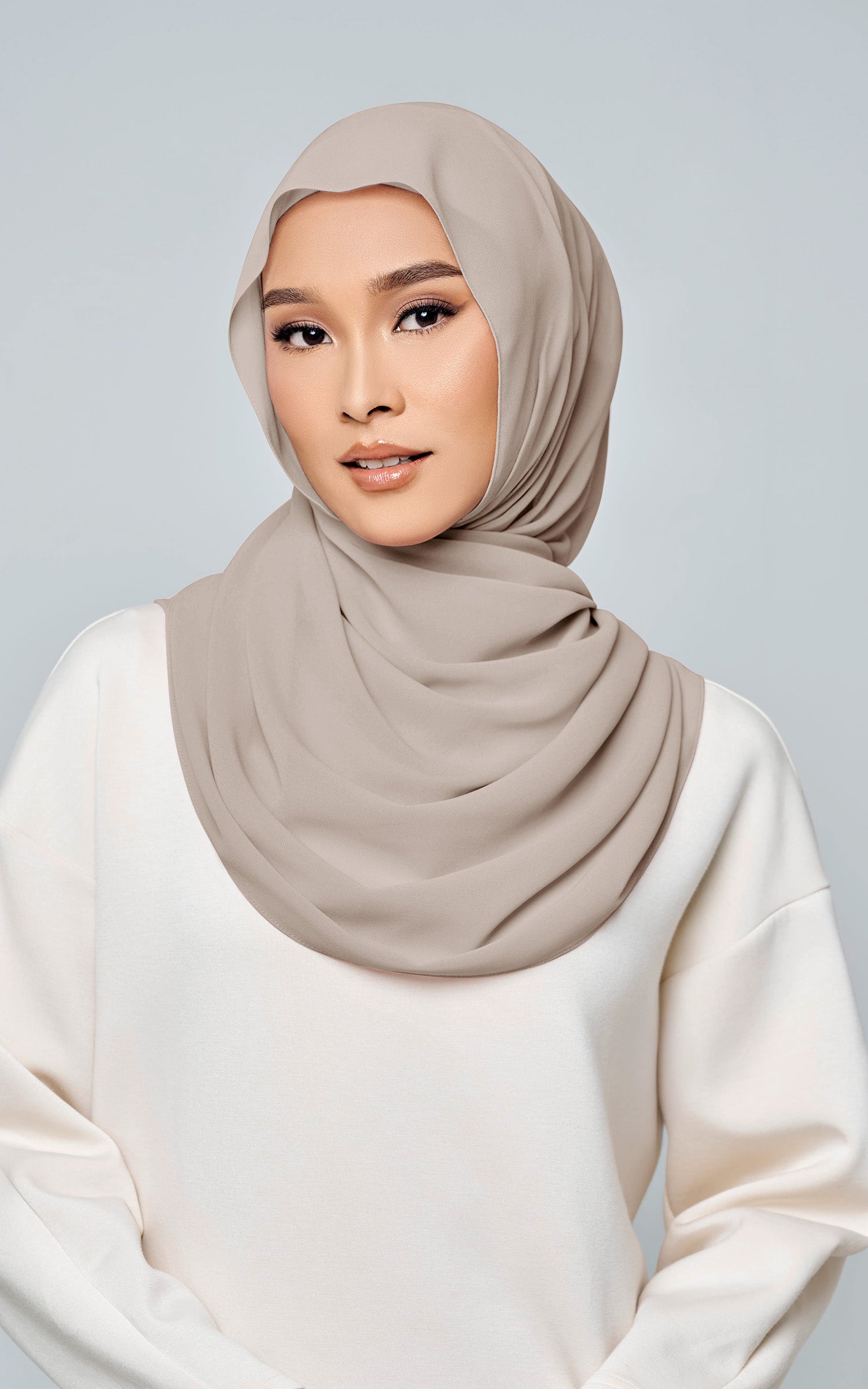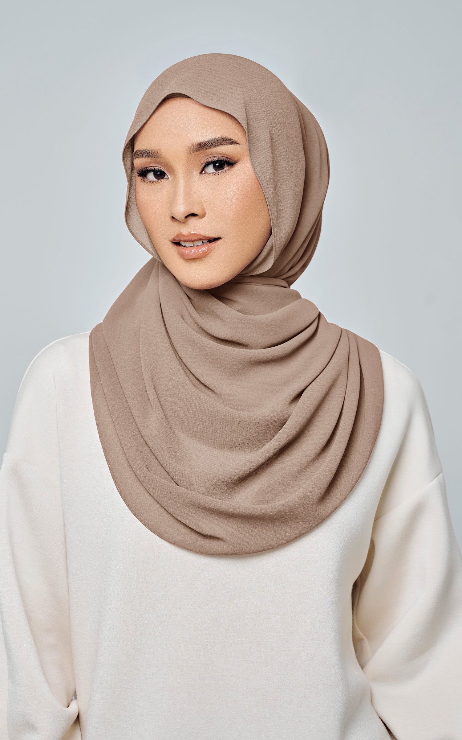 Crafted from High Quality Pearl Chiffon, Dafne maintains its signature lightweight, flowy drape that moves beautifully with you. The attached inner, made from soft and breathable Cotton Viscose, now features a new design without the band under the ears giving you a gentler, more comfortable fit even after long hours of wear. The improved inner fit also caters perfectly to all face shapes and sizes, ensuring a smooth and elegant look.
