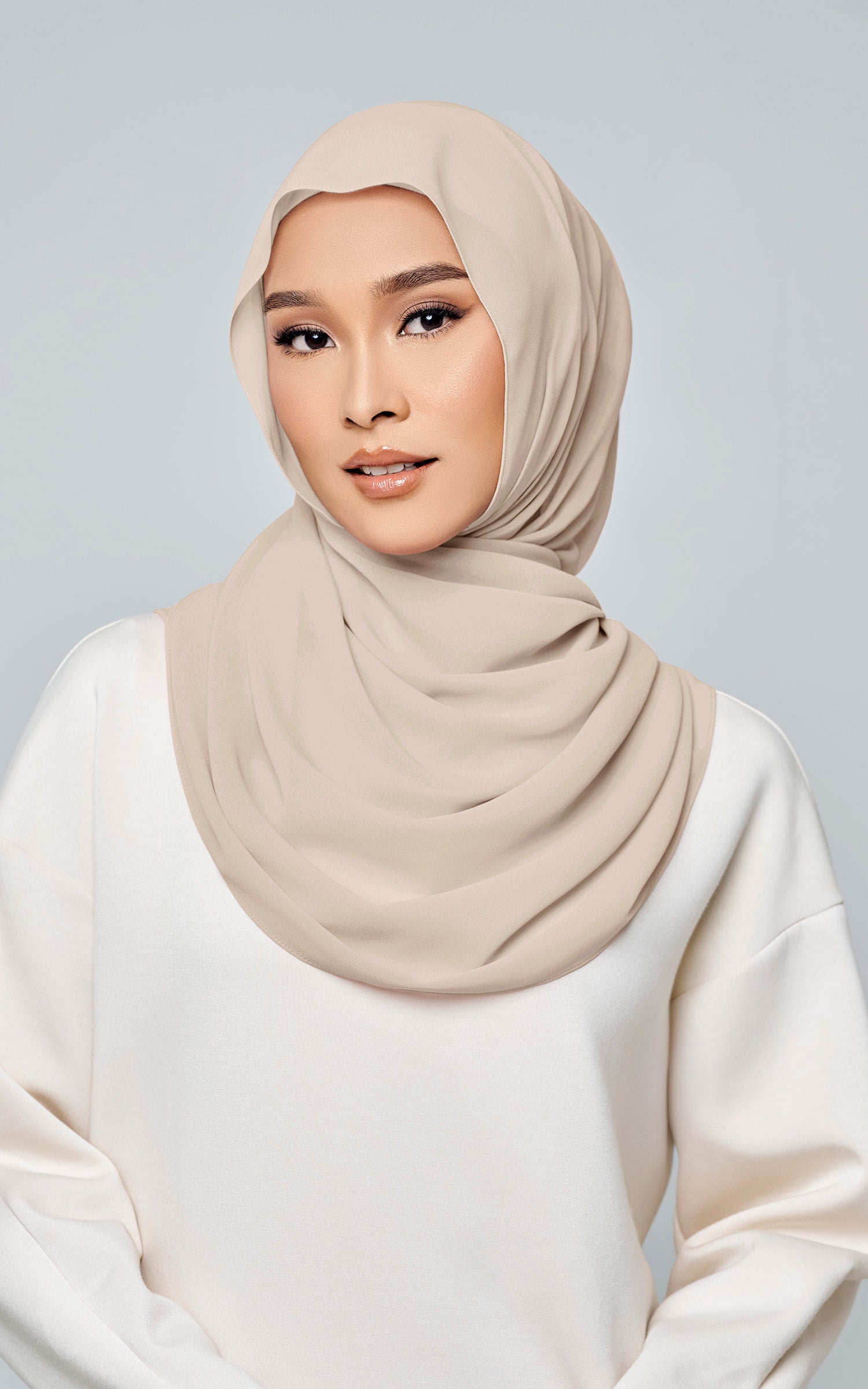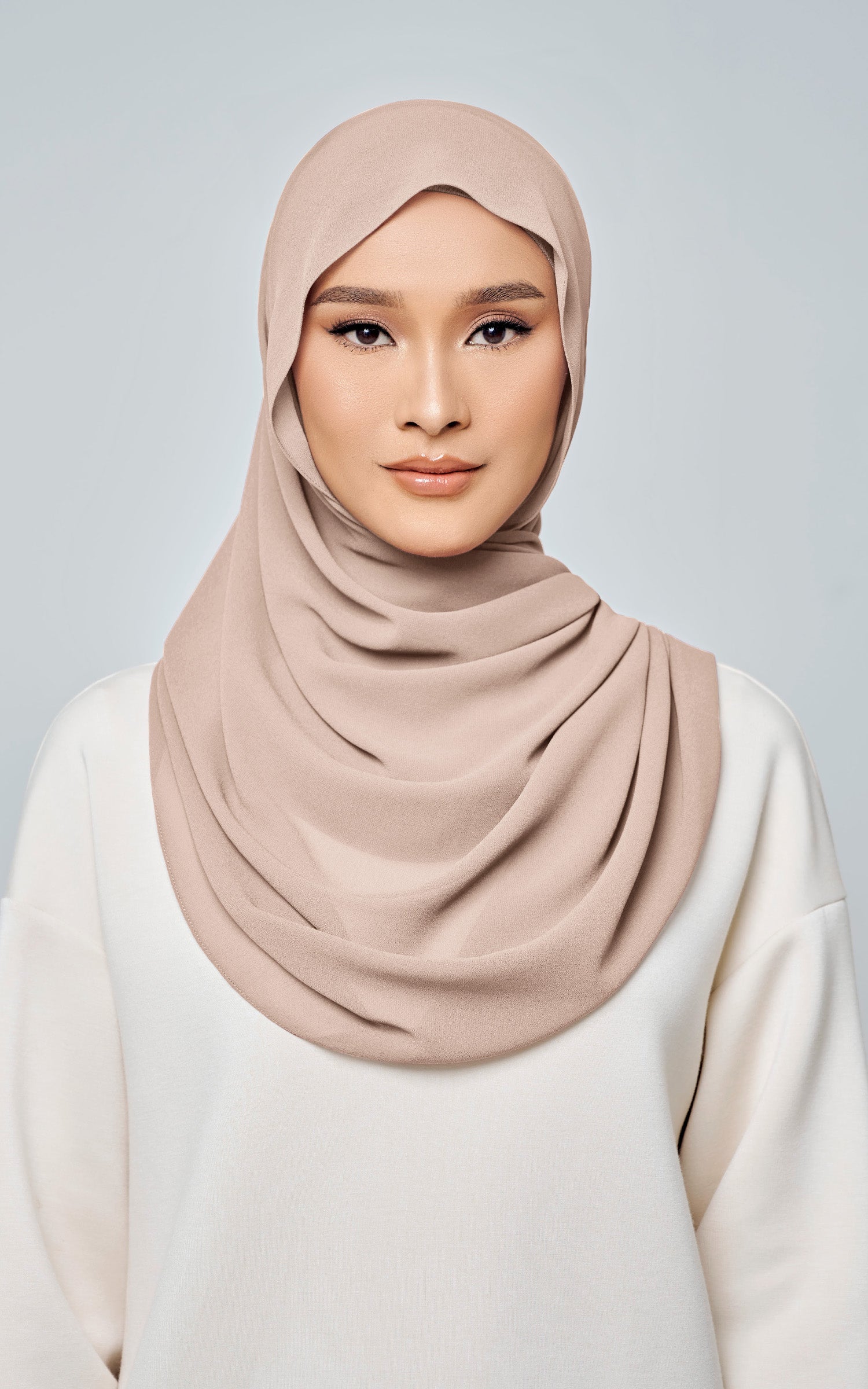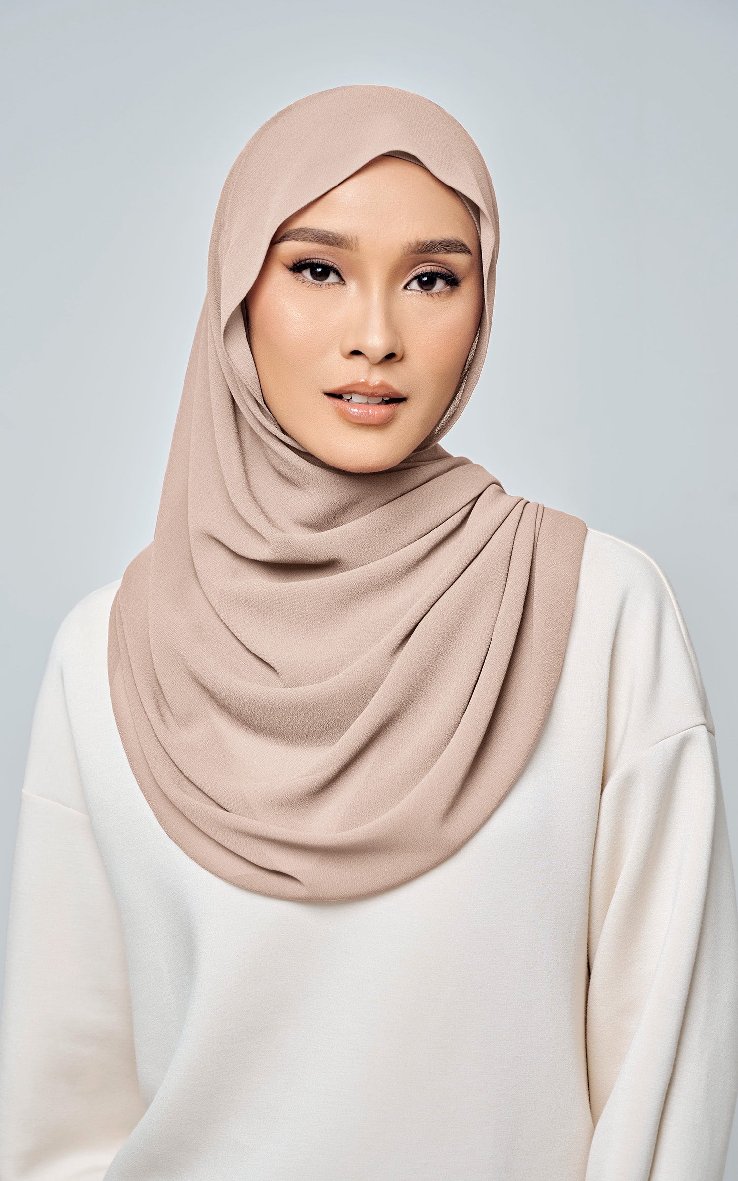 Crafted from High Quality Pearl Chiffon, Dafne maintains its signature lightweight, flowy drape that moves beautifully with you. The attached inner, made from soft and breathable Cotton Viscose, now features a new design without the band under the ears giving you a gentler, more comfortable fit even after long hours of wear. The improved inner fit also caters perfectly to all face shapes and sizes, ensuring a smooth and elegant look.