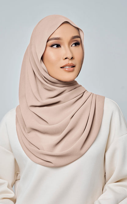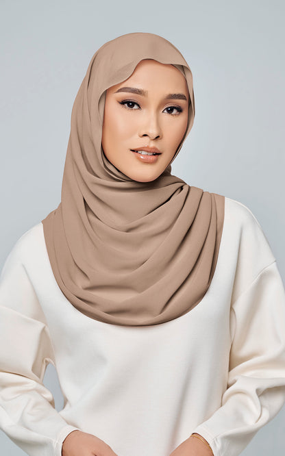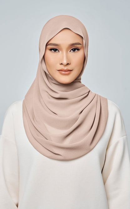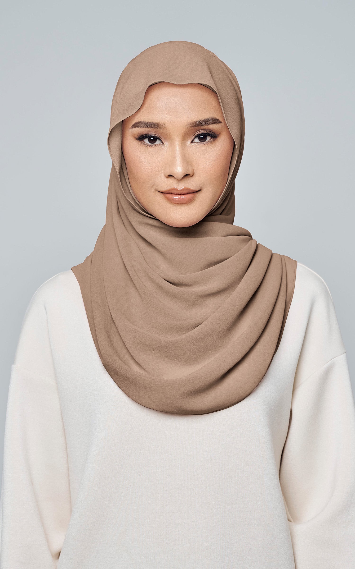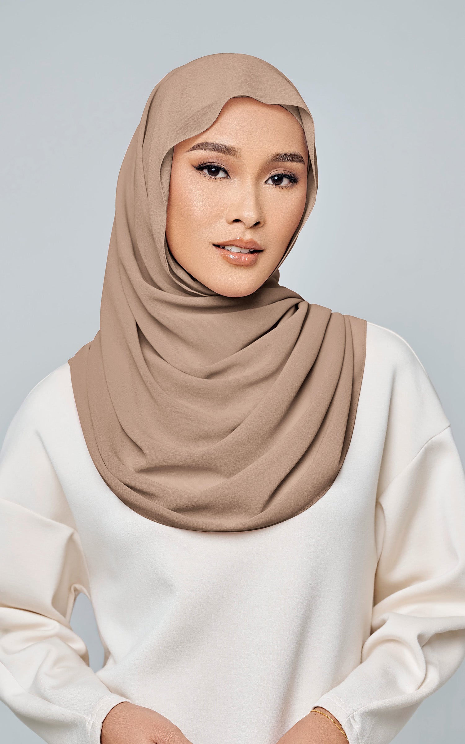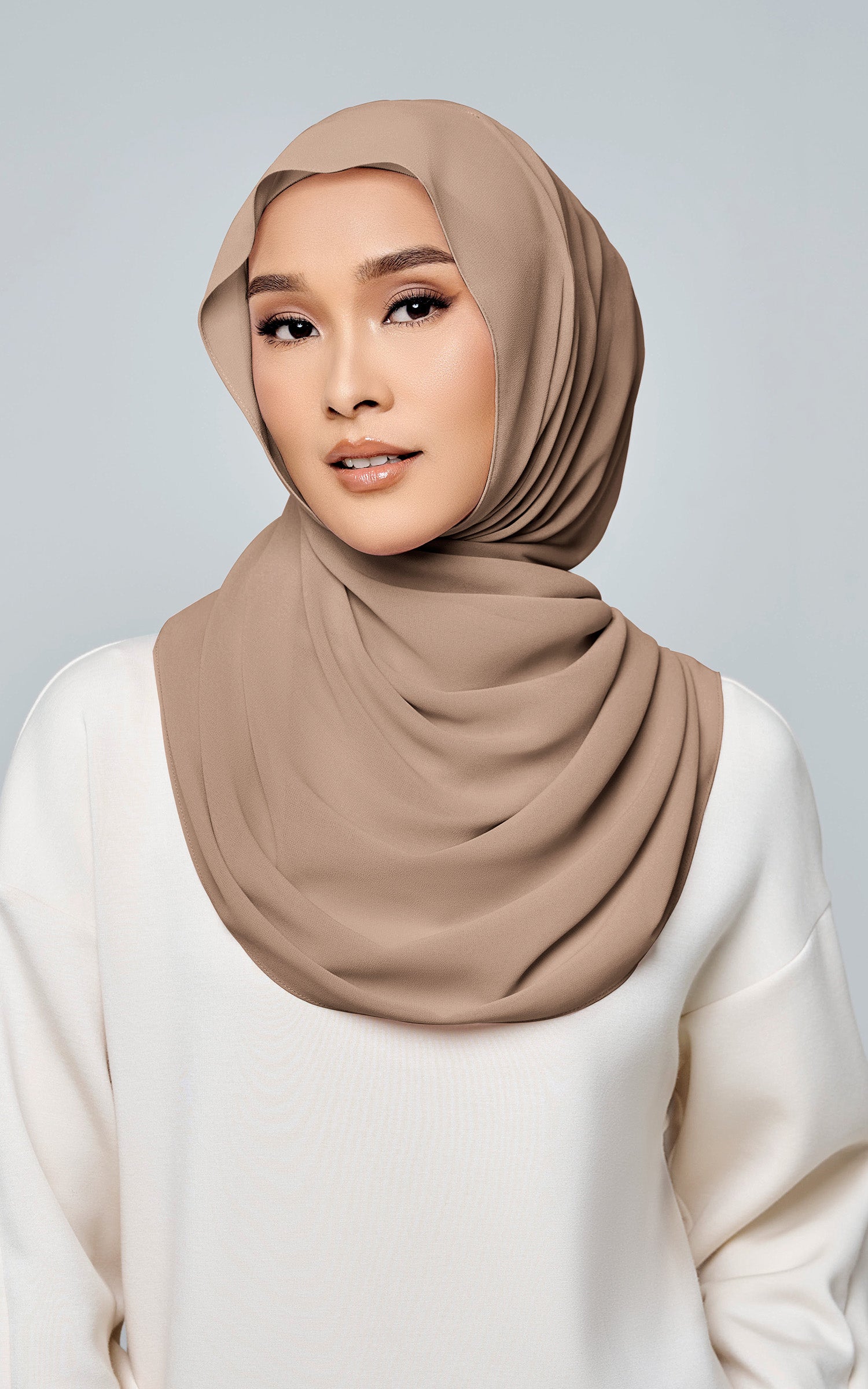 Crafted from High Quality Pearl Chiffon, Dafne maintains its signature lightweight, flowy drape that moves beautifully with you. The attached inner, made from soft and breathable Cotton Viscose, now features a new design without the band under the ears giving you a gentler, more comfortable fit even after long hours of wear. The improved inner fit also caters perfectly to all face shapes and sizes, ensuring a smooth and elegant look.