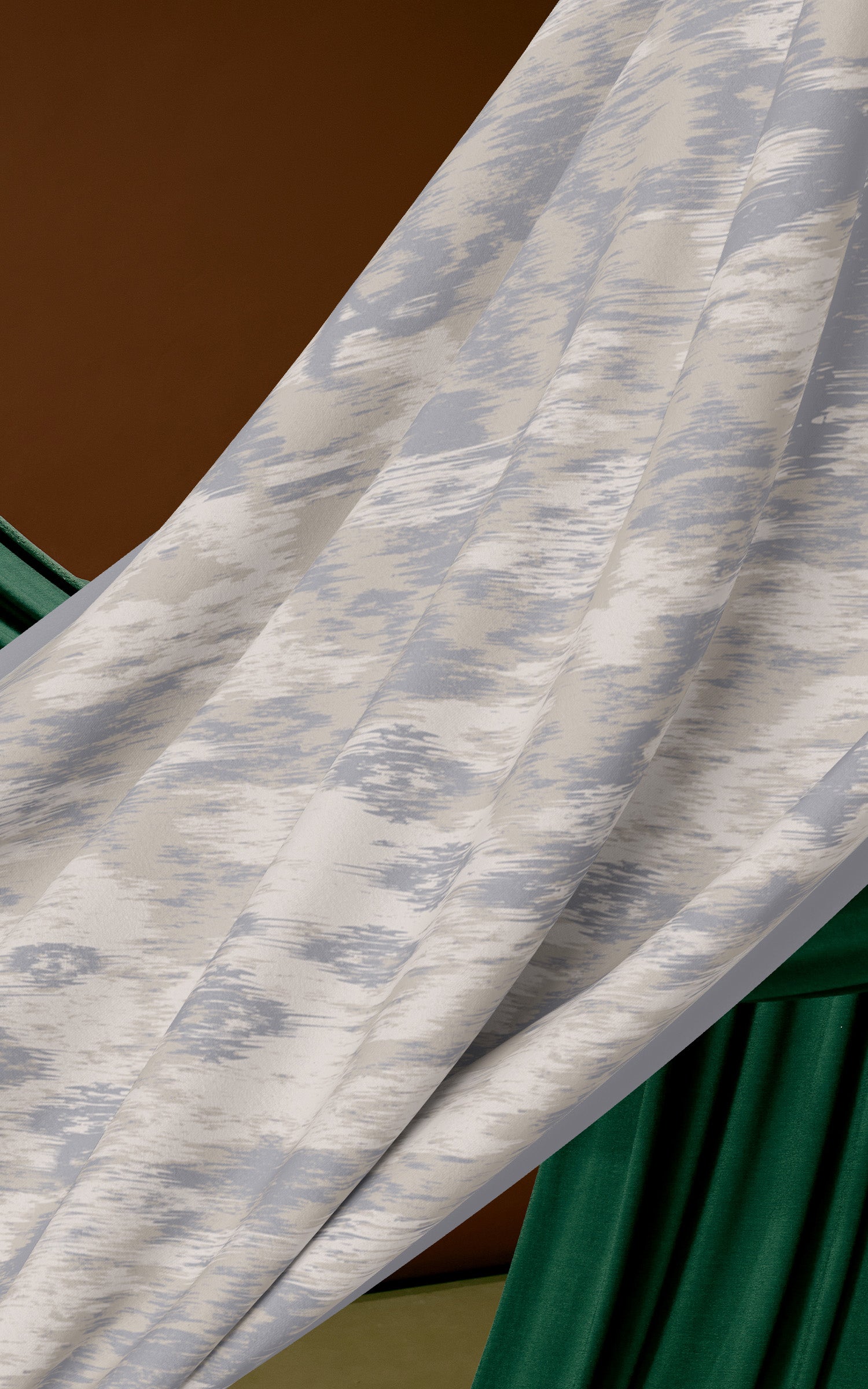 An abstract design created through fluid brush strokes, layered to form organic movement across the fabric. Nymph feels artistic and modern, offering a painterly interpretation of Raya for those drawn to expressive textures rather than defined florals.