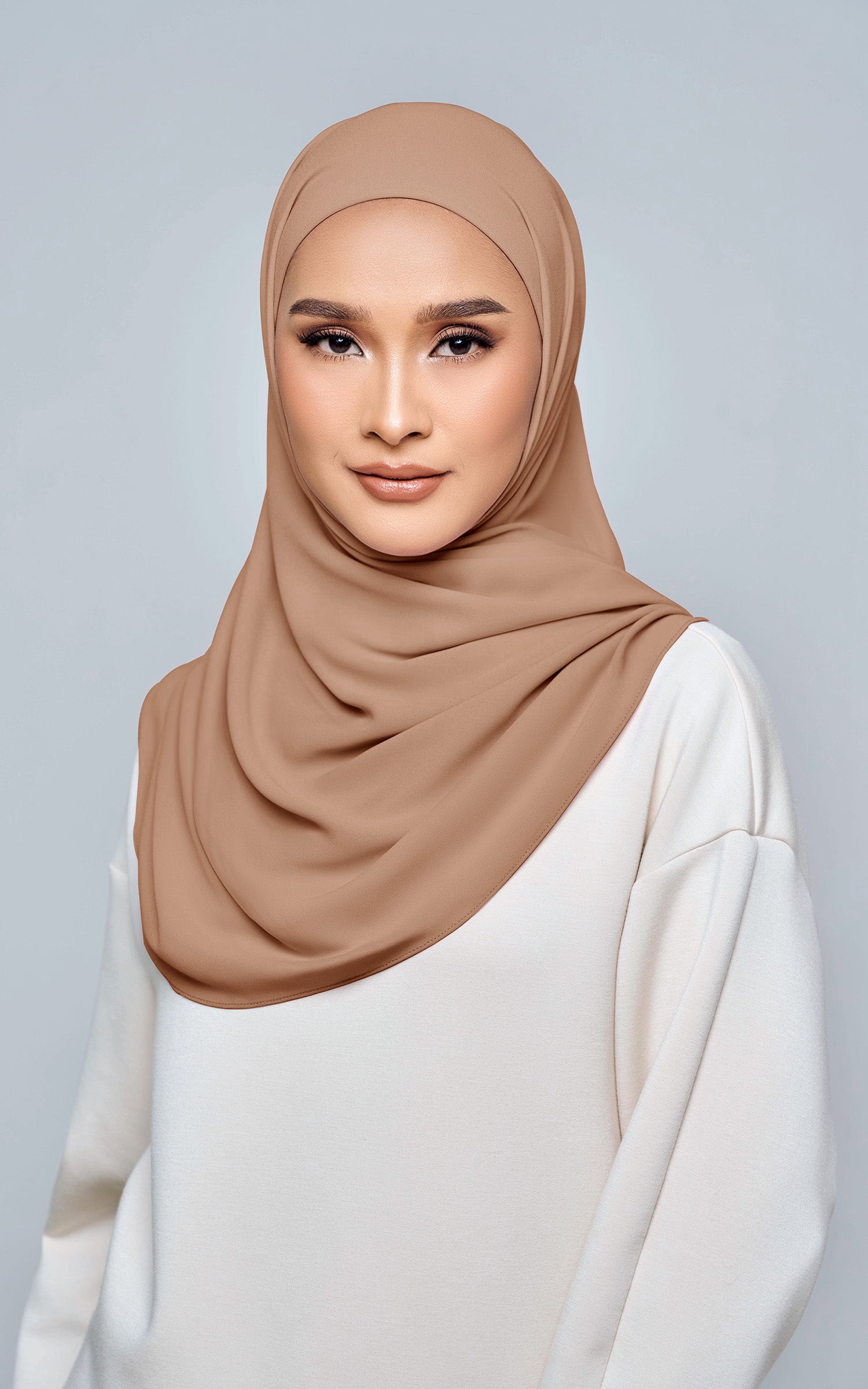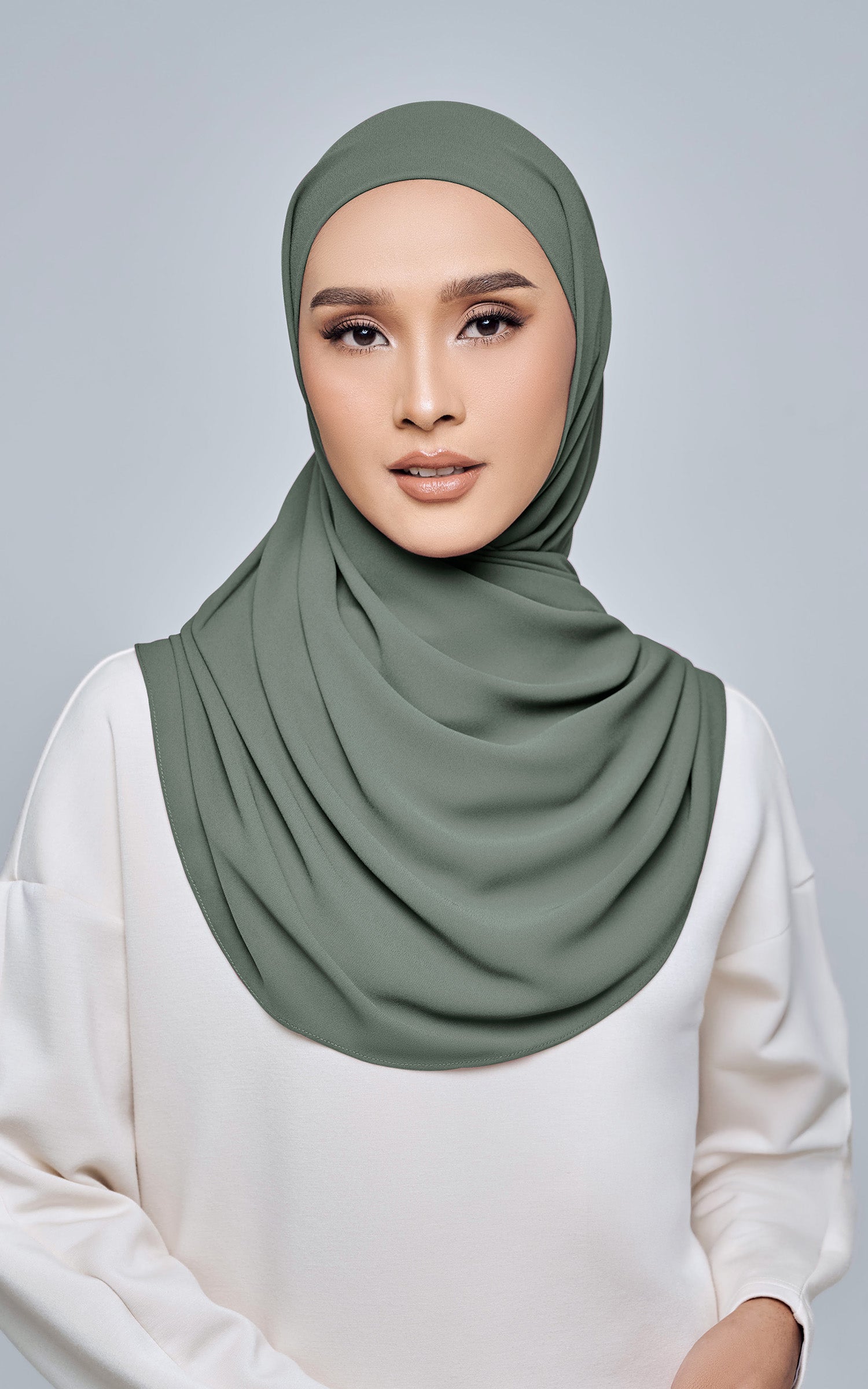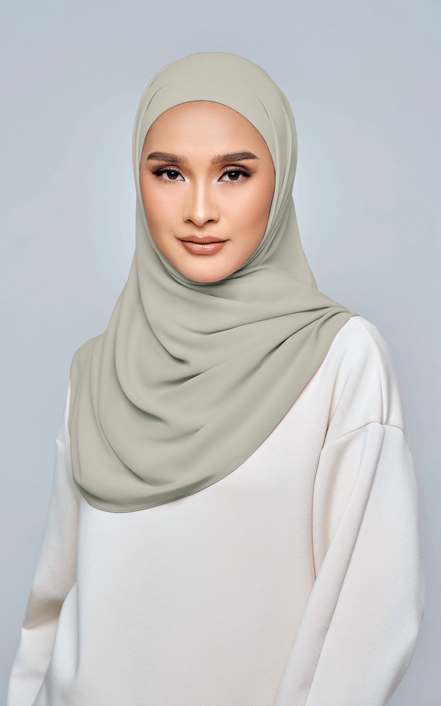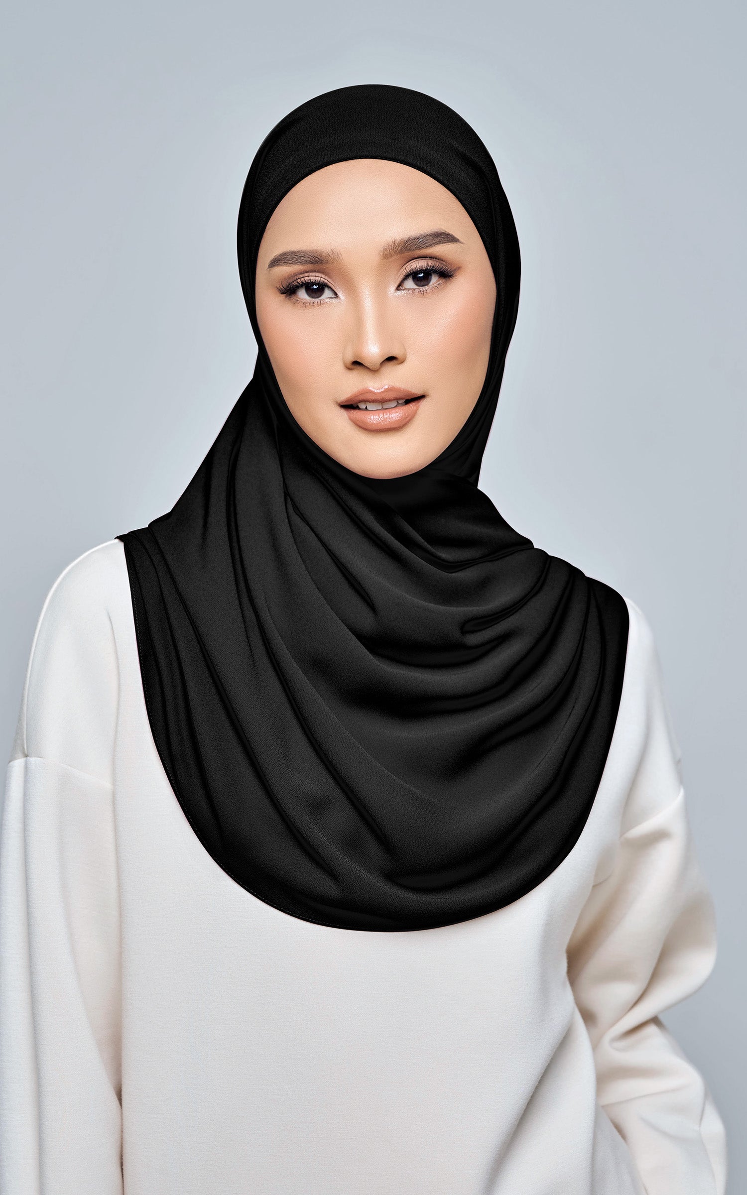 Starla is your go-to instant hijab that combines elegance and ease. Designed with a half moon shape for better coverage and flow, Starla features an attached inner made from Cotton Viscose, complete with a tie-back and secure band to ensure it stays in place. The hijab is crafted from Original Korean Chiffon, a material known for its lightweight, airy, and breathable properties. Starla’s baby seam stitching provides a refined finish, while the adjustable styling options allow you to wear it neatly, highlighting your face beautifully. Choose from two options: with a chin strap for added security or without for a more relaxed fit. This instant hijab is quick and easy to style, perfect for busy women who want to look fashionable effortlessly.