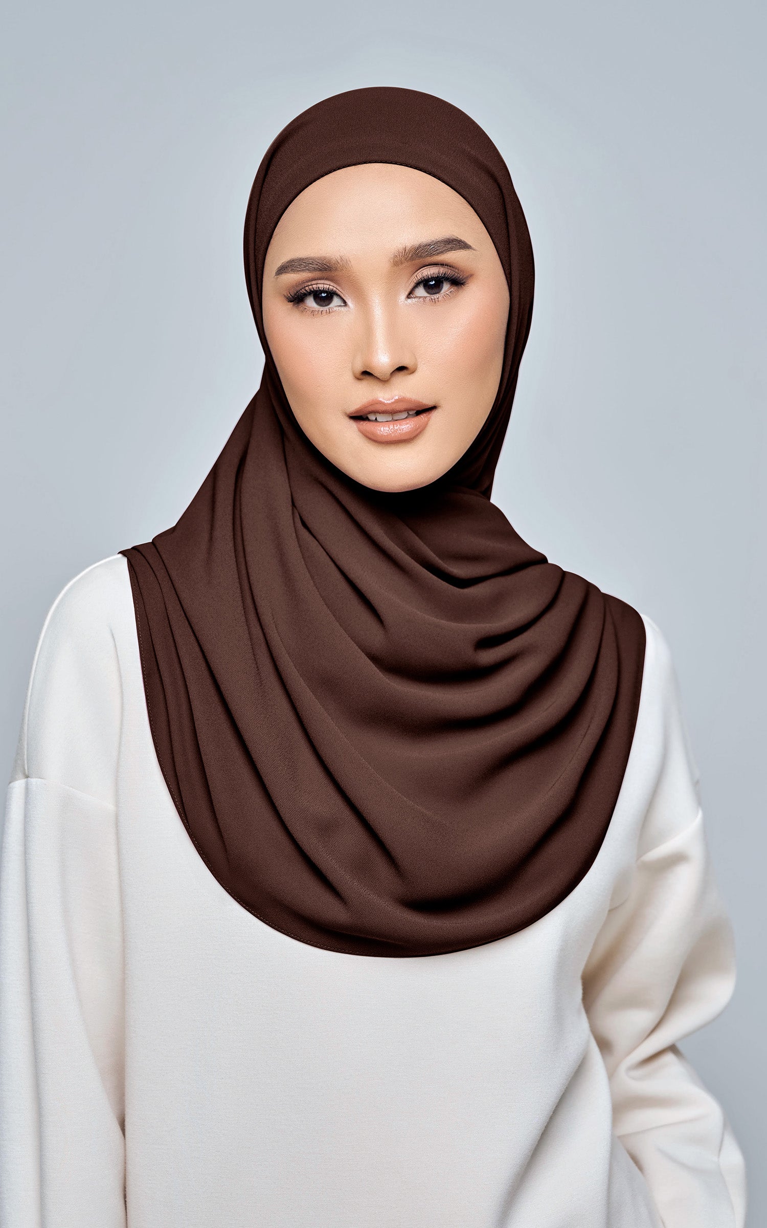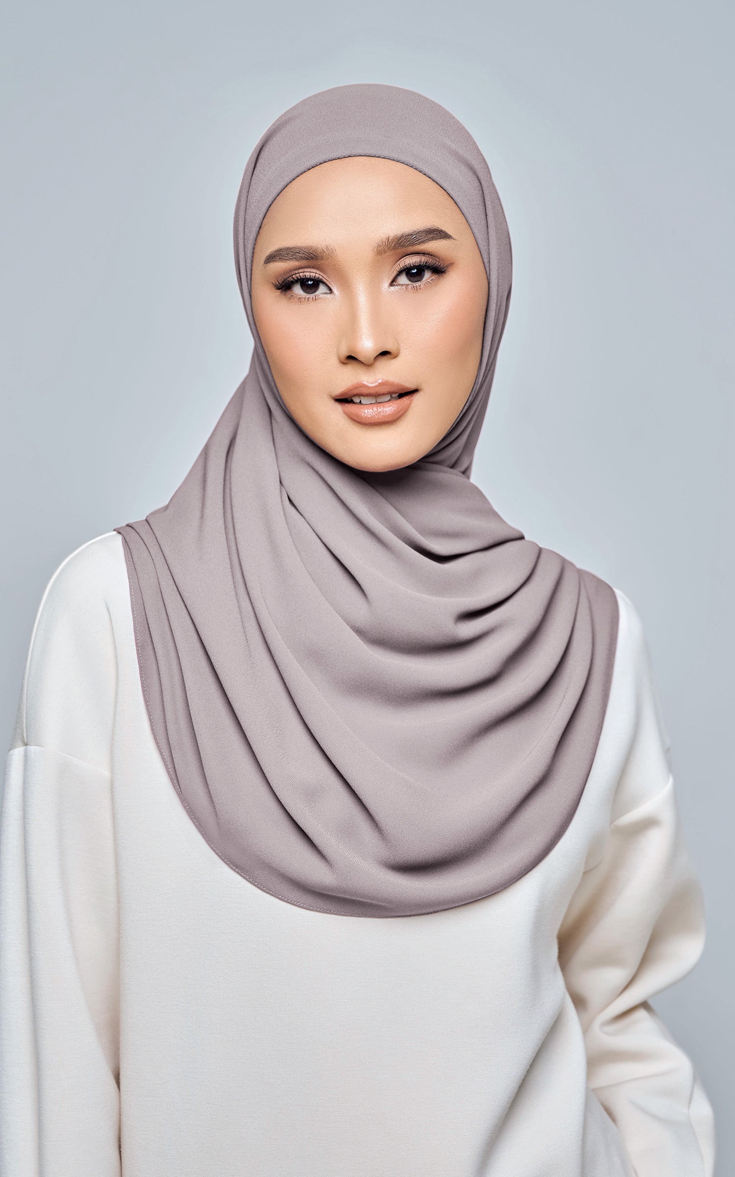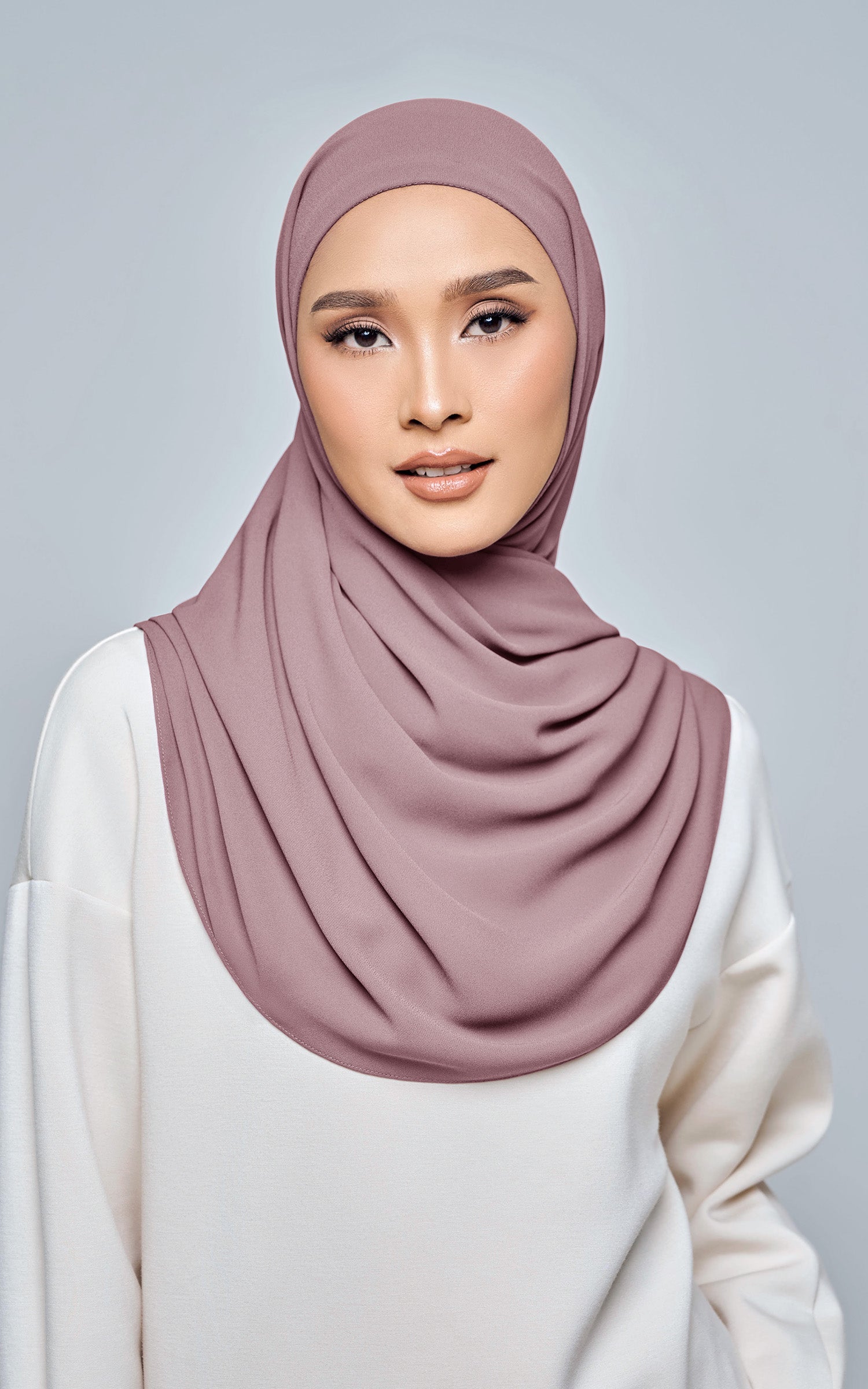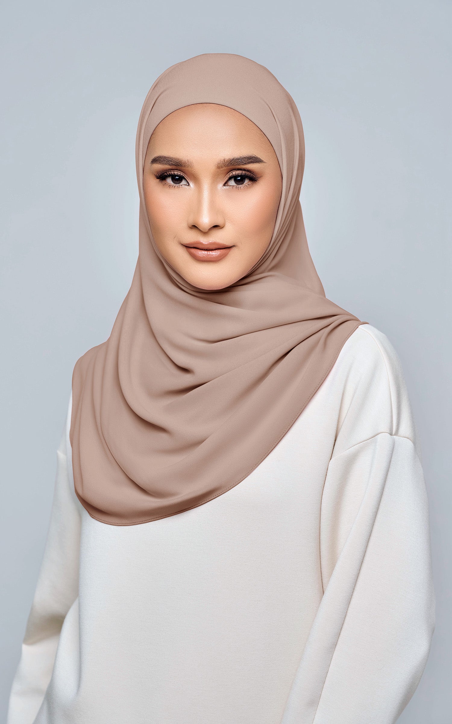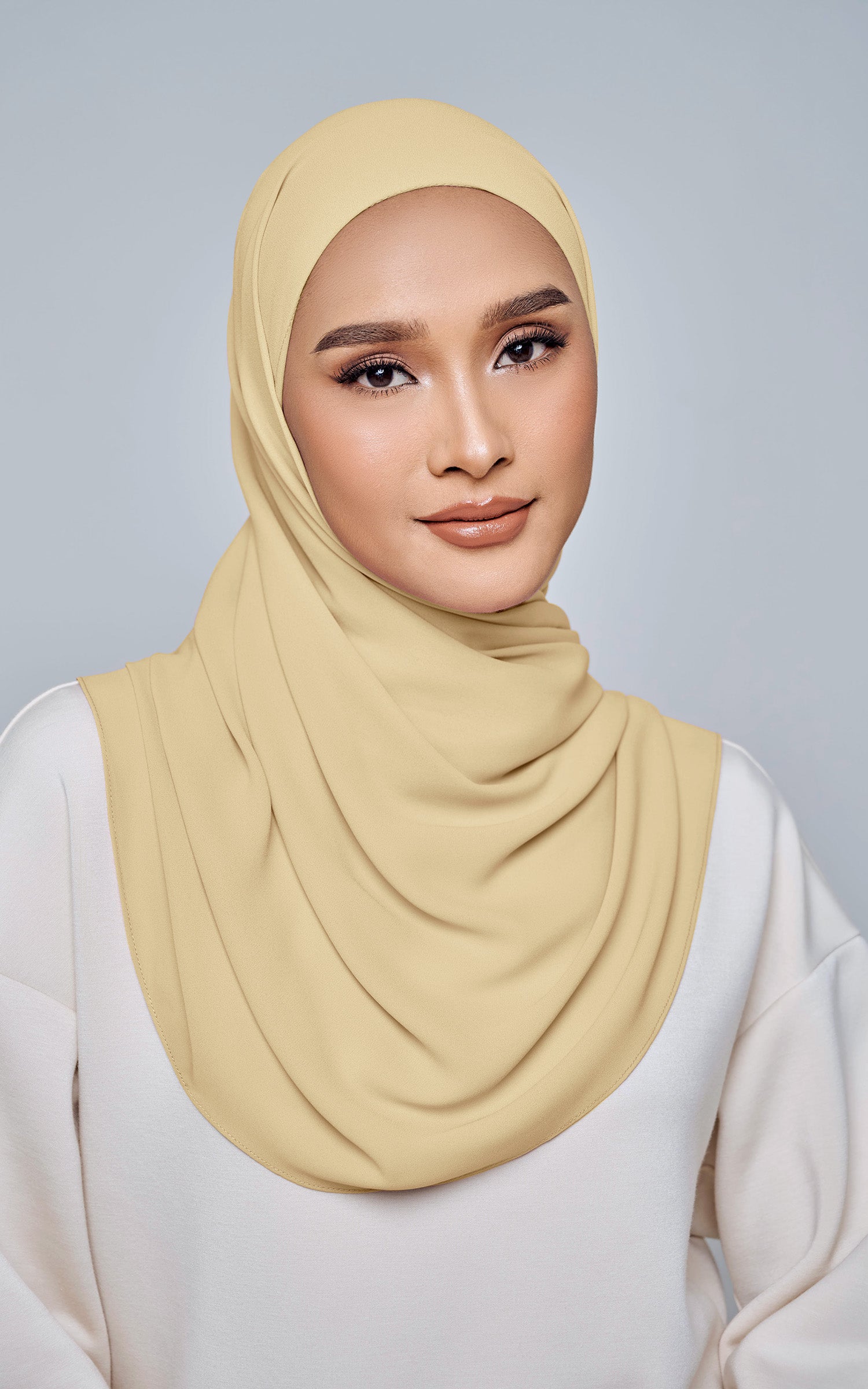 Starla is your go-to instant hijab that combines elegance and ease. Designed with a half moon shape for better coverage and flow, Starla features an attached inner made from Cotton Viscose, complete with a tie-back and secure band to ensure it stays in place. The hijab is crafted from Original Korean Chiffon, a material known for its lightweight, airy, and breathable properties. Starla’s baby seam stitching provides a refined finish, while the adjustable styling options allow you to wear it neatly, highlighting your face beautifully. Choose from two options: with a chin strap for added security or without for a more relaxed fit. This instant hijab is quick and easy to style, perfect for busy women who want to look fashionable effortlessly.