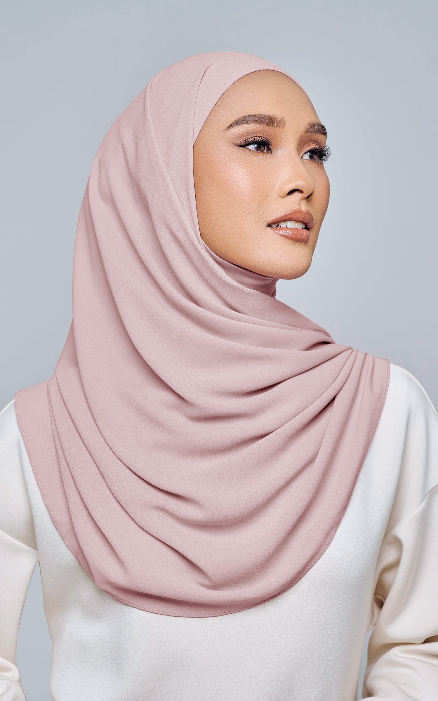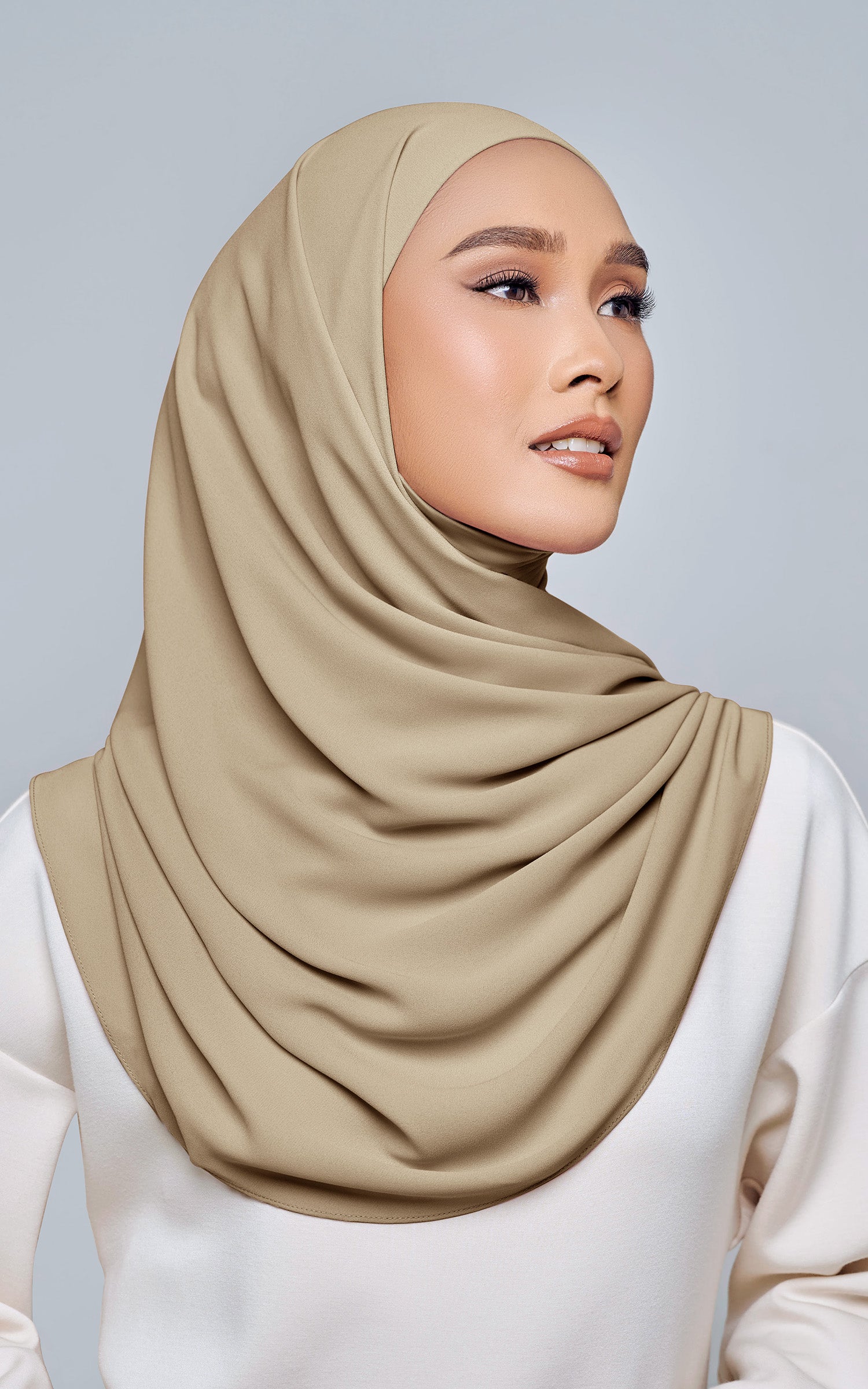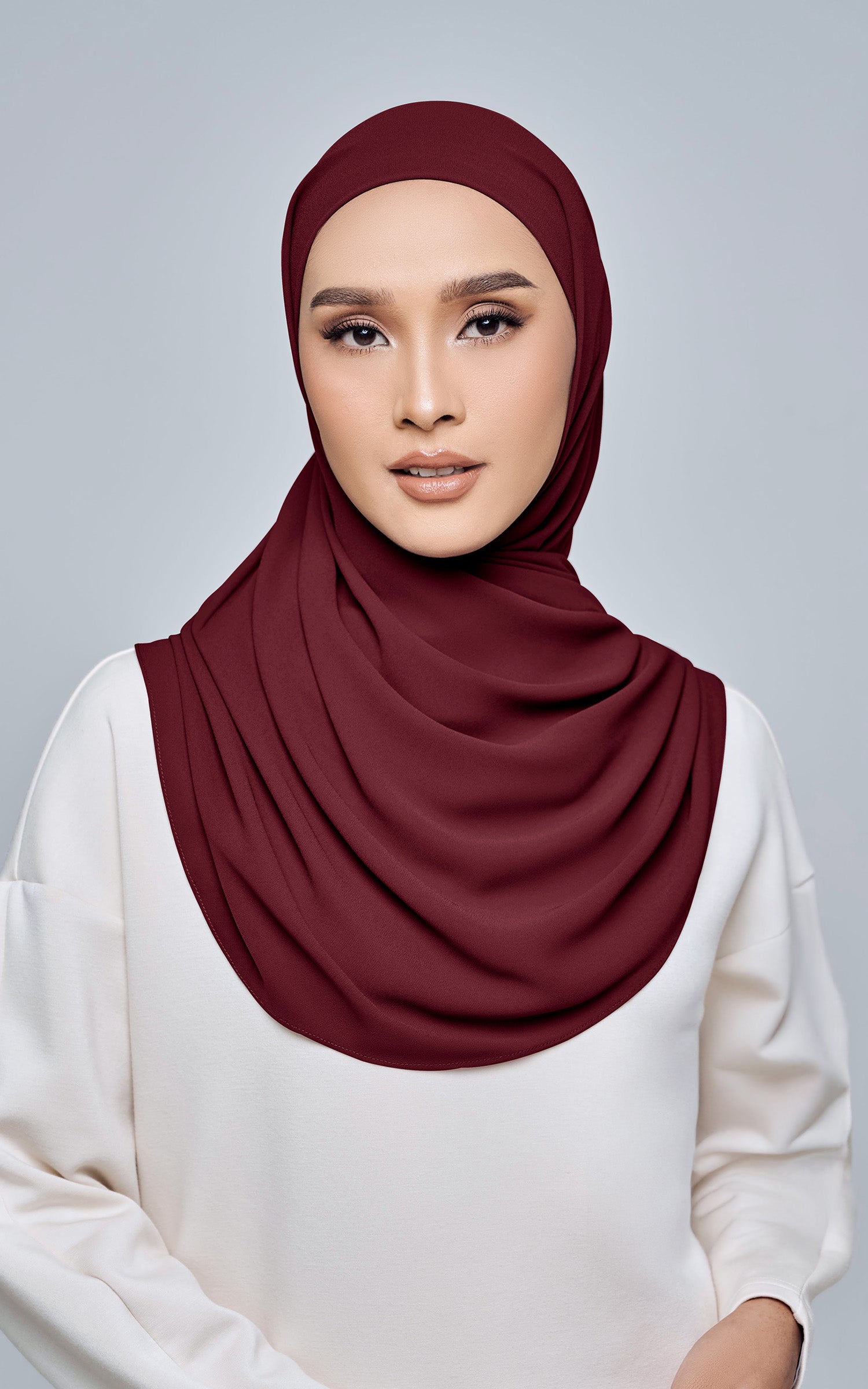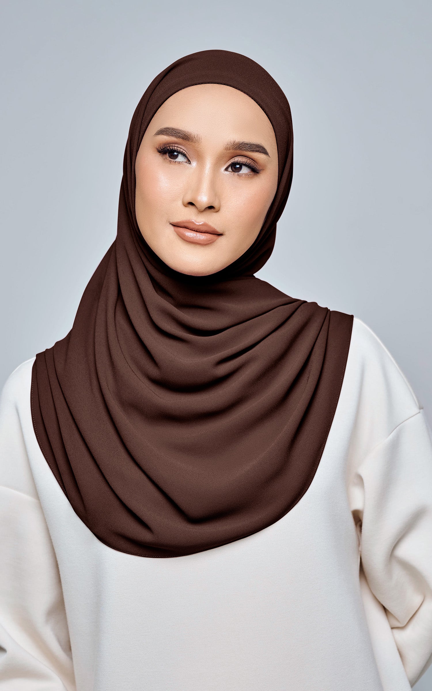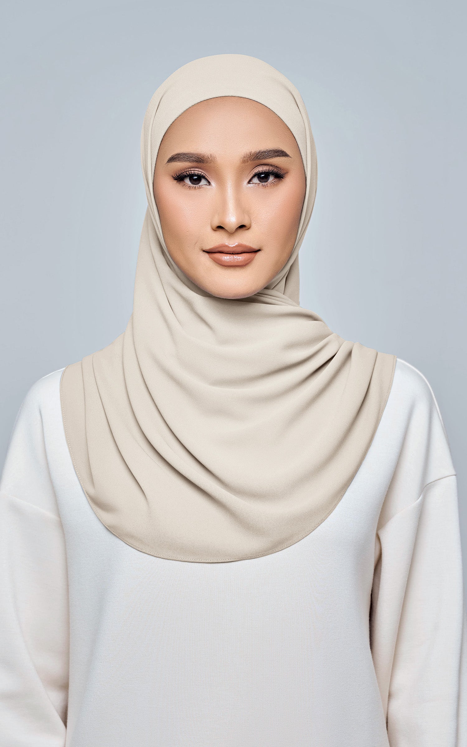 Starla is your go-to instant hijab that combines elegance and ease. Designed with a half moon shape for better coverage and flow, Starla features an attached inner made from Cotton Viscose, complete with a tie-back and secure band to ensure it stays in place. The hijab is crafted from Original Korean Chiffon, a material known for its lightweight, airy, and breathable properties. Starla’s baby seam stitching provides a refined finish, while the adjustable styling options allow you to wear it neatly, highlighting your face beautifully. Choose from two options: with a chin strap for added security or without for a more relaxed fit. This instant hijab is quick and easy to style, perfect for busy women who want to look fashionable effortlessly.