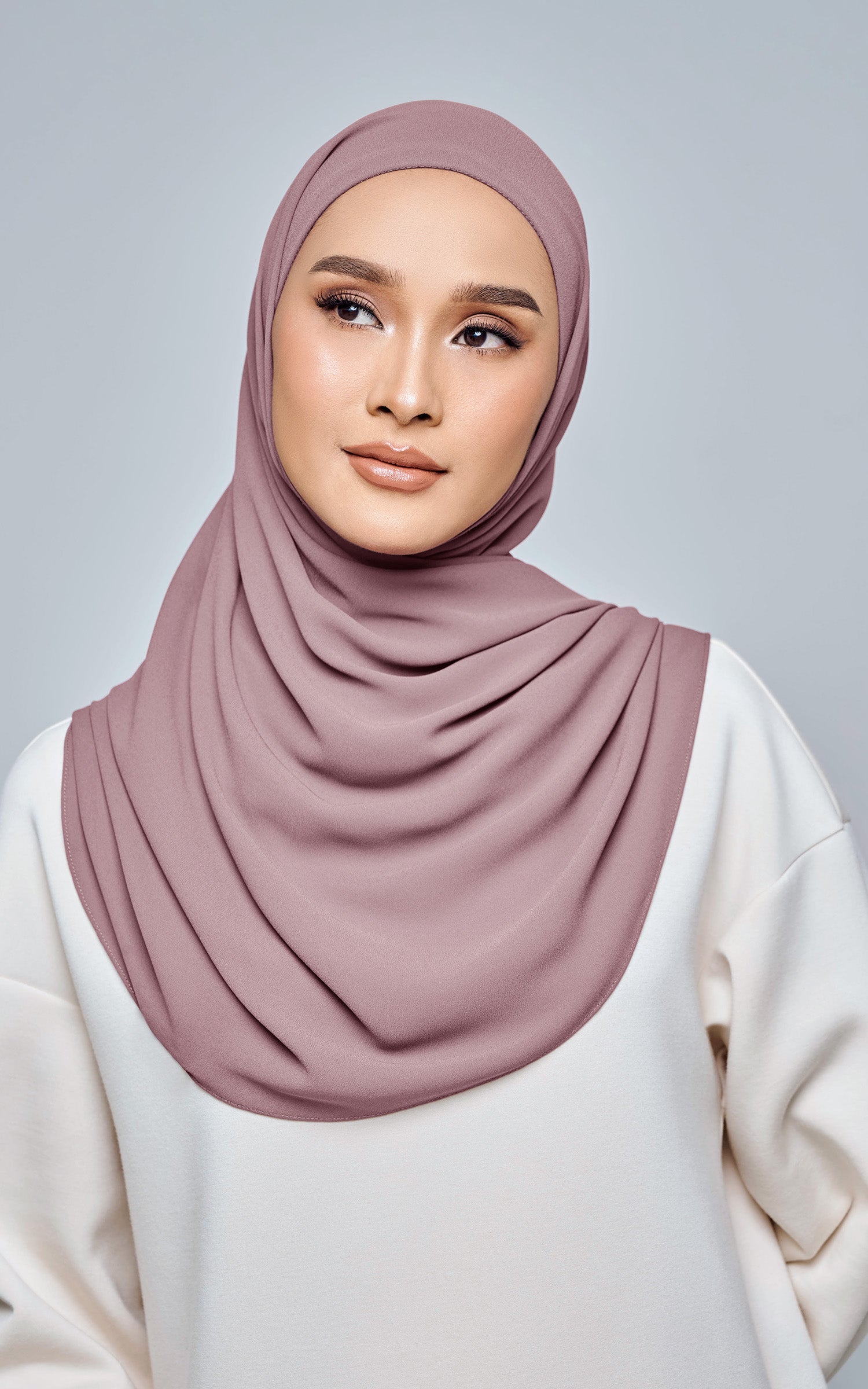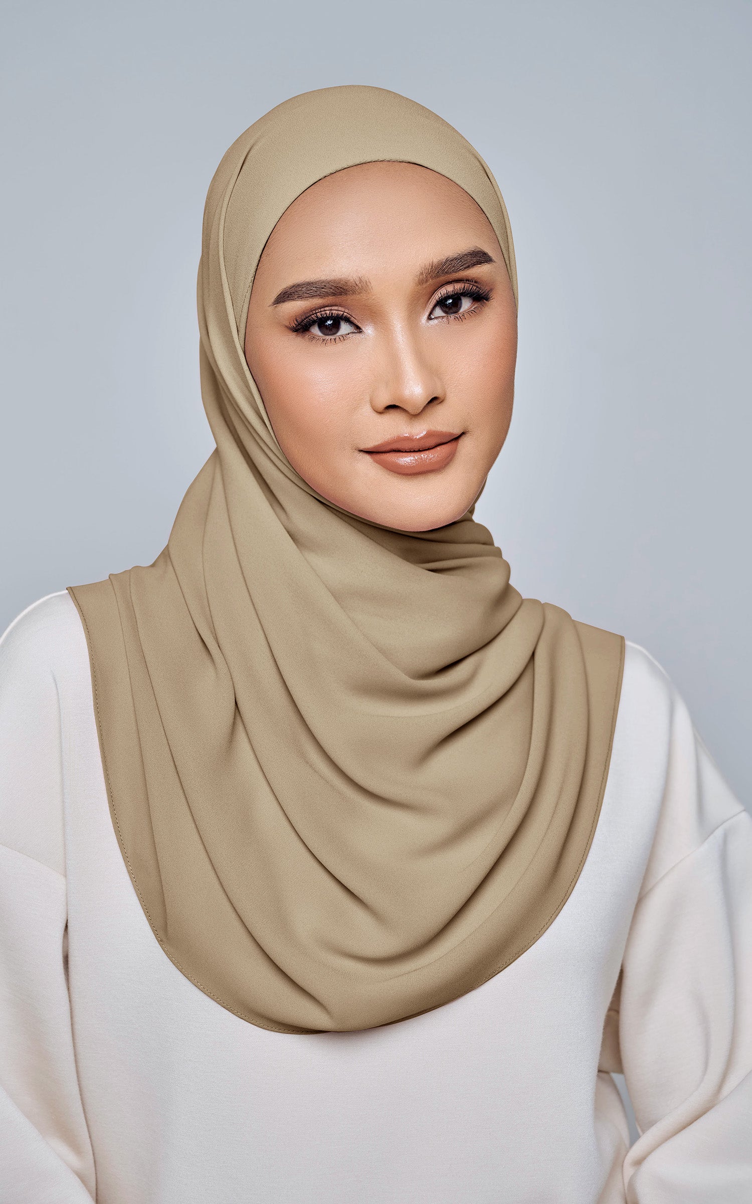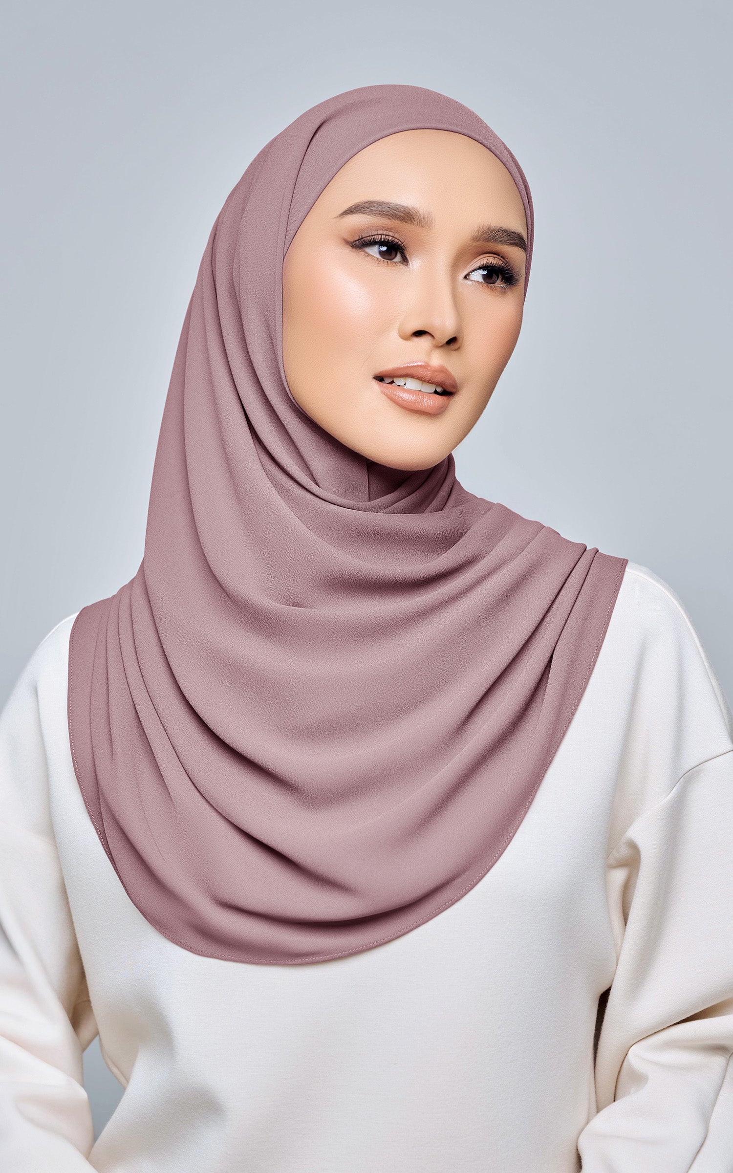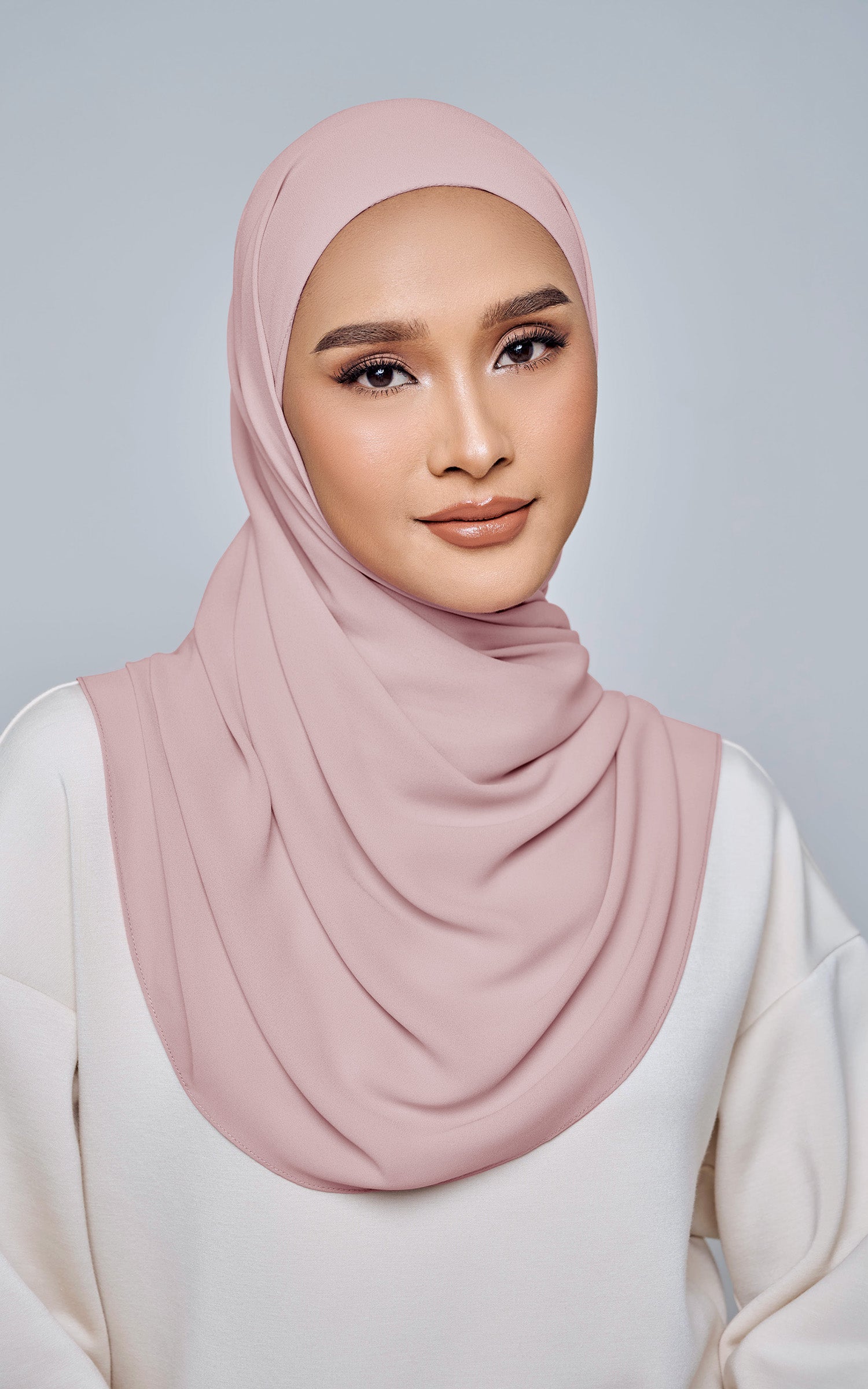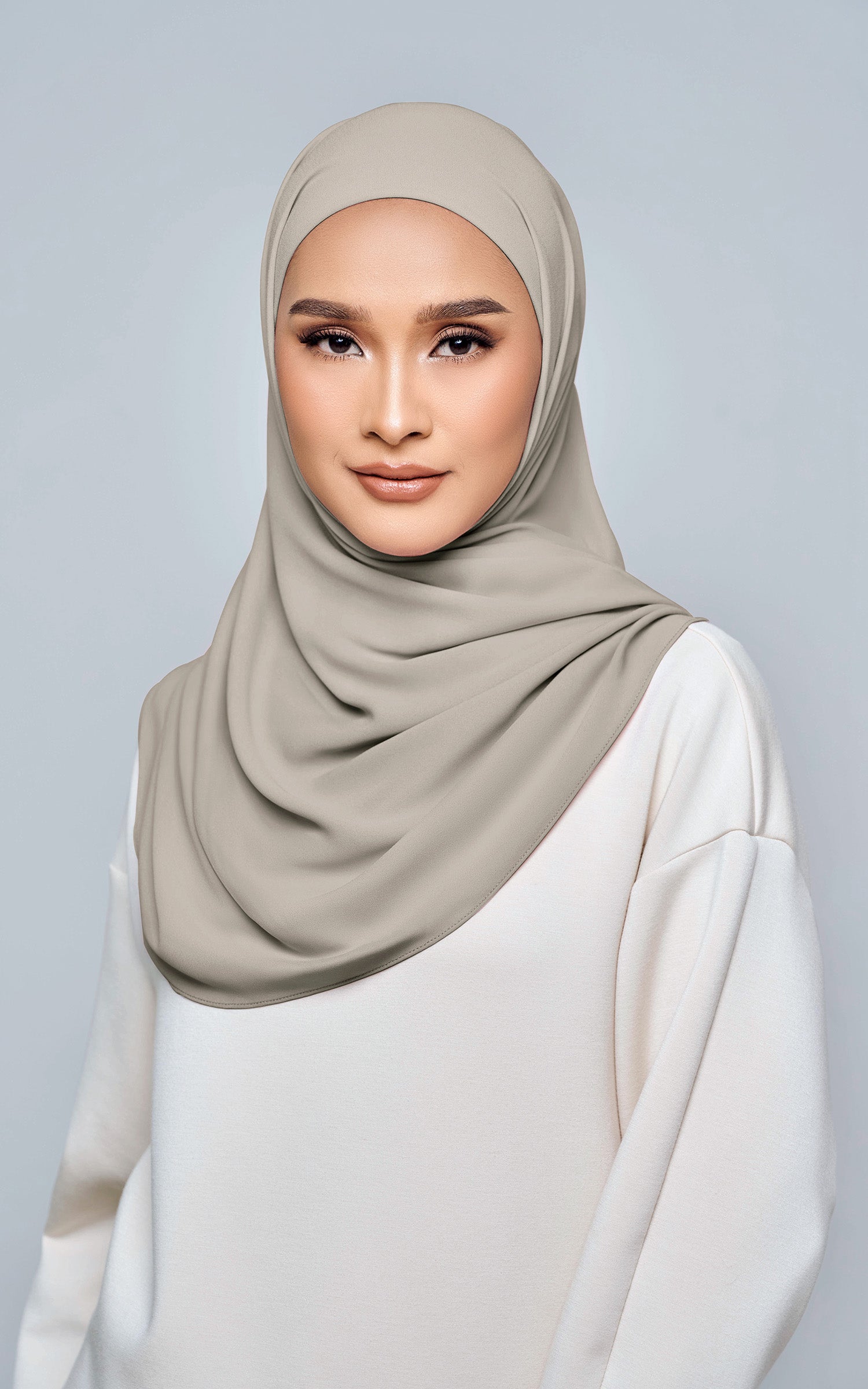 Starla is your go-to instant hijab that combines elegance and ease. Designed with a half moon shape for better coverage and flow, Starla features an attached inner made from Cotton Viscose, complete with a tie-back and secure band to ensure it stays in place. The hijab is crafted from Original Korean Chiffon, a material known for its lightweight, airy, and breathable properties. Starla’s baby seam stitching provides a refined finish, while the adjustable styling options allow you to wear it neatly, highlighting your face beautifully. Choose from two options: with a chin strap for added security or without for a more relaxed fit. This instant hijab is quick and easy to style, perfect for busy women who want to look fashionable effortlessly.