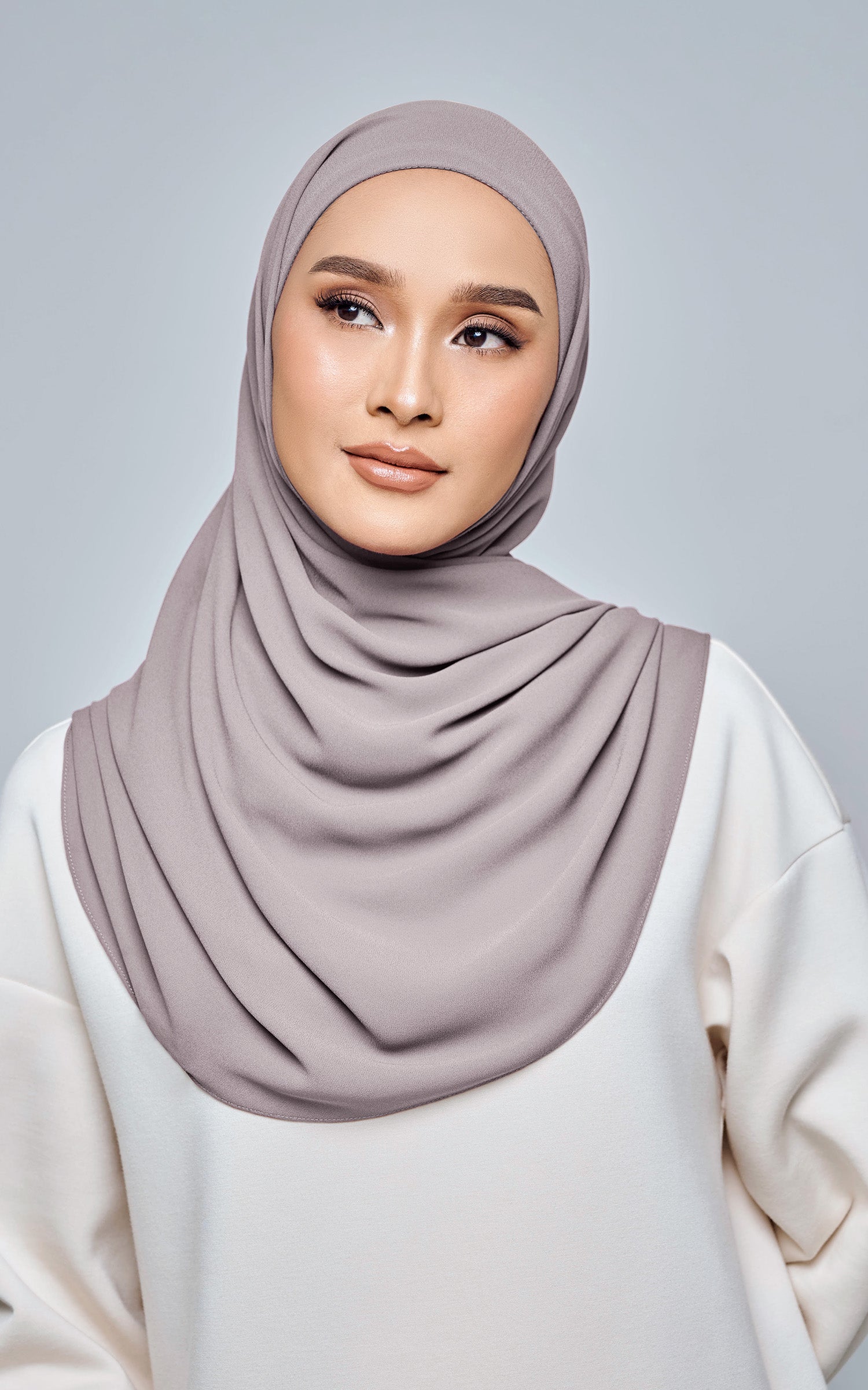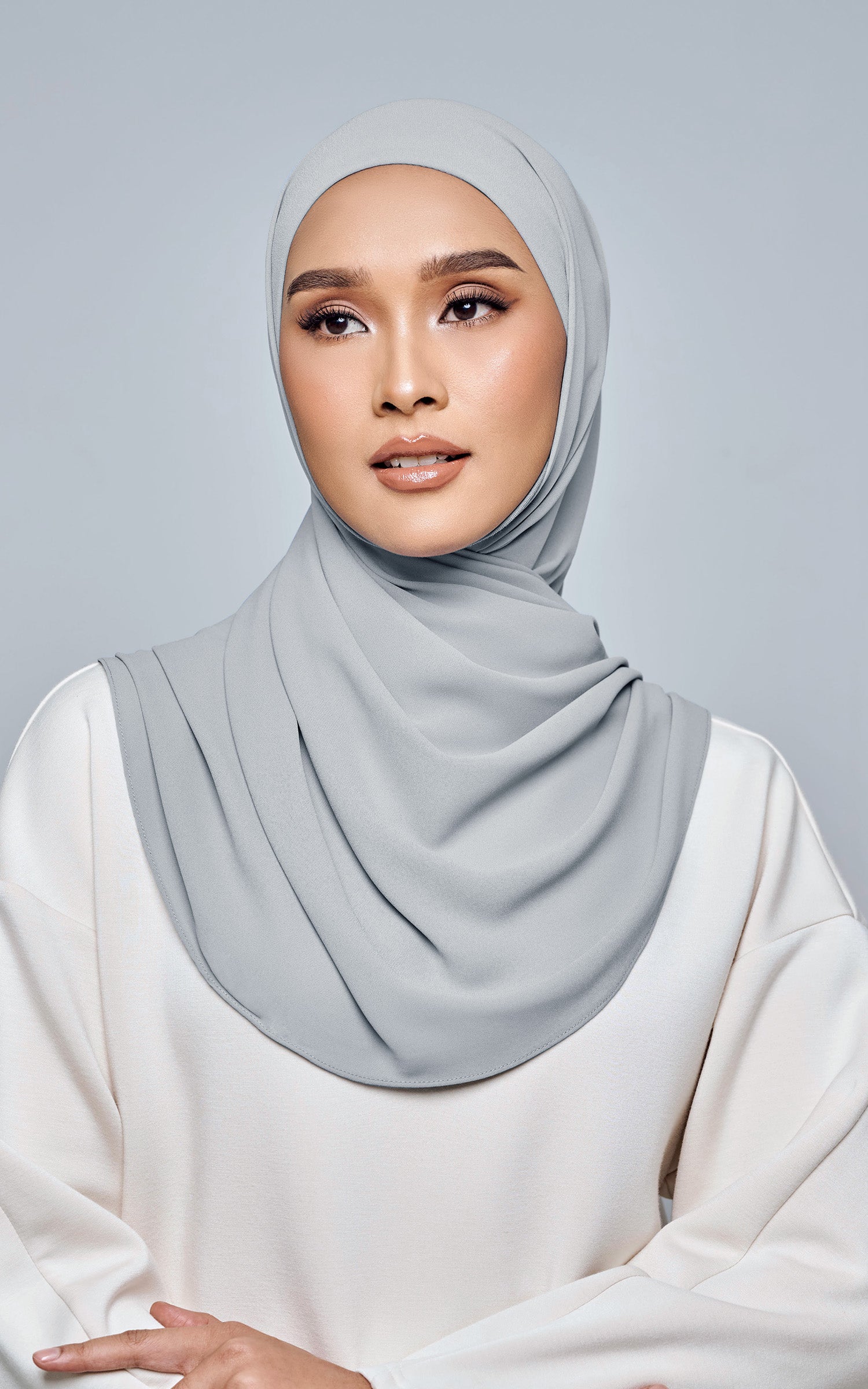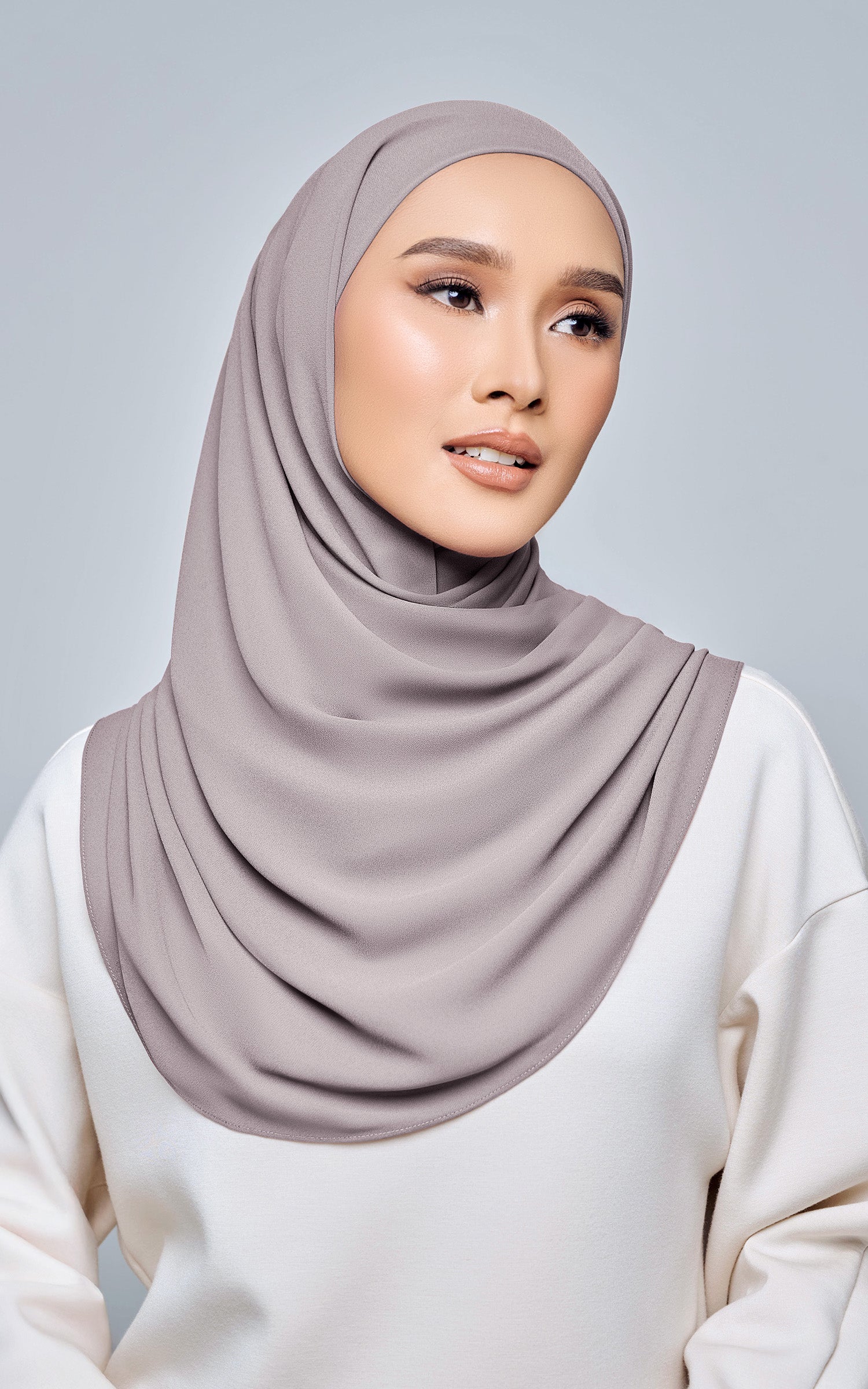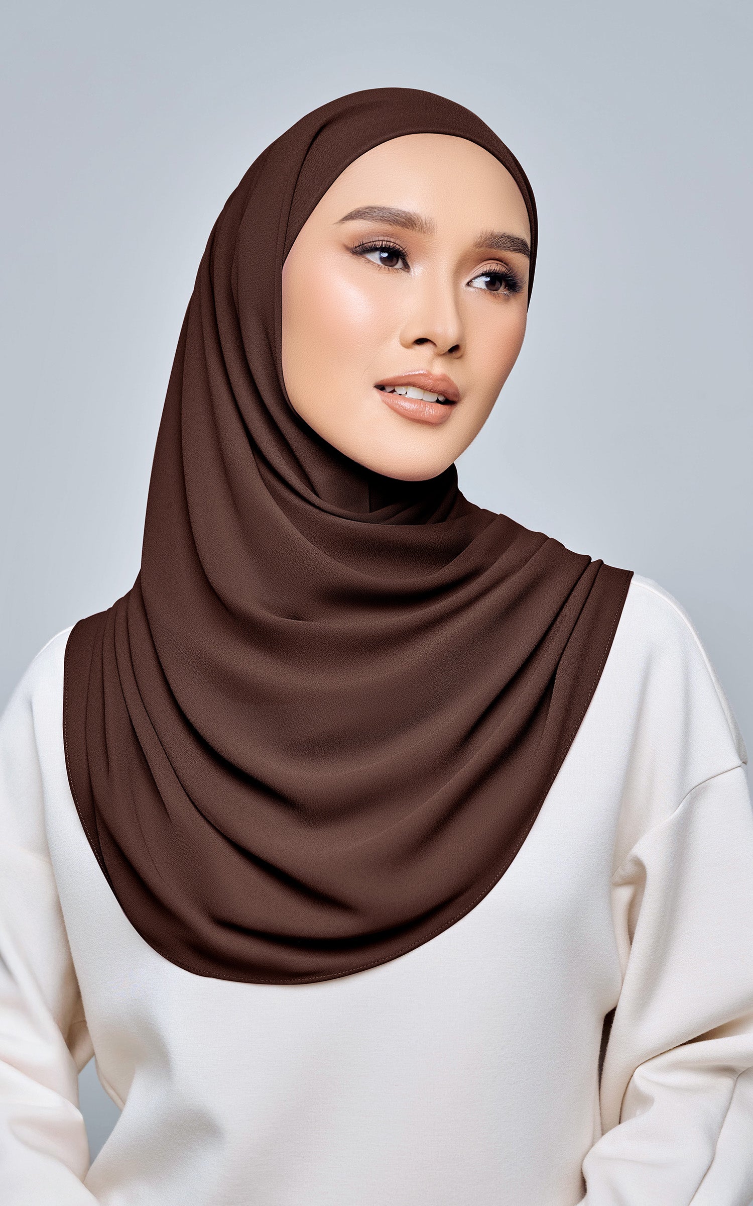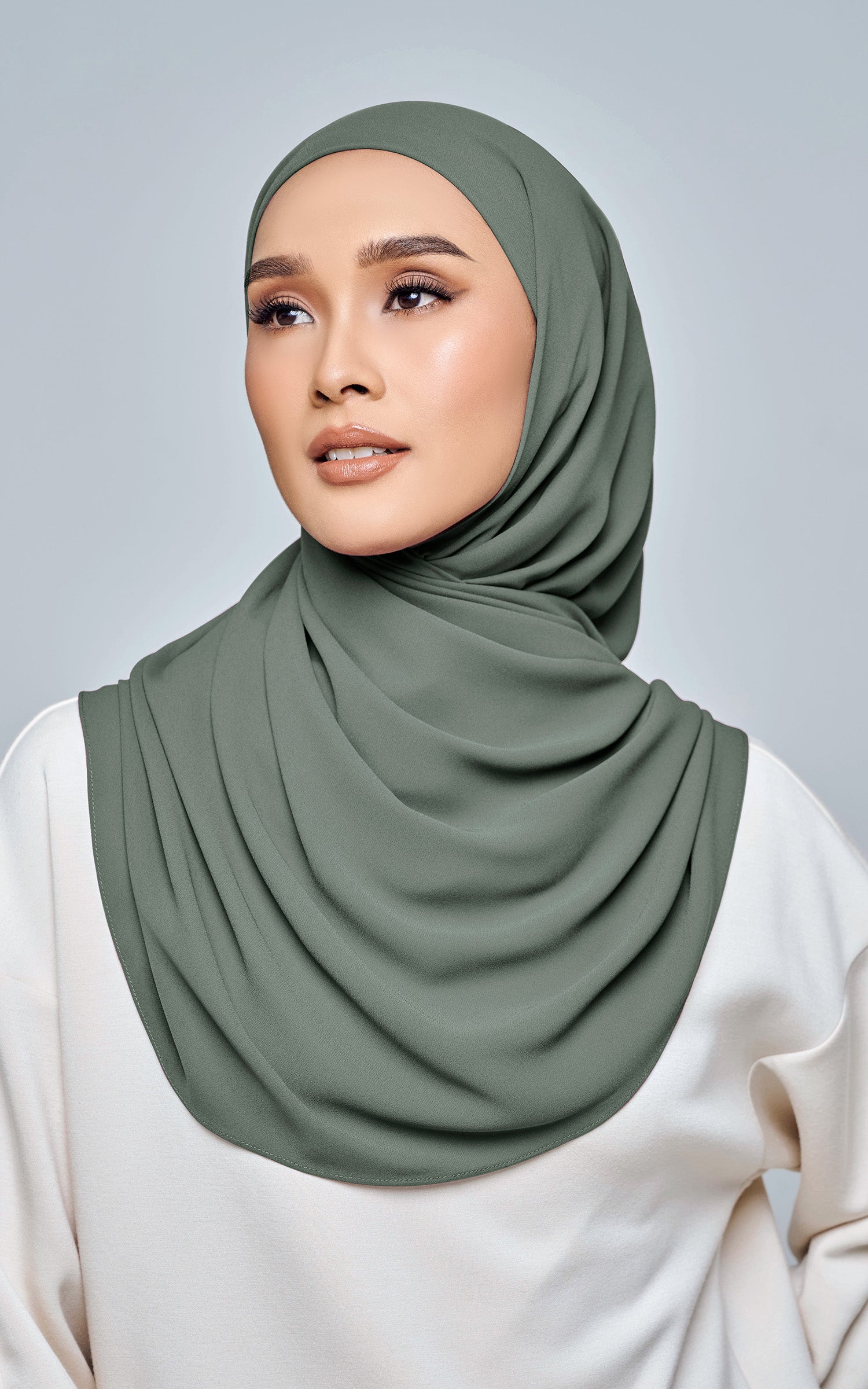Starla is your go-to instant hijab that combines elegance and ease. Designed with a half moon shape for better coverage and flow, Starla features an attached inner made from Cotton Viscose, complete with a tie-back and secure band to ensure it stays in place. The hijab is crafted from Original Korean Chiffon, a material known for its lightweight, airy, and breathable properties. Starla’s baby seam stitching provides a refined finish, while the adjustable styling options allow you to wear it neatly, highlighting your face beautifully. Choose from two options: with a chin strap for added security or without for a more relaxed fit. This instant hijab is quick and easy to style, perfect for busy women who want to look fashionable effortlessly.