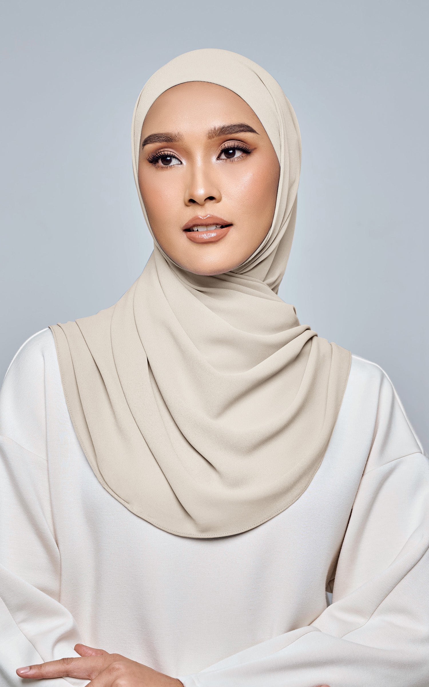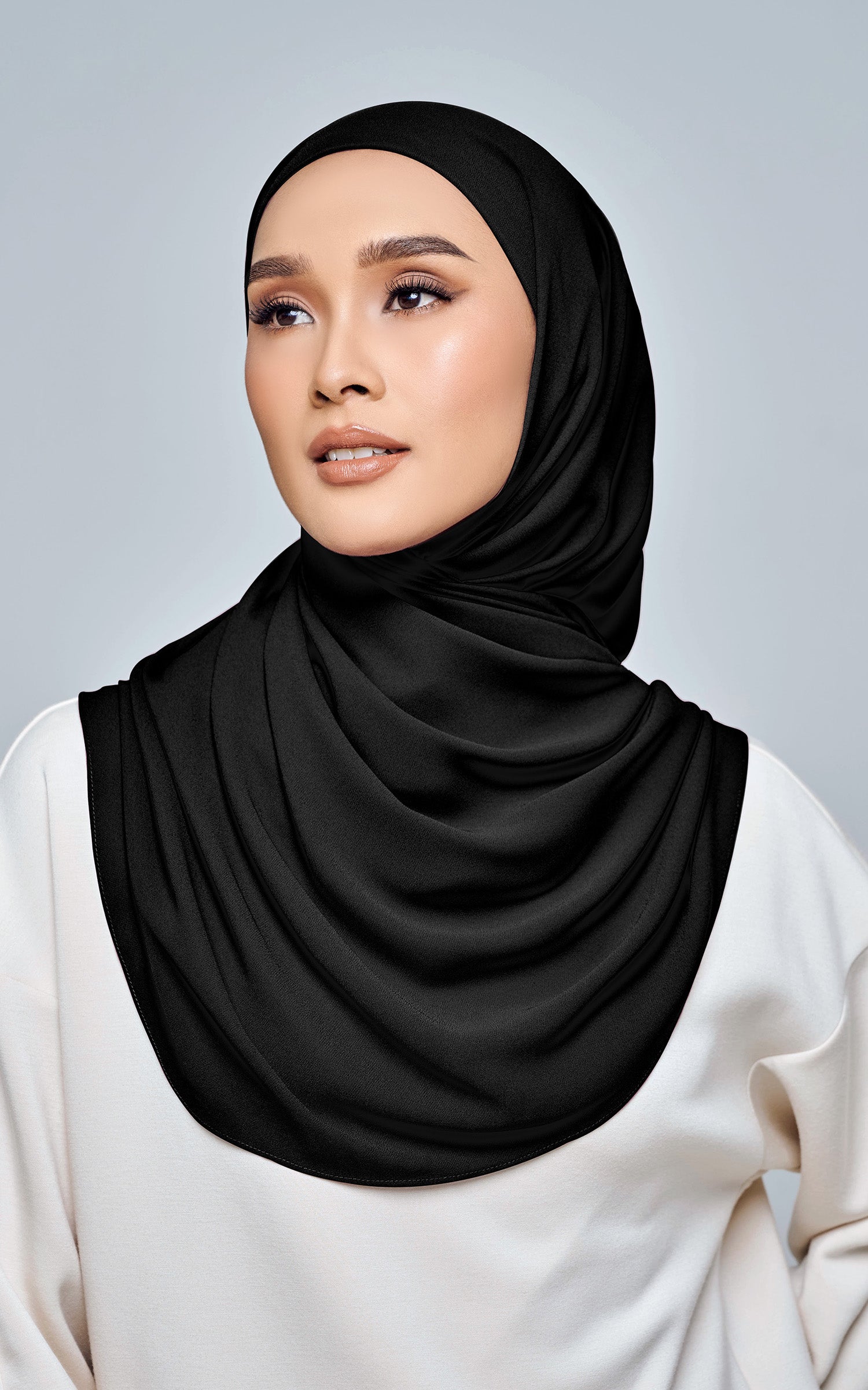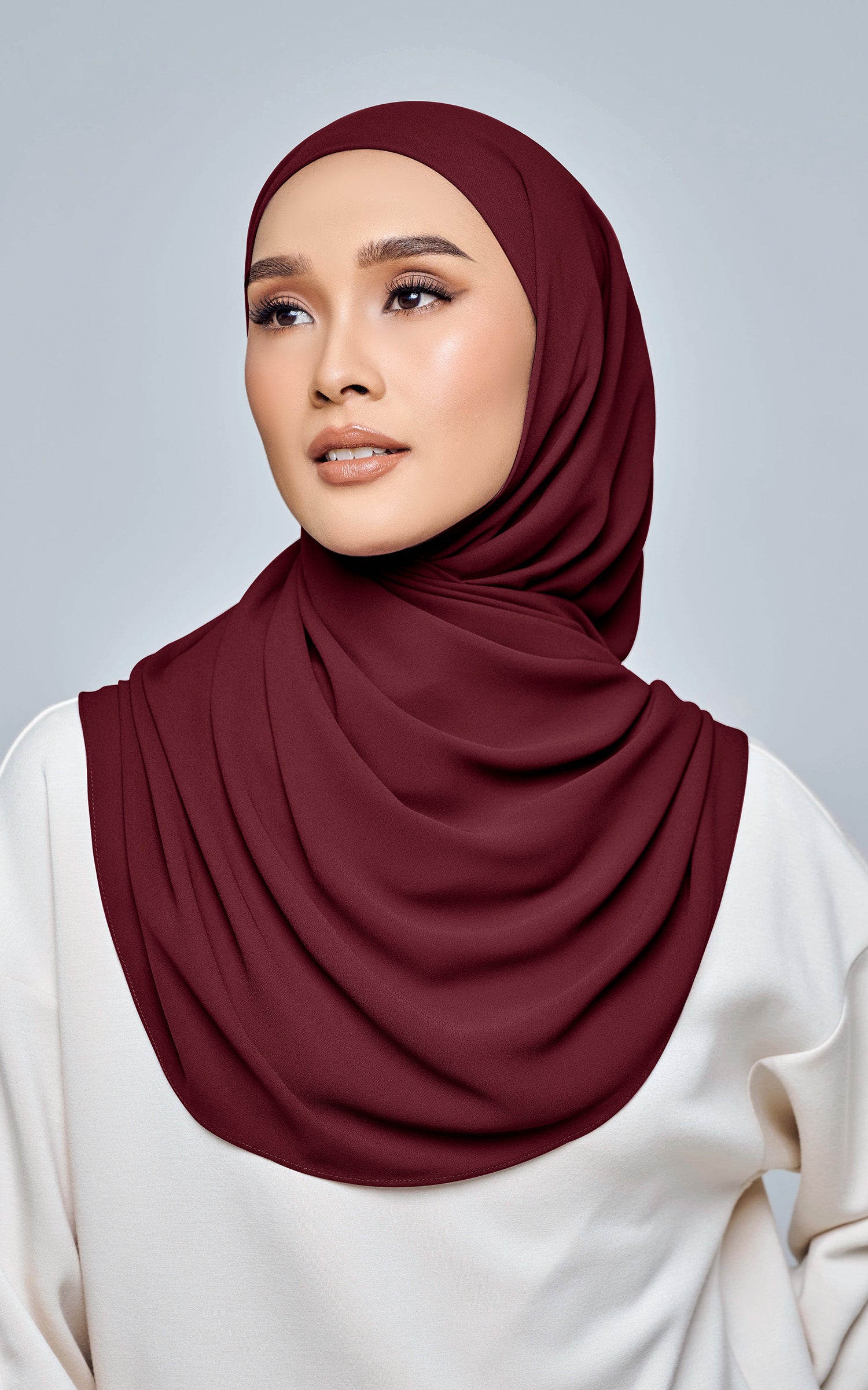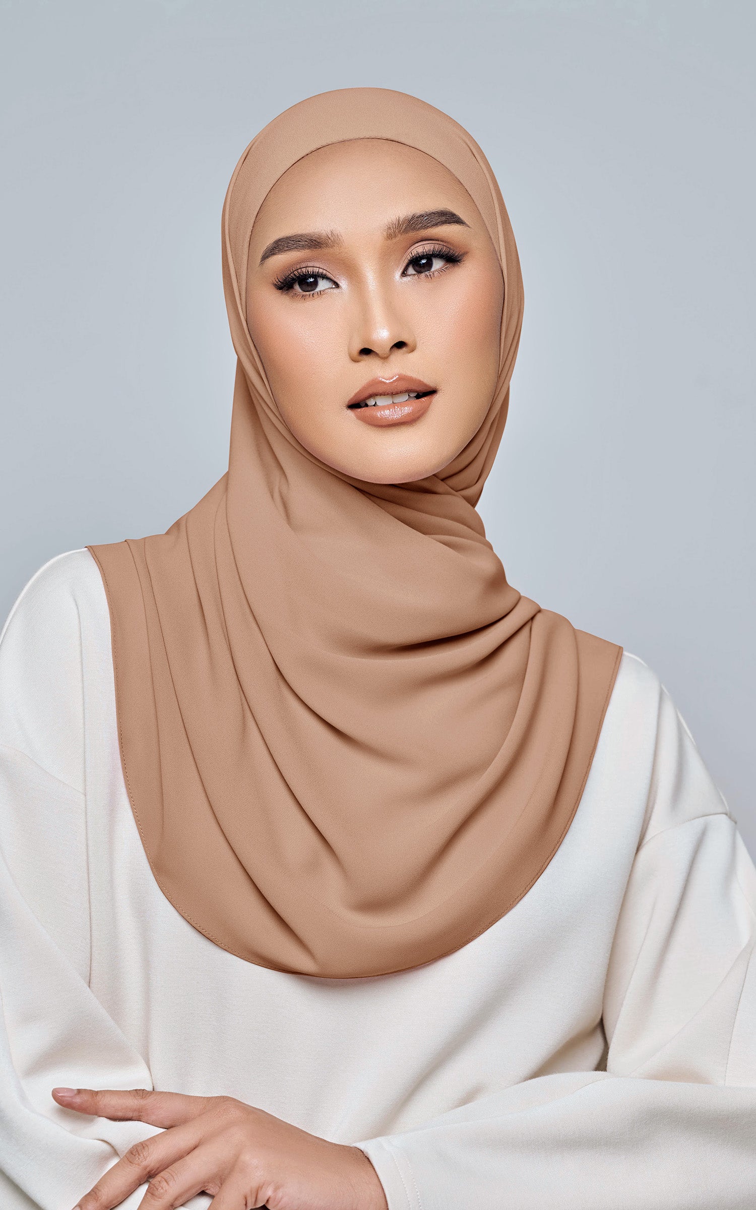 Starla is your go-to instant hijab that combines elegance and ease. Designed with a half moon shape for better coverage and flow, Starla features an attached inner made from Cotton Viscose, complete with a tie-back and secure band to ensure it stays in place. The hijab is crafted from Original Korean Chiffon, a material known for its lightweight, airy, and breathable properties. Starla’s baby seam stitching provides a refined finish, while the adjustable styling options allow you to wear it neatly, highlighting your face beautifully. Choose from two options: with a chin strap for added security or without for a more relaxed fit. This instant hijab is quick and easy to style, perfect for busy women who want to look fashionable effortlessly.