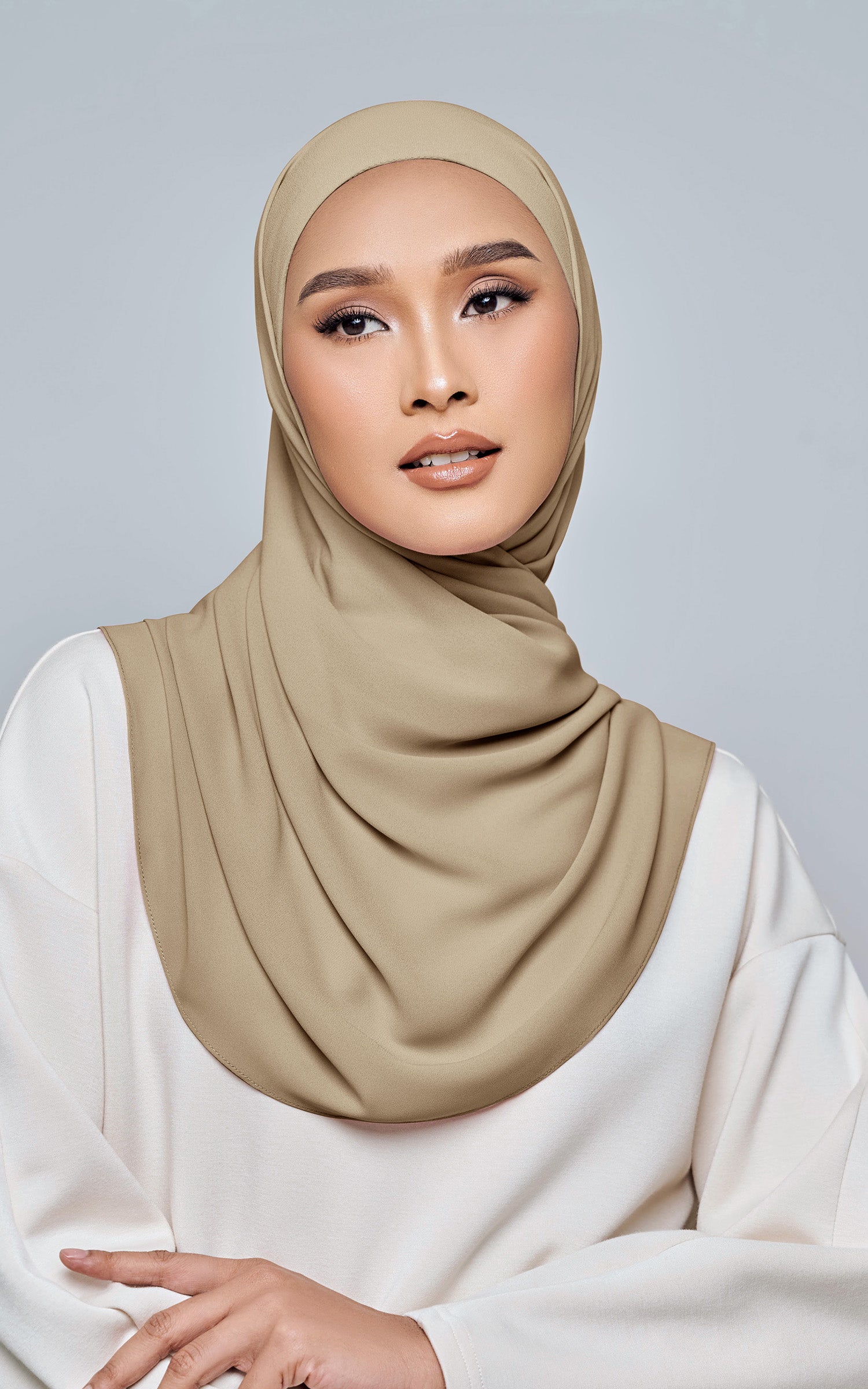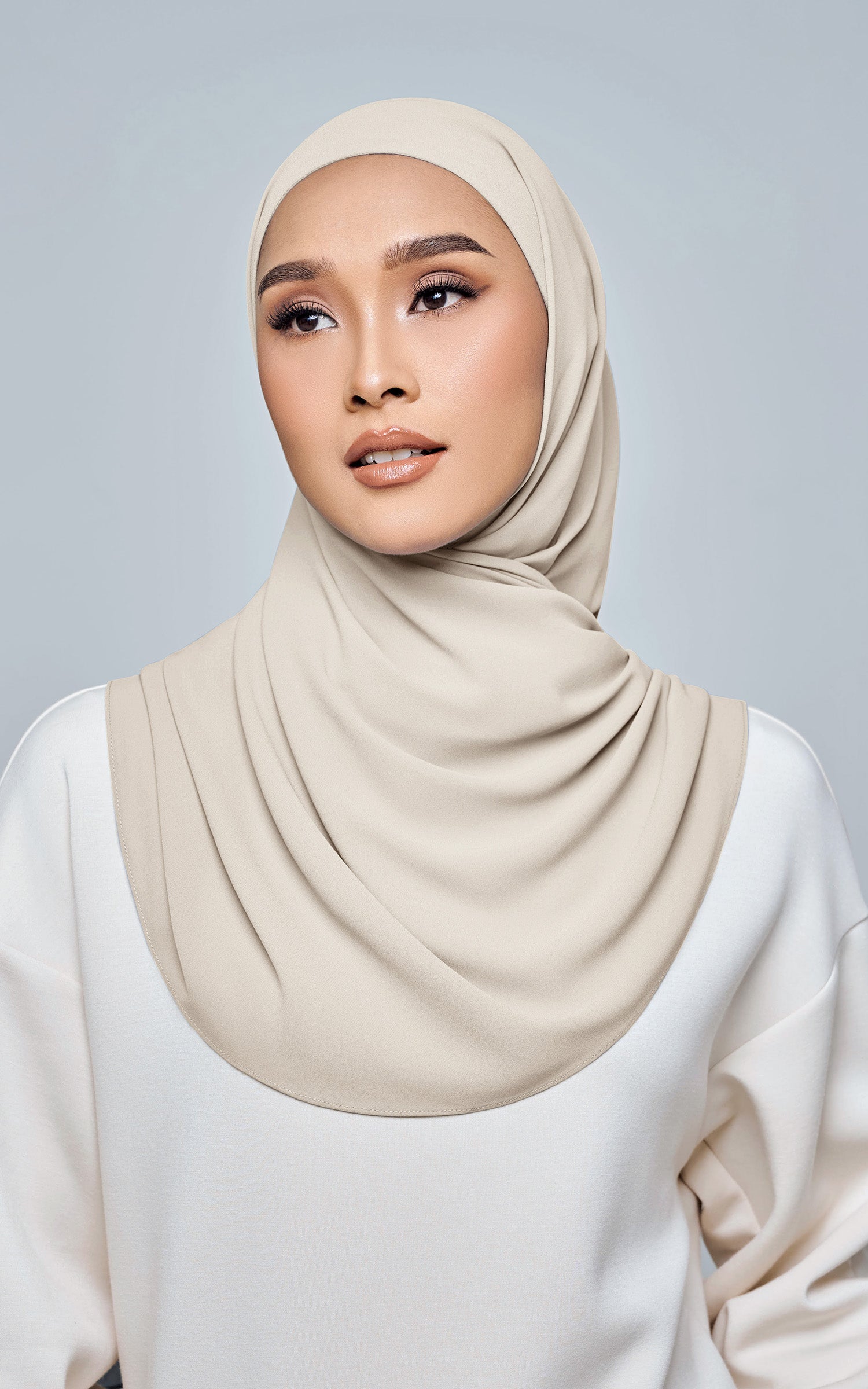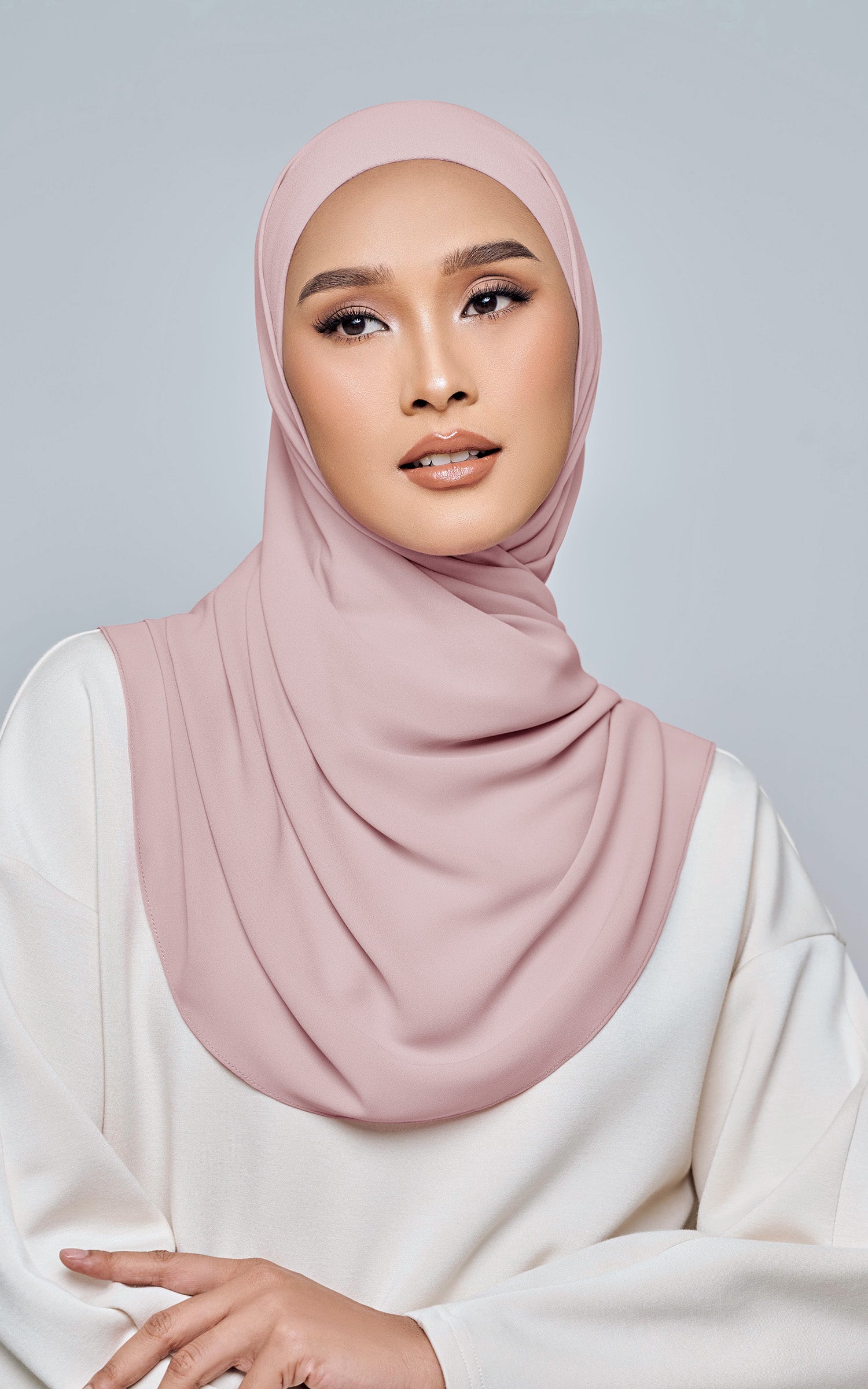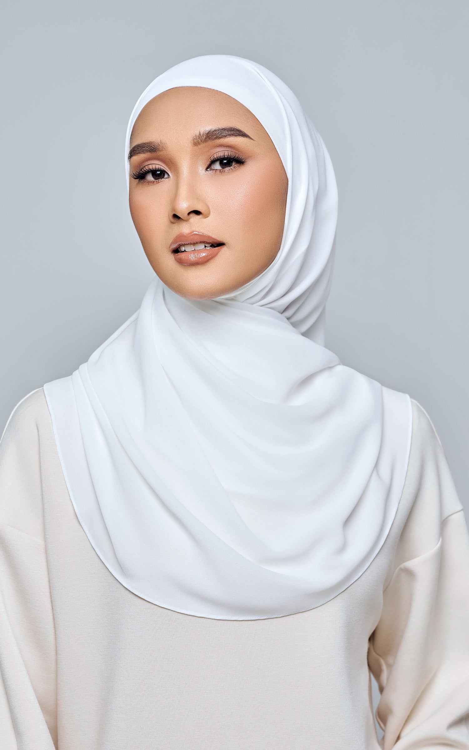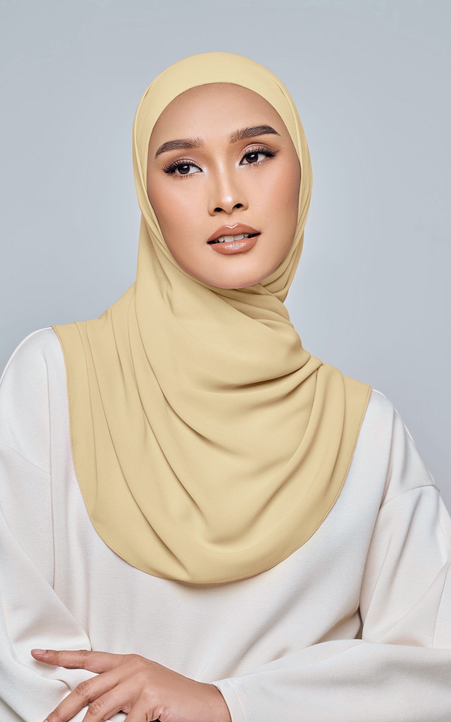 Starla is your go-to instant hijab that combines elegance and ease. Designed with a half moon shape for better coverage and flow, Starla features an attached inner made from Cotton Viscose, complete with a tie-back and secure band to ensure it stays in place. The hijab is crafted from Original Korean Chiffon, a material known for its lightweight, airy, and breathable properties. Starla’s baby seam stitching provides a refined finish, while the adjustable styling options allow you to wear it neatly, highlighting your face beautifully. Choose from two options: with a chin strap for added security or without for a more relaxed fit. This instant hijab is quick and easy to style, perfect for busy women who want to look fashionable effortlessly.