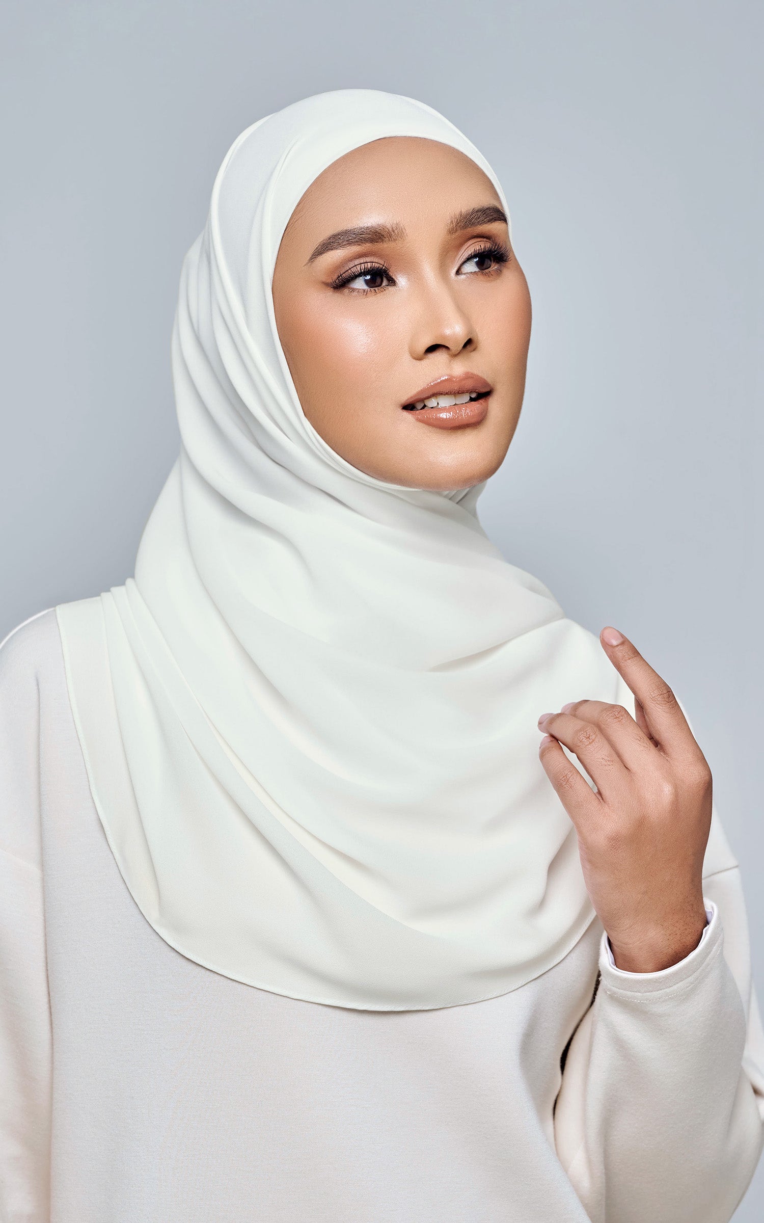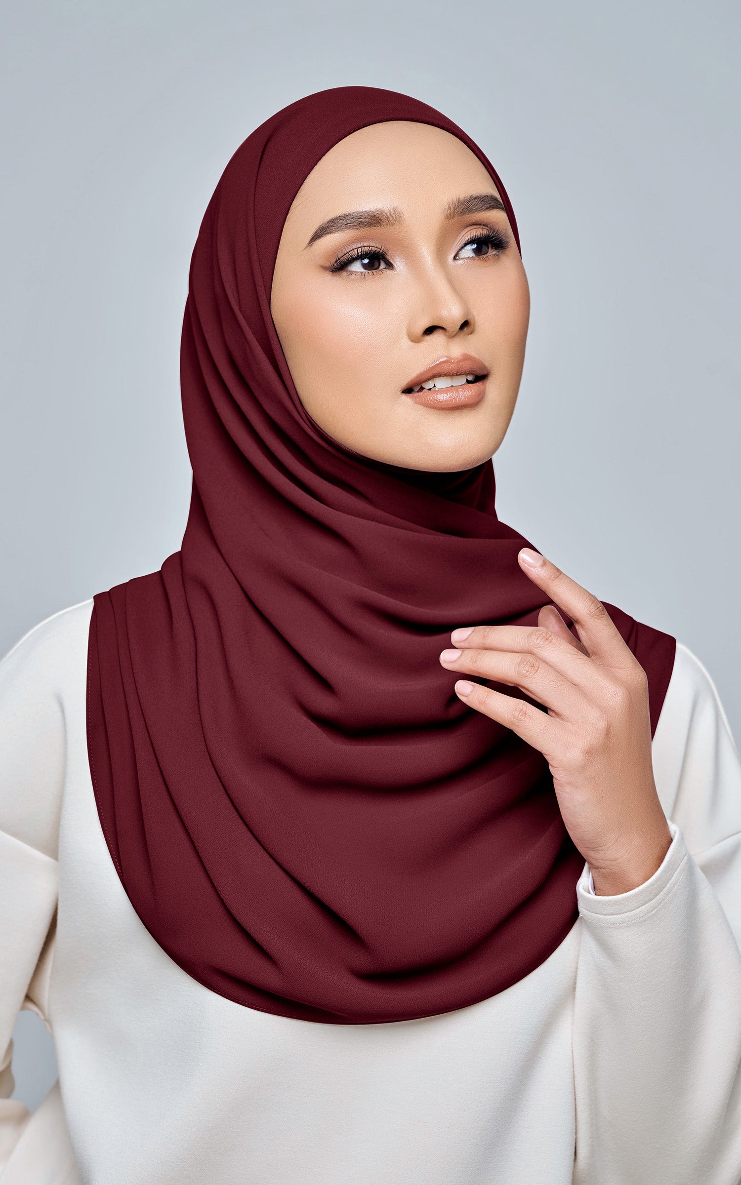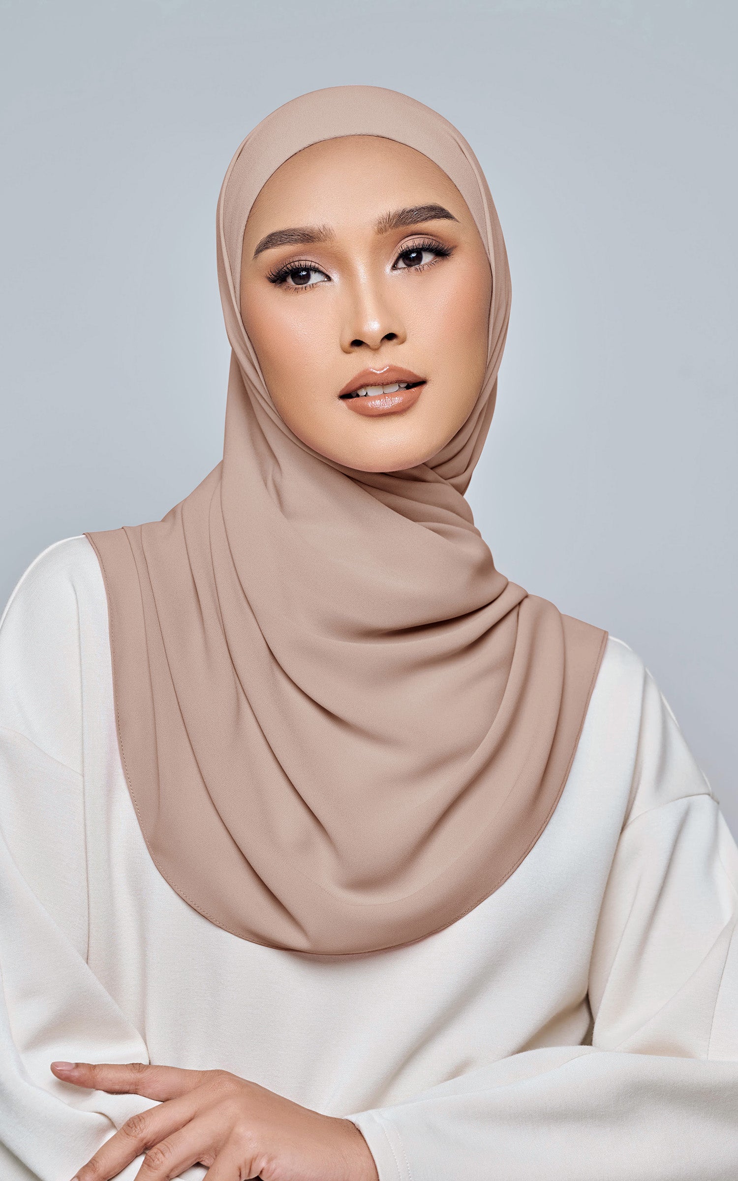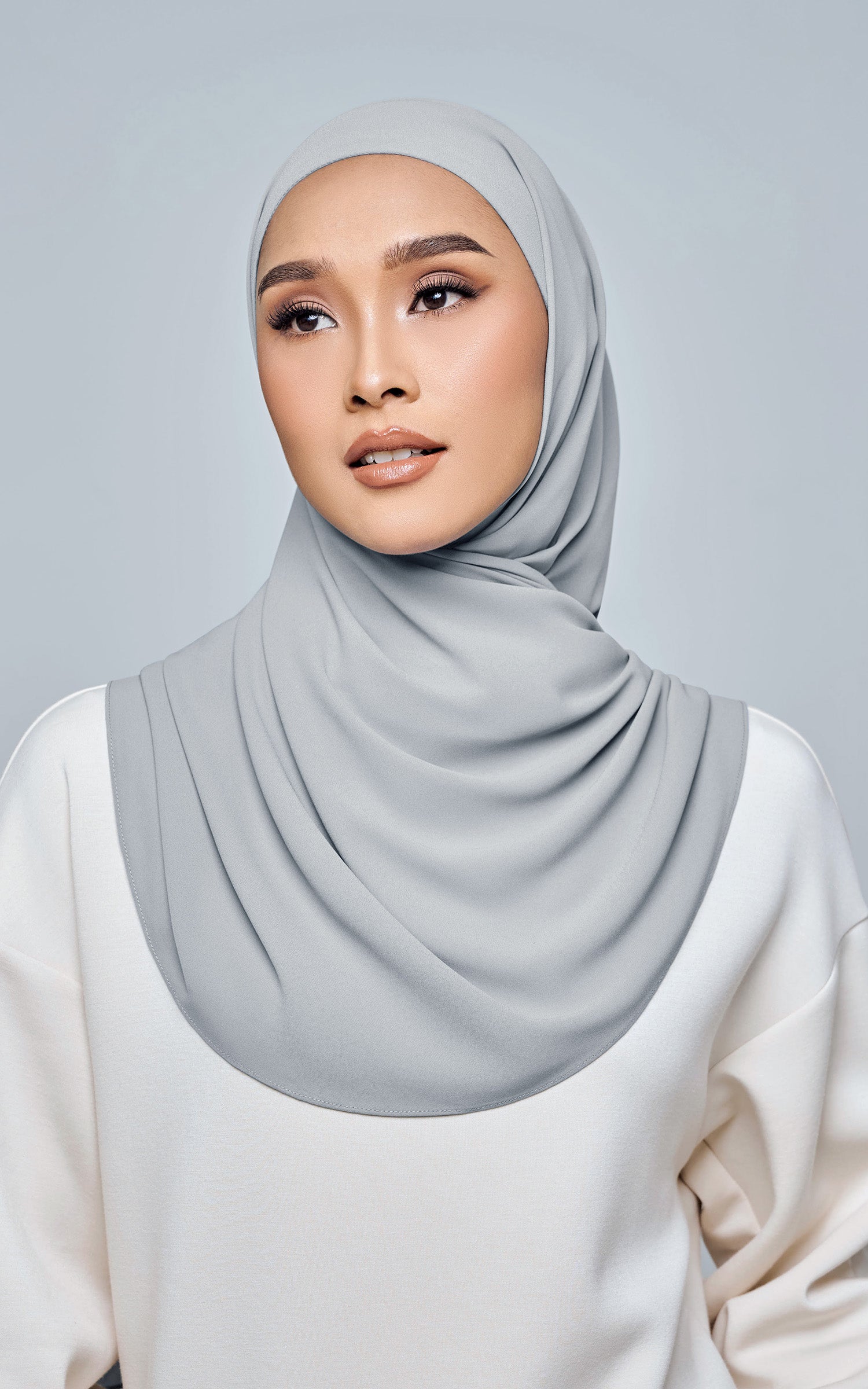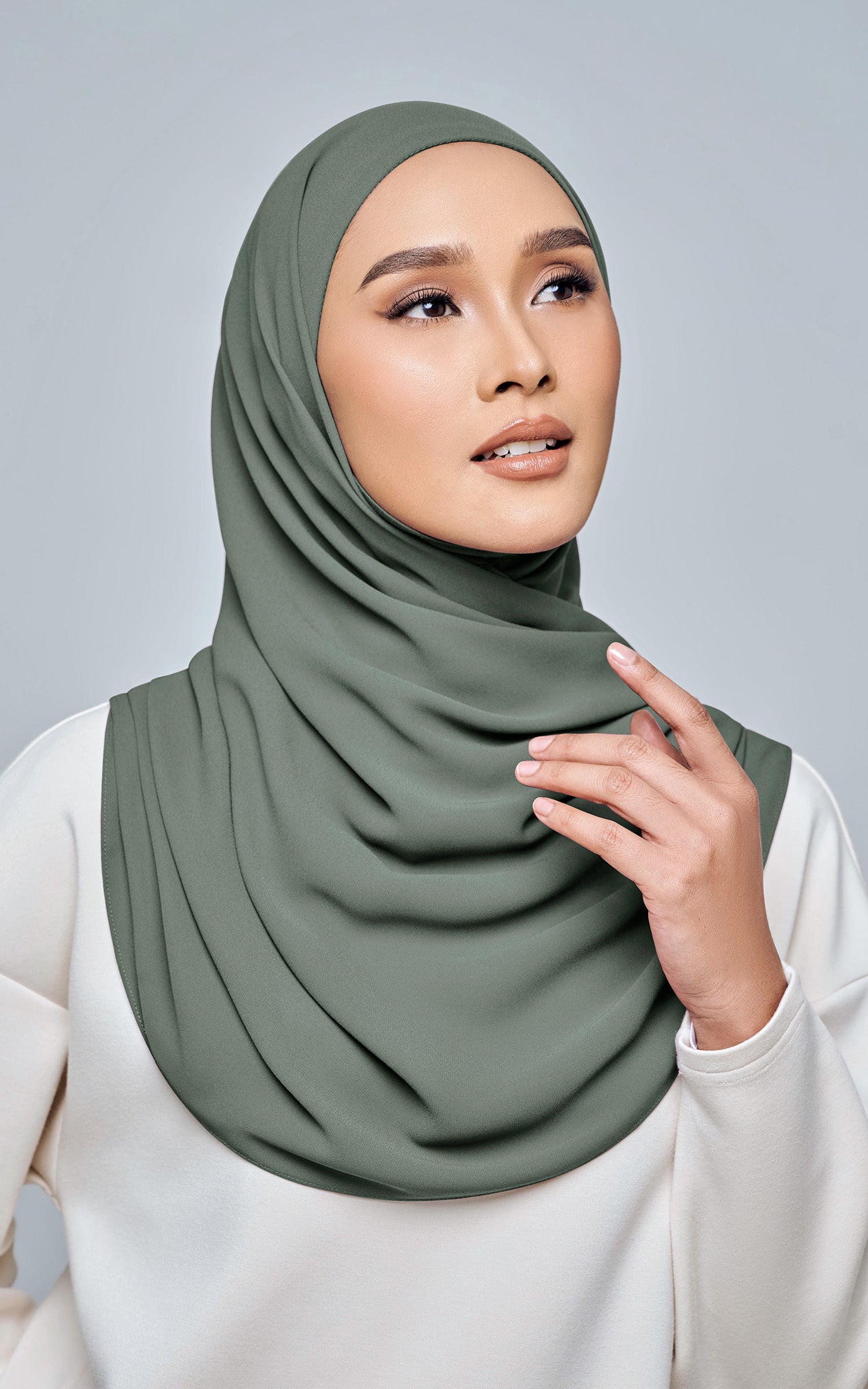 Starla is your go-to instant hijab that combines elegance and ease. Designed with a half moon shape for better coverage and flow, Starla features an attached inner made from Cotton Viscose, complete with a tie-back and secure band to ensure it stays in place. The hijab is crafted from Original Korean Chiffon, a material known for its lightweight, airy, and breathable properties. Starla’s baby seam stitching provides a refined finish, while the adjustable styling options allow you to wear it neatly, highlighting your face beautifully. Choose from two options: with a chin strap for added security or without for a more relaxed fit. This instant hijab is quick and easy to style, perfect for busy women who want to look fashionable effortlessly.