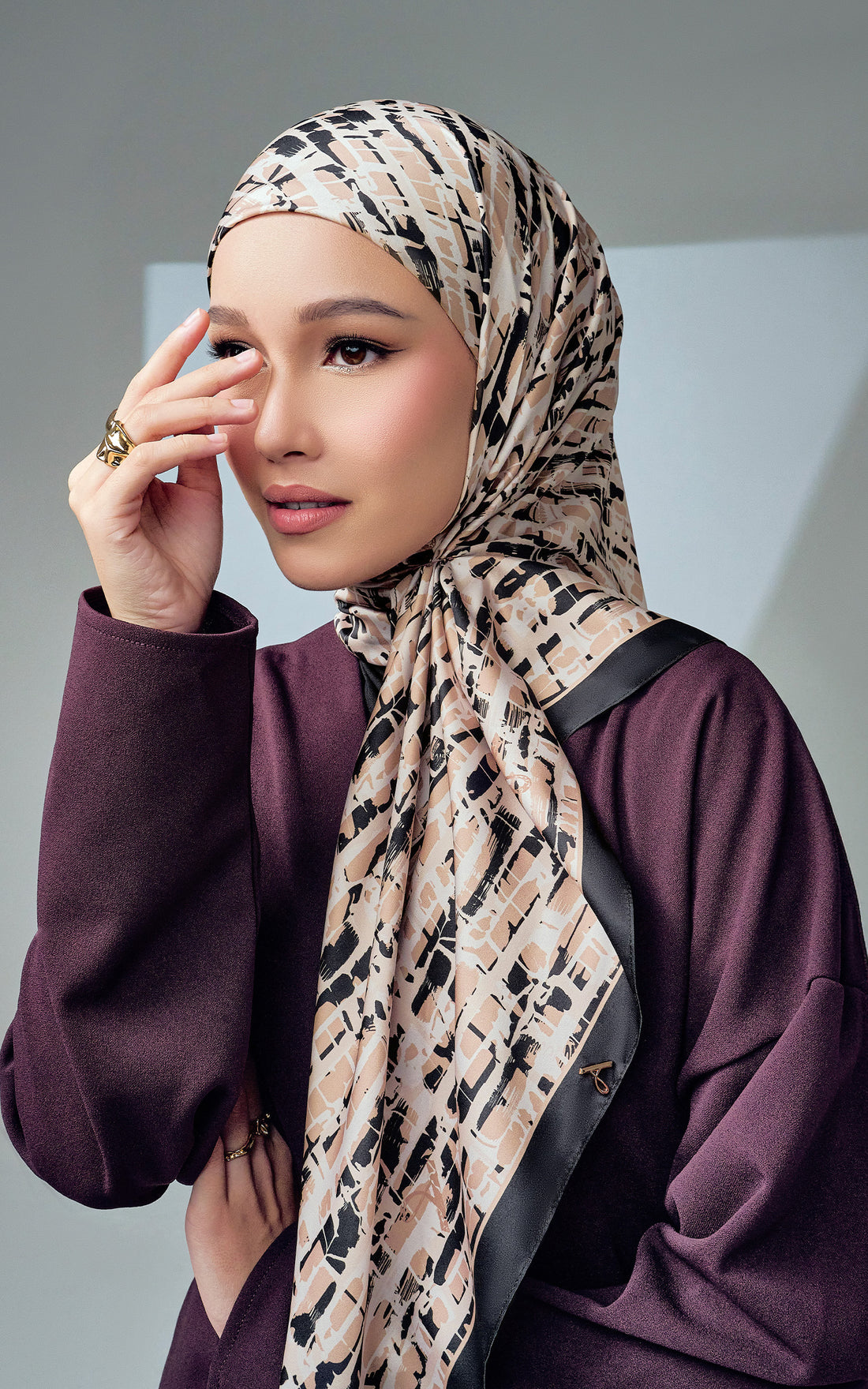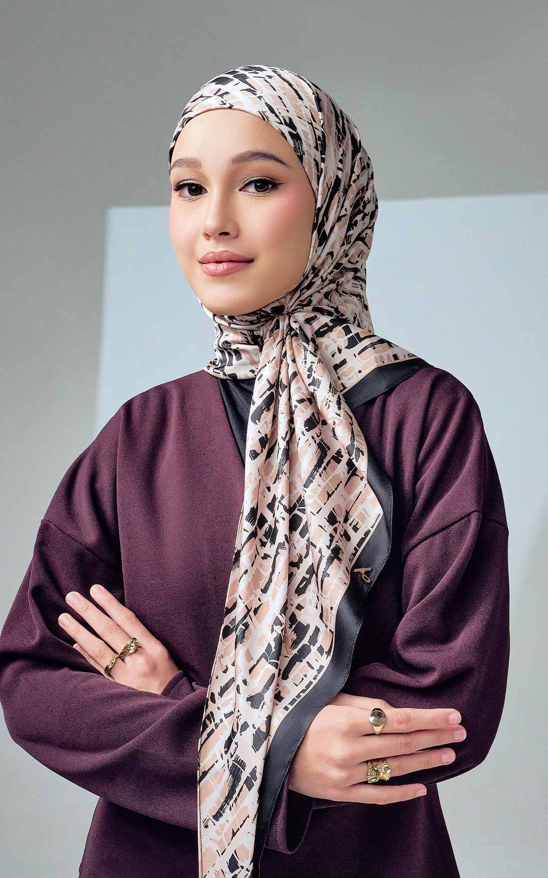 Athena Prism is a printed instant square hijab crafted from Luxe Matte Satin, designed to feel light, fluid, and effortlessly refined. Inspired by the science of light, its airy geometric abstract blends soft yellow and pale lavender like wavelengths layered through a prism. Finished with a matching attached inner and adjustable band, Athena Prism delivers all-day comfort without pressure around the ears.