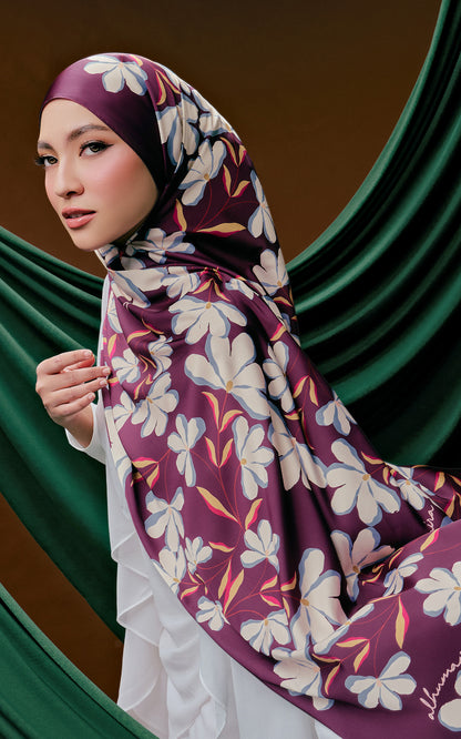 Made from Luxe Matte Satin with neat baby seam finishing, these pieces drape fluidly and hold their shape beautifully. Adorned with a blend of floral and abstract motifs, they are designed to complement a wide range of baju Raya, offering versatility, elegance, and a touch of whimsy for women who enjoy creating their own look.