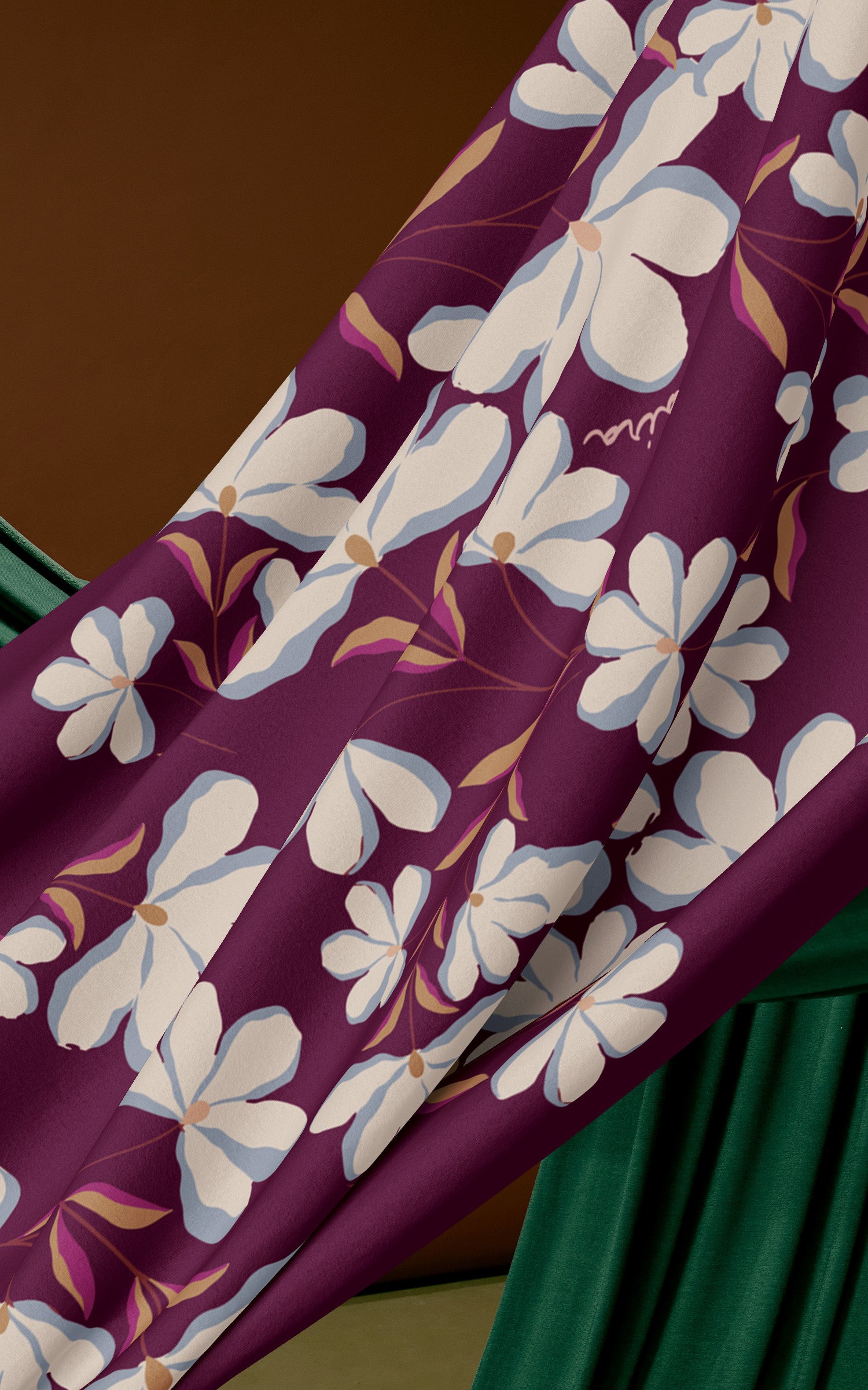 Repeated floral motifs with a balanced, rhythmic layout. Clover feels grounded and harmonious, symbolising togetherness and continuity — very Raya-coded.