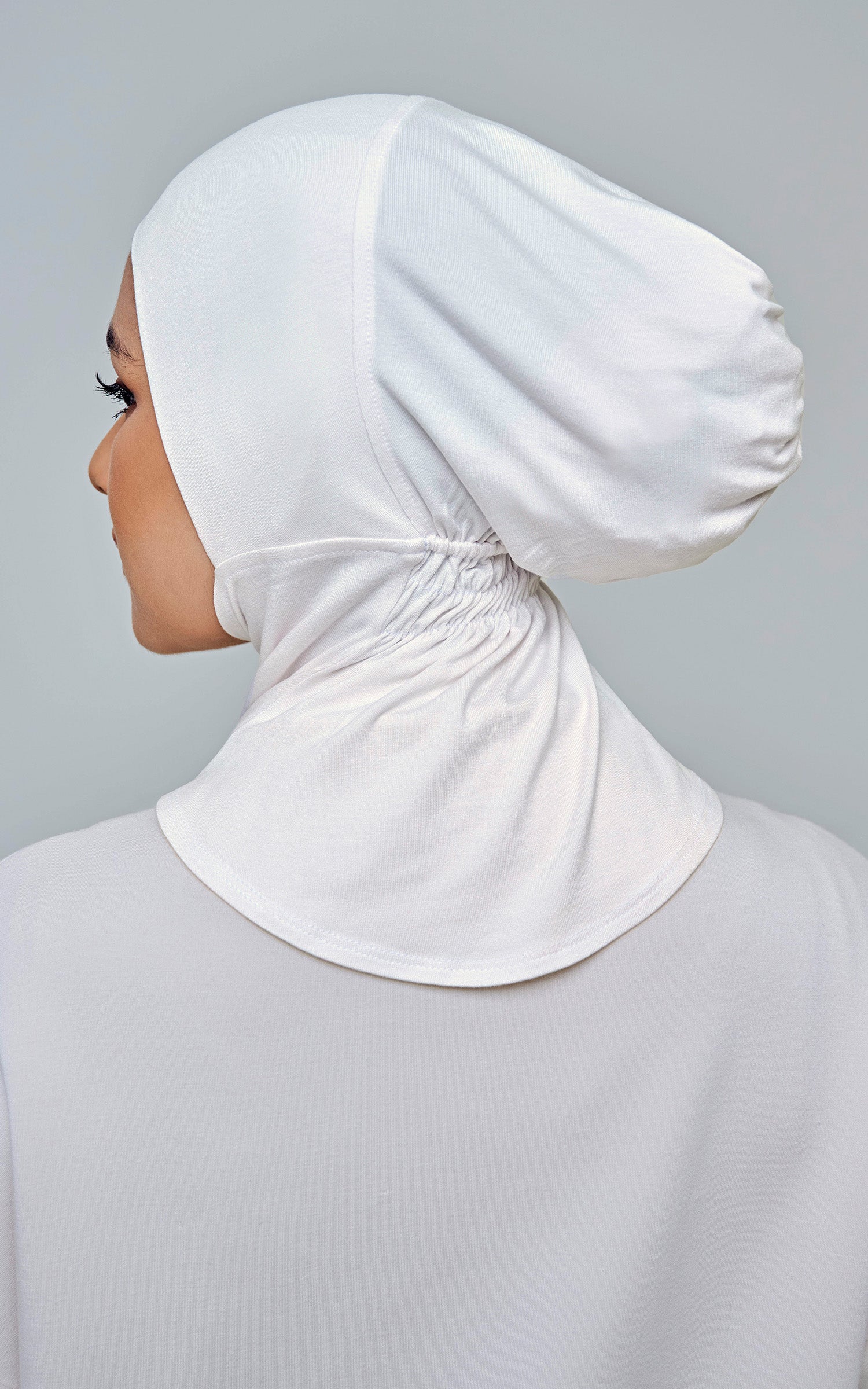 Tiffany Mini is a shorter version of our classic Tiffany underscarf, offering neck coverage up to the collarbone. Made from High Quality Cotton Viscose, it’s soft, breathable, and comfy for long hours with a seamless finish that won’t add bulk under your hijab. The elastic bands at the back helps it stay put, so you can move through your day with ease.