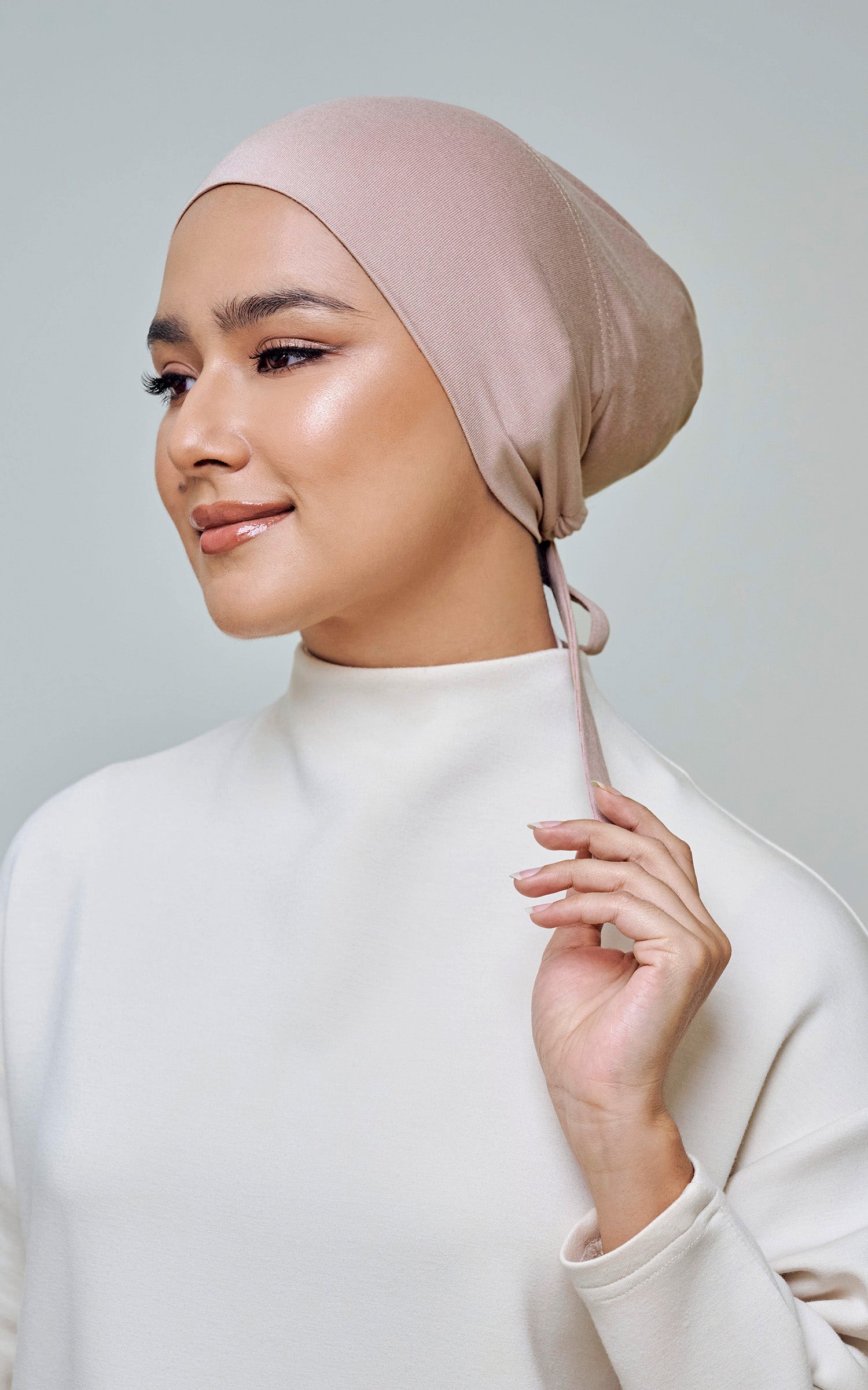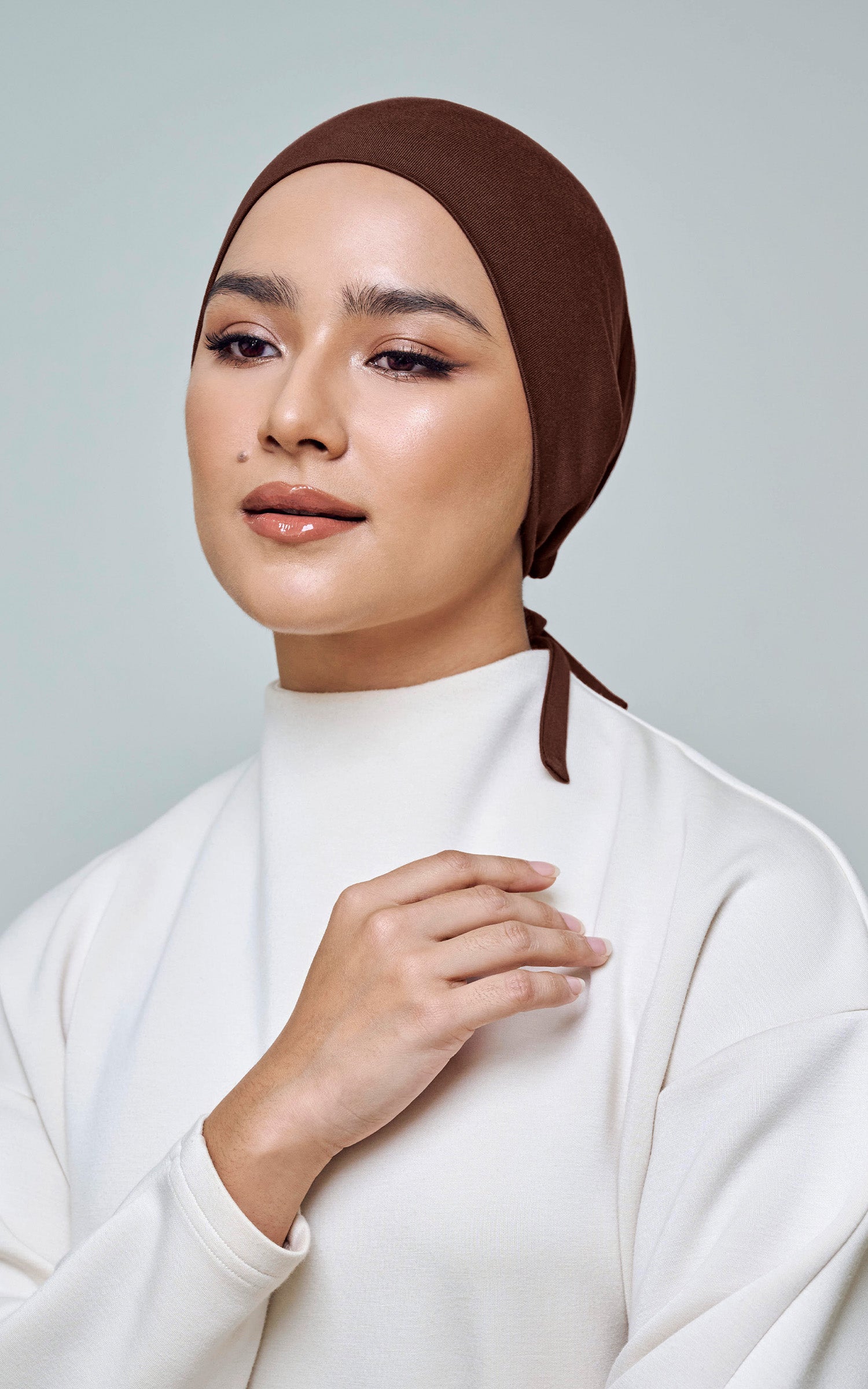 Ava is a lightweight, breathable underscarf made from High Quality Cotton Viscose, designed with a tie-back feature and stretchable fabric for a personalized fit. It comes with a flexible elastic band at the back for added comfort, and its fitted design creates a sleek, non-bulky finish under your hijab. Perfect for those who love a clean and polished look that feels light and comfortable all day.